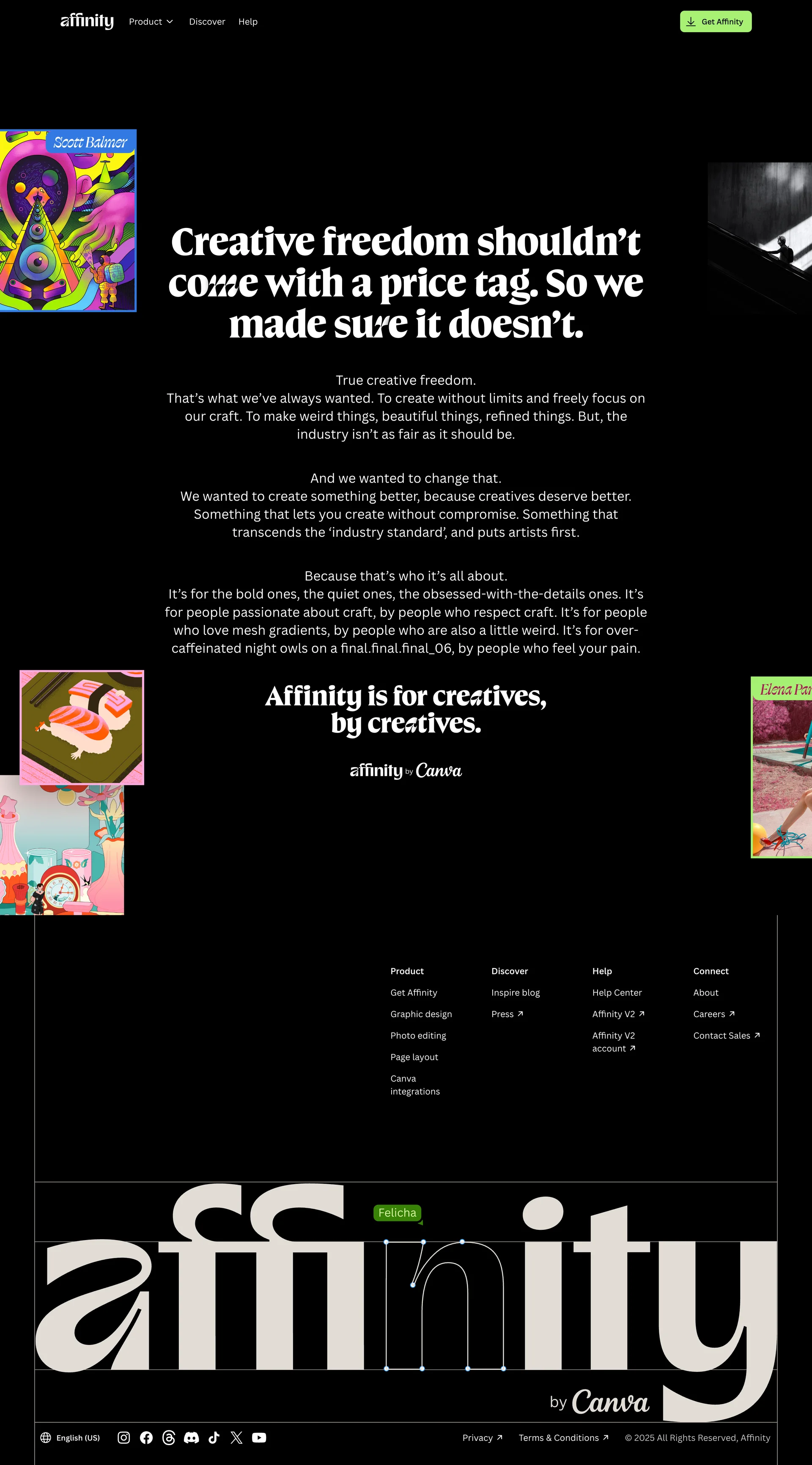 Affinity Design and photo editing tools in one app affinity.serif.com ↗ Design Веб-сайт 5 скриншотов landingeditorsettingsmodalnavbarsidebar DCBDBA 171412 3365DA