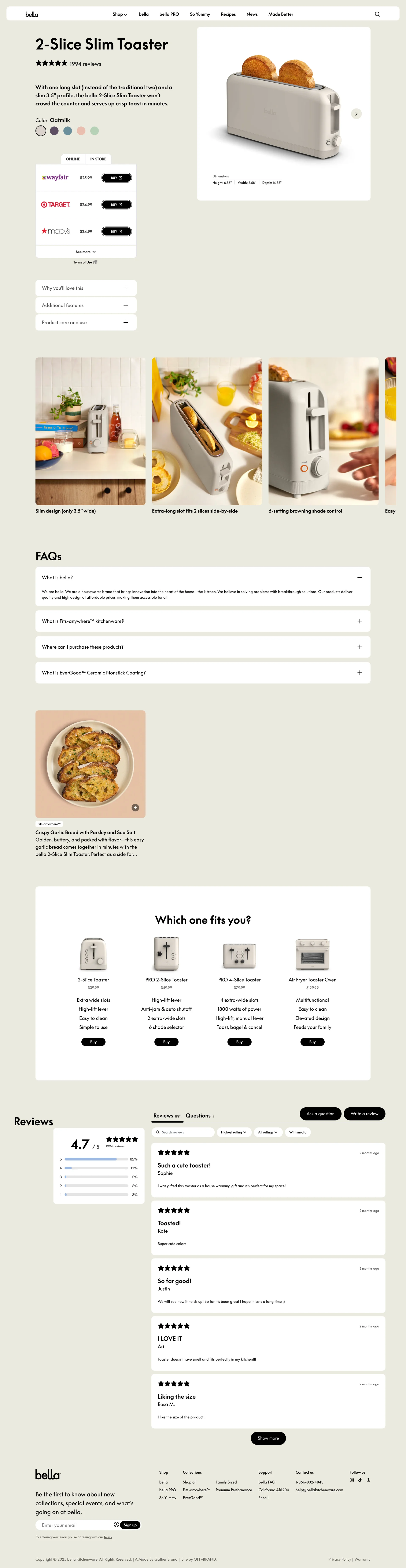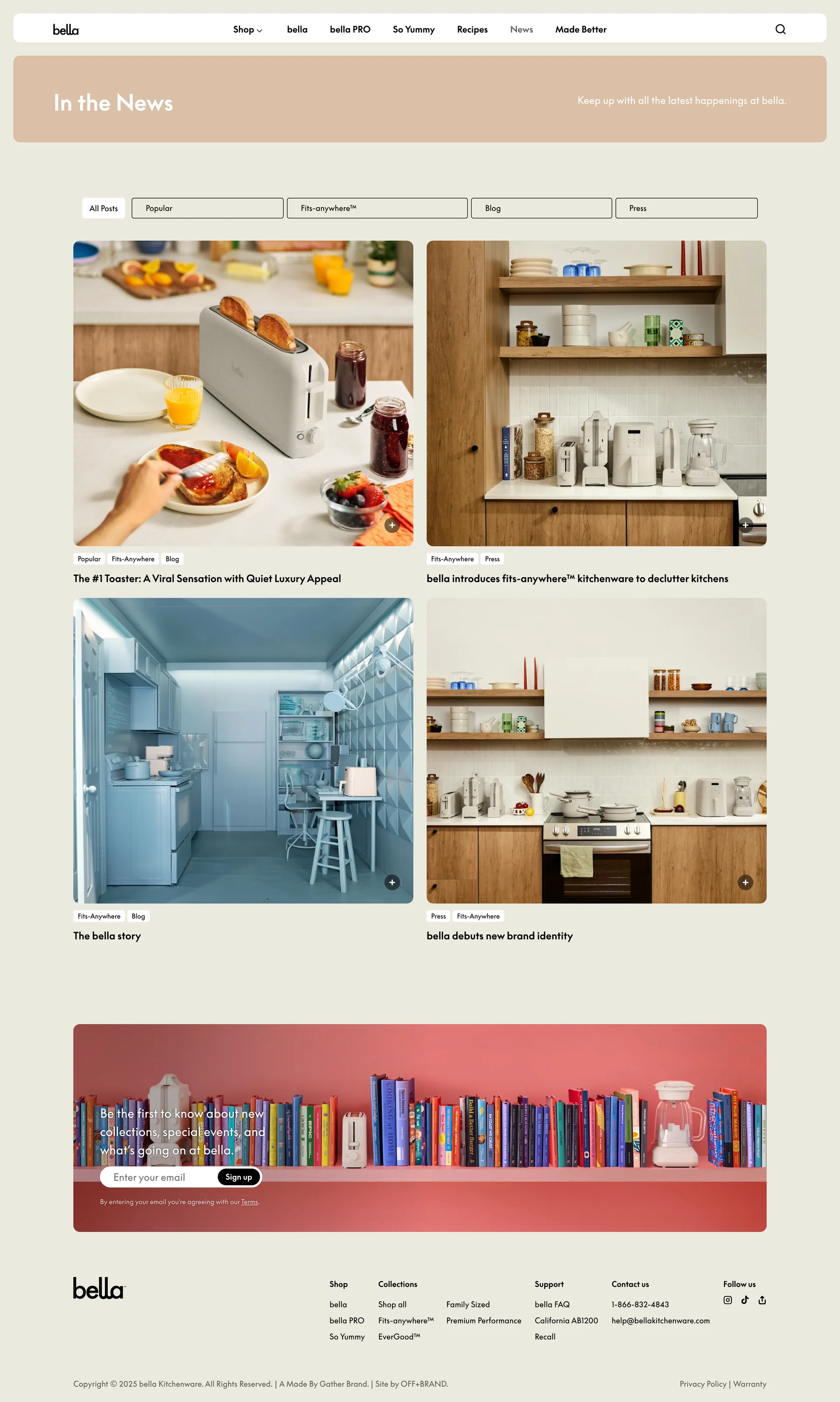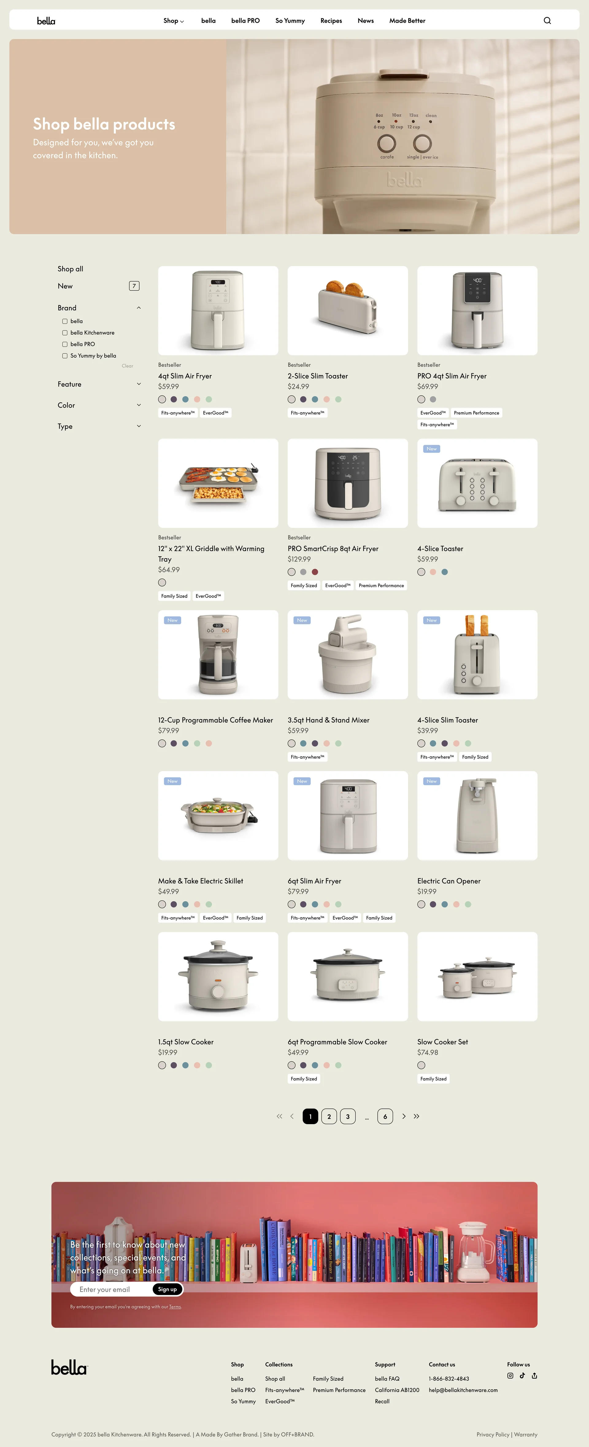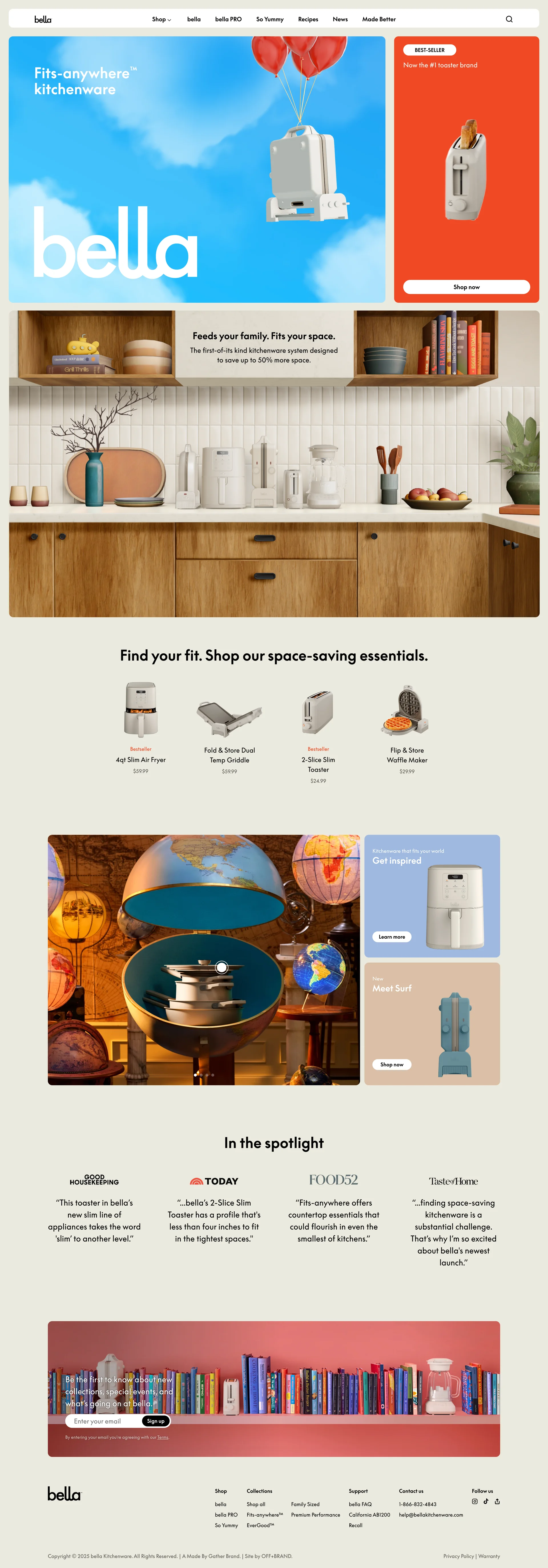 bella Fits-anywhere kitchenware bellagadgets.com ↗ E-commerce Веб-сайт 5 скриншотов landingcard-gridsearchcheckoutnavbarprofile E5E4D5 2C3E40 8F5133