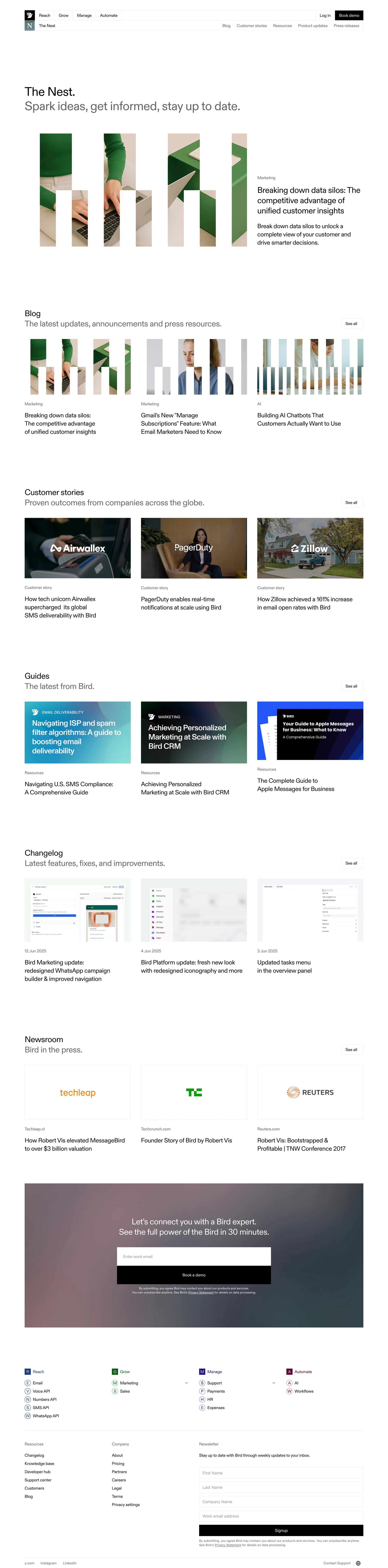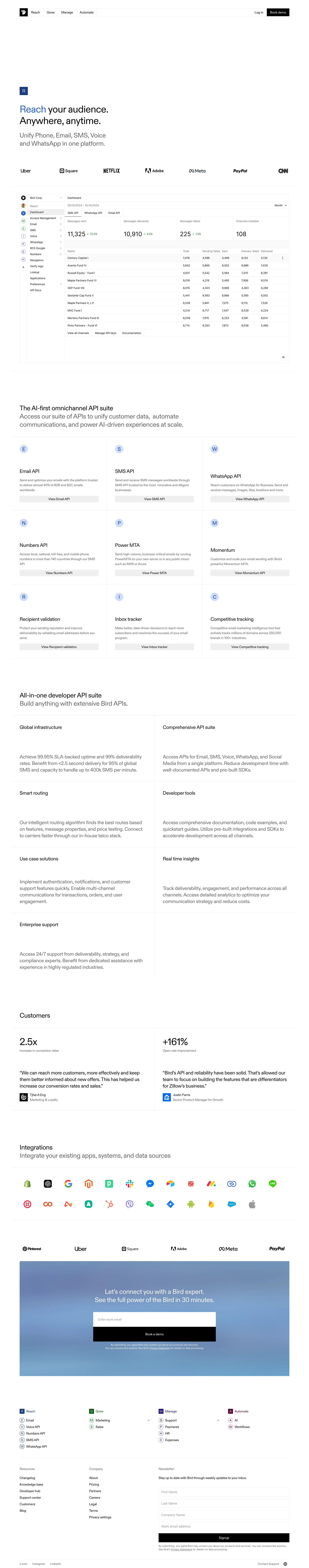 Bird Unified CRM for marketing, service & payments bird.io ↗ CRM Веб-сайт 9 скриншотов dashboardformsettingsanalyticssidebarnavbar D7D9E0 445158 816368