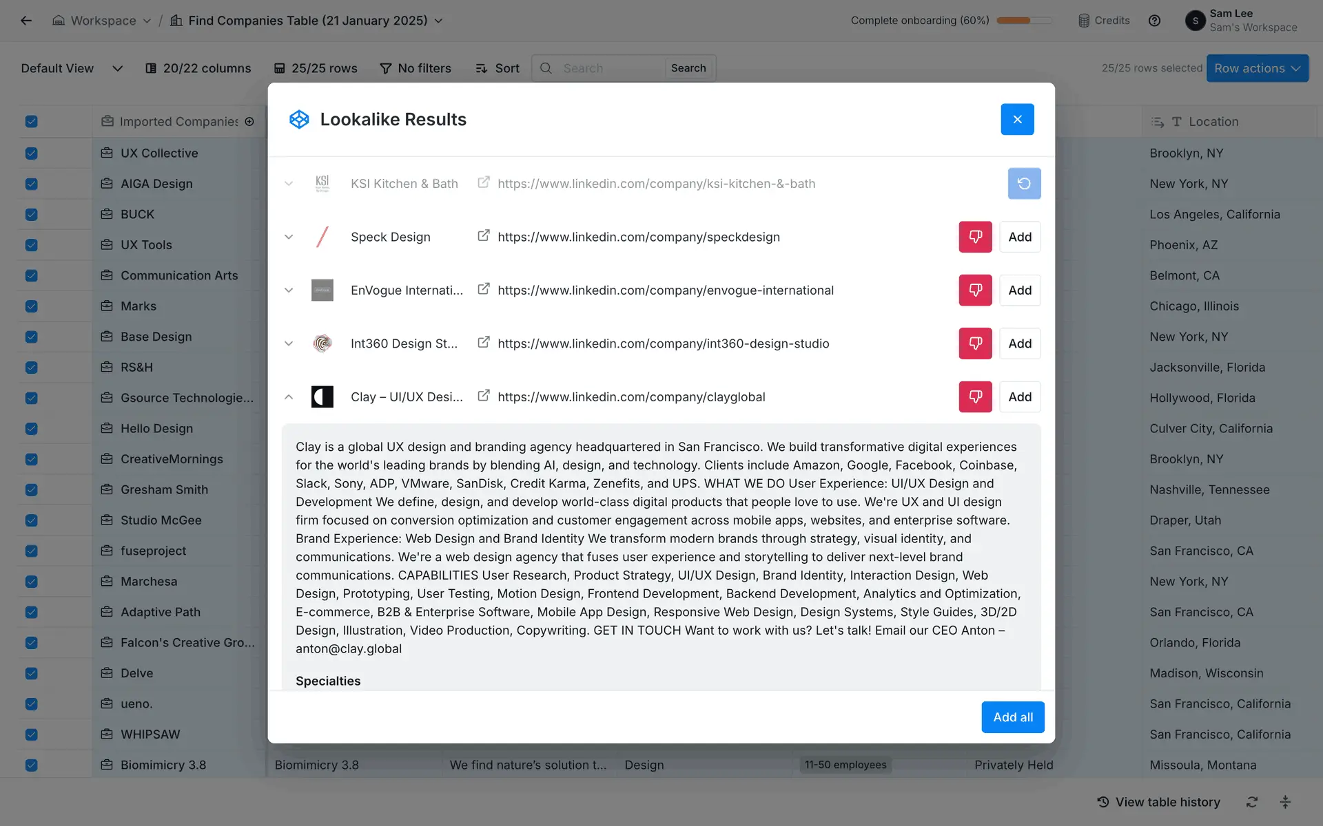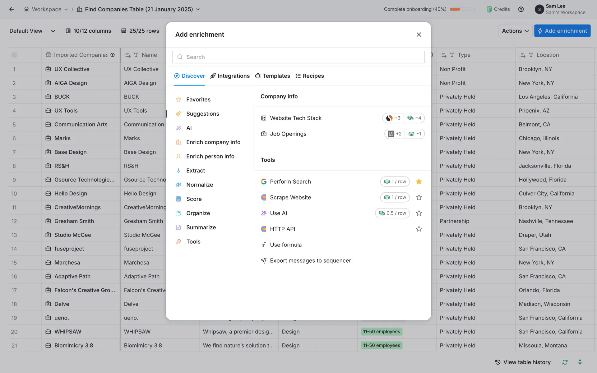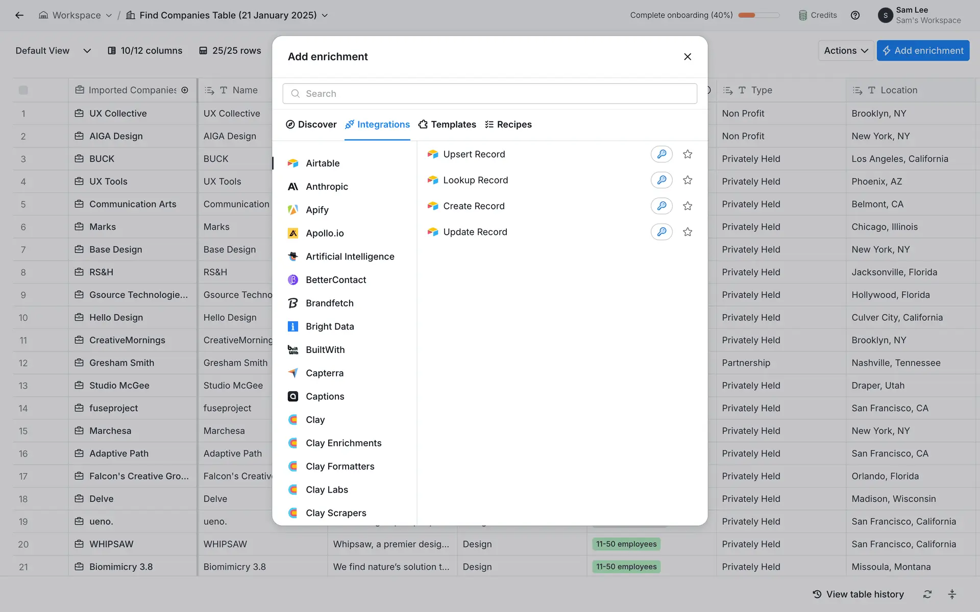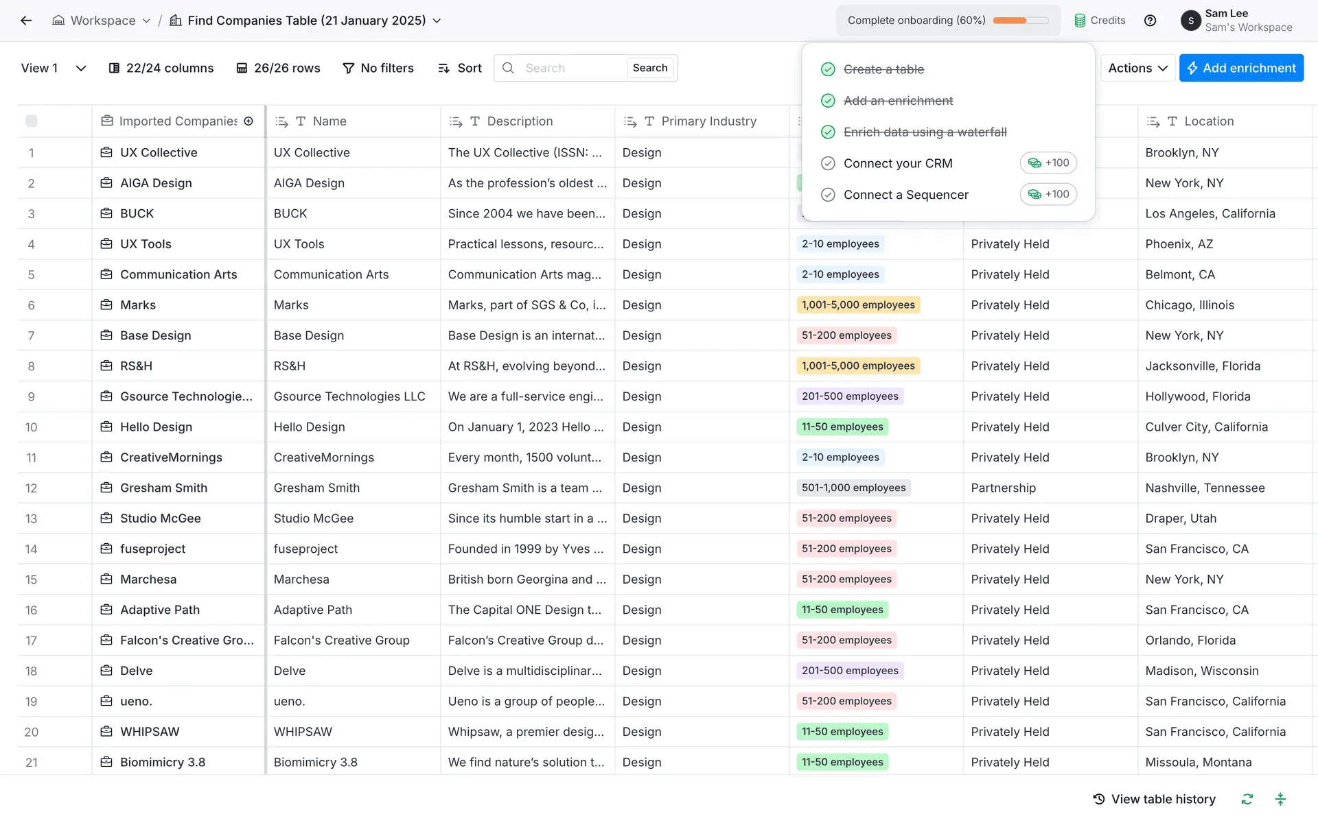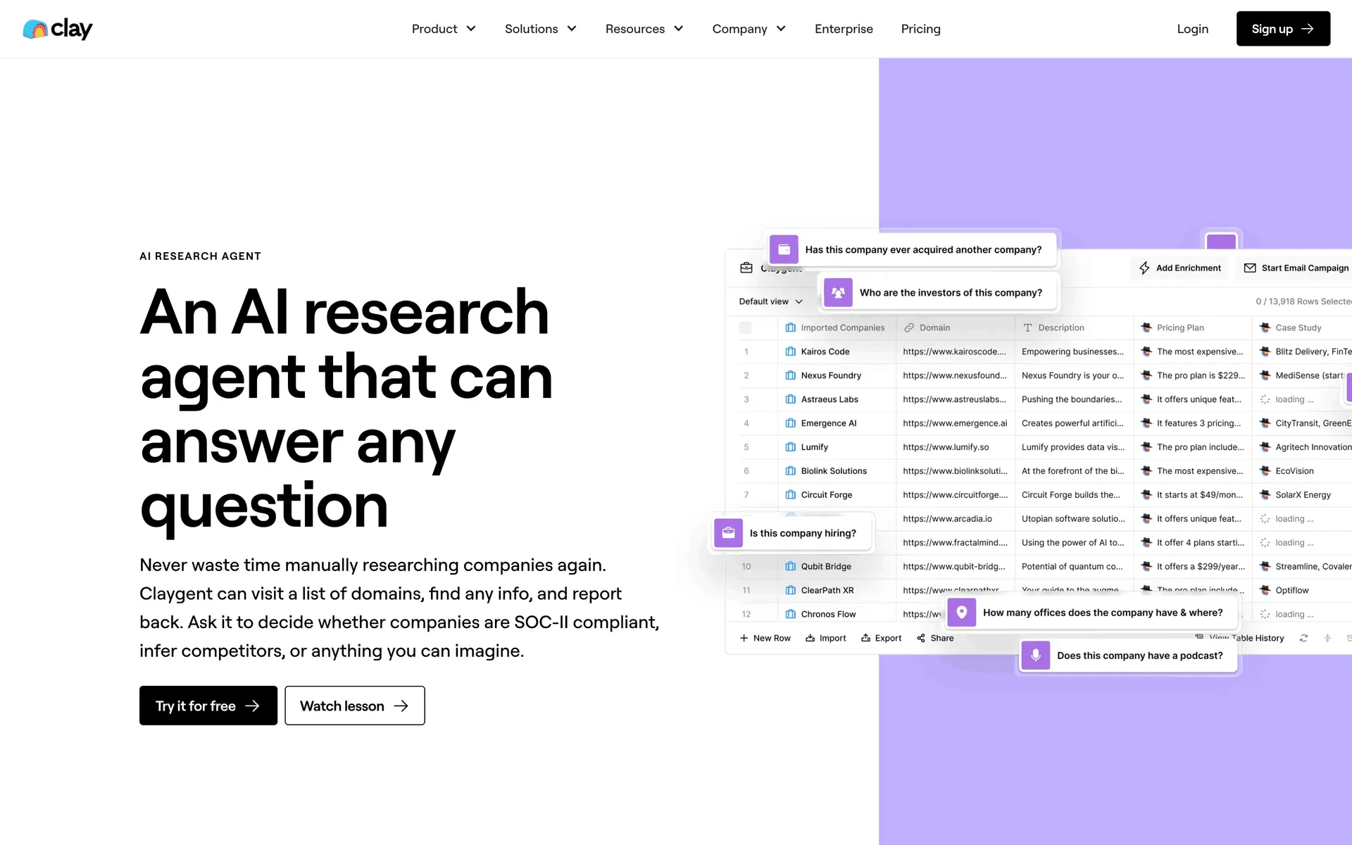Clay — платформа для обогащения данных о лидах и автоматизации персонализированного аутрича. Объединяет 100+ источников данных в одном инструменте для создания высококачественных проспект-листов.