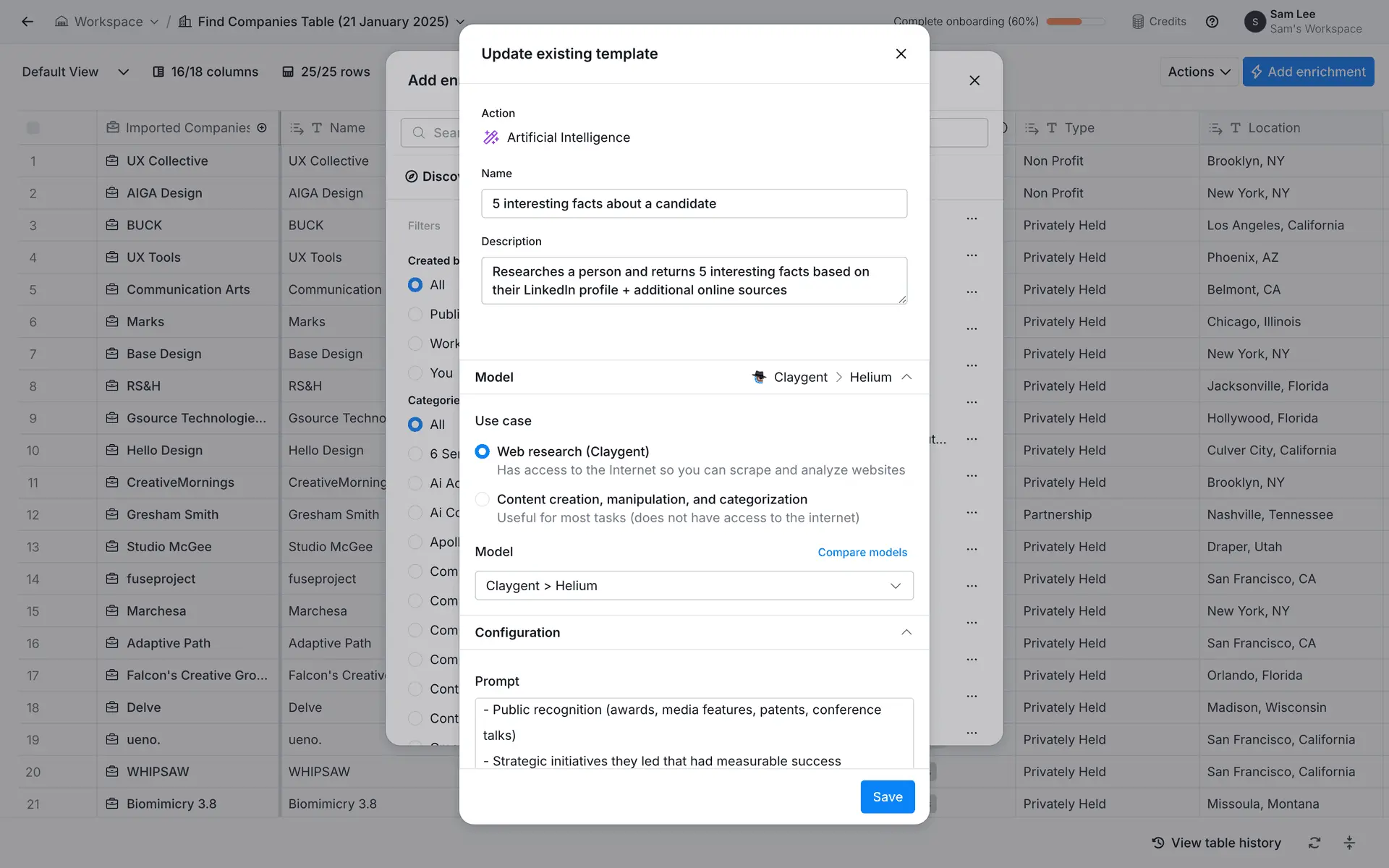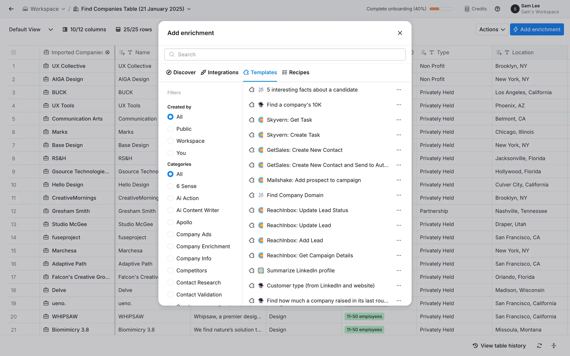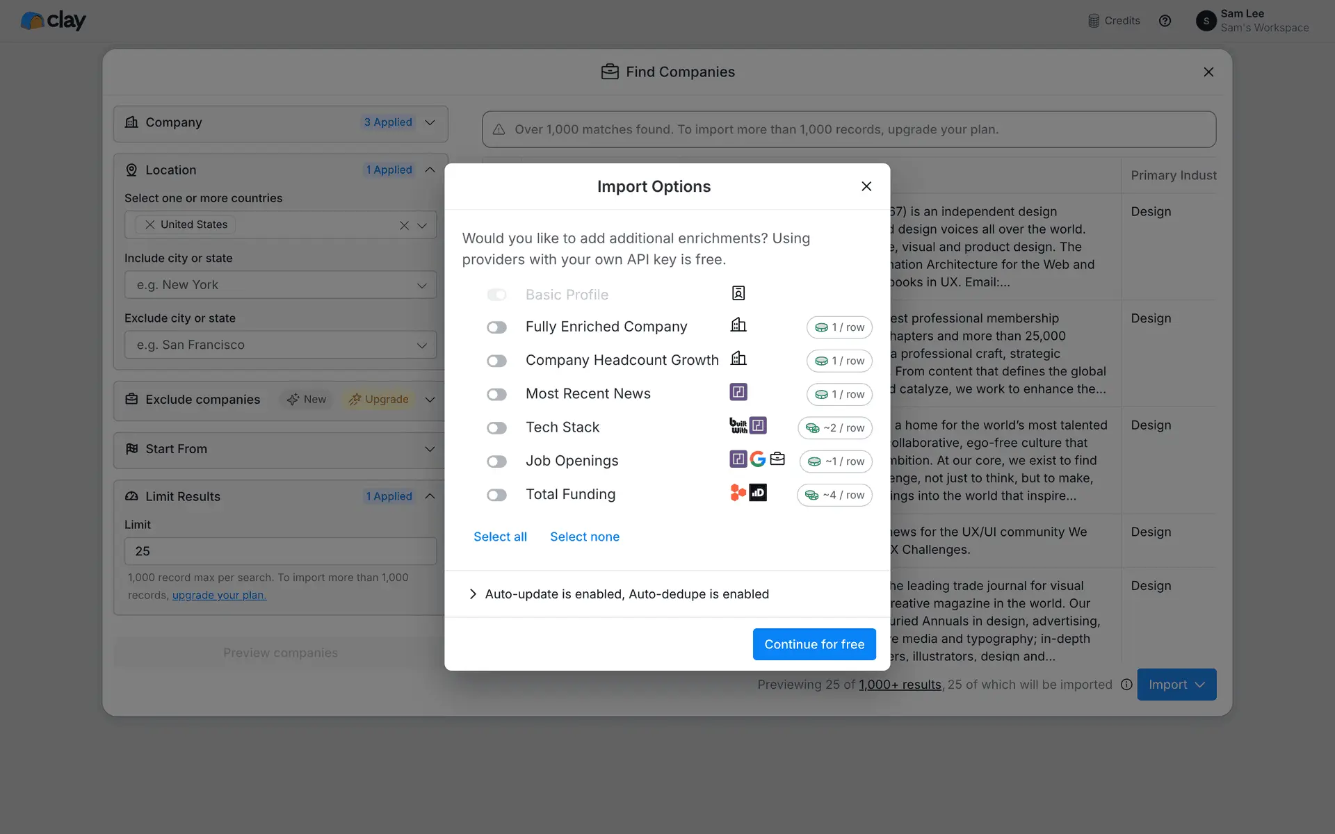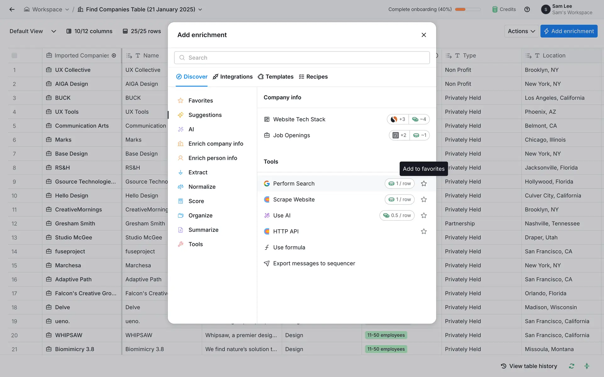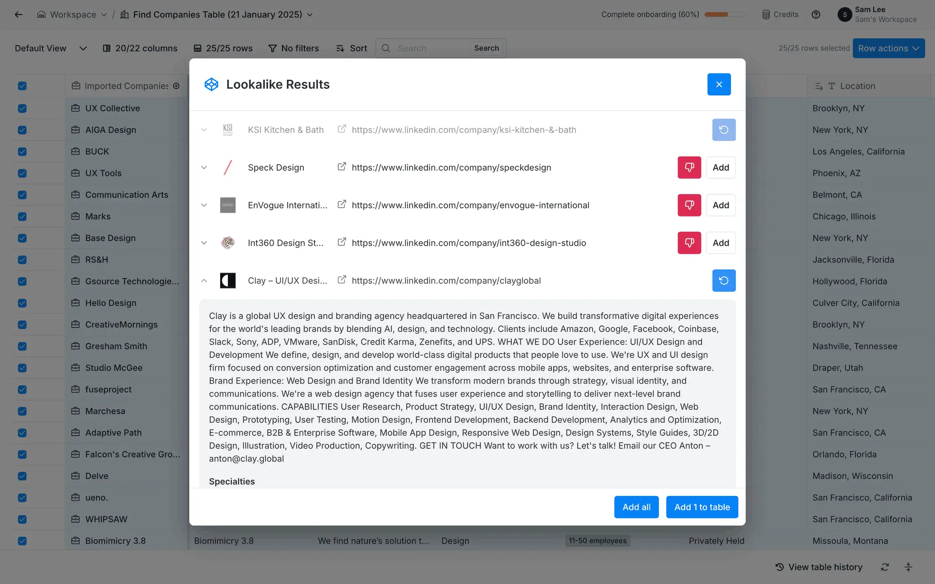 Clay — платформа для обогащения данных о лидах и автоматизации персонализированного аутрича. Объединяет 100+ источников данных в одном инструменте для создания высококачественных проспект-листов.