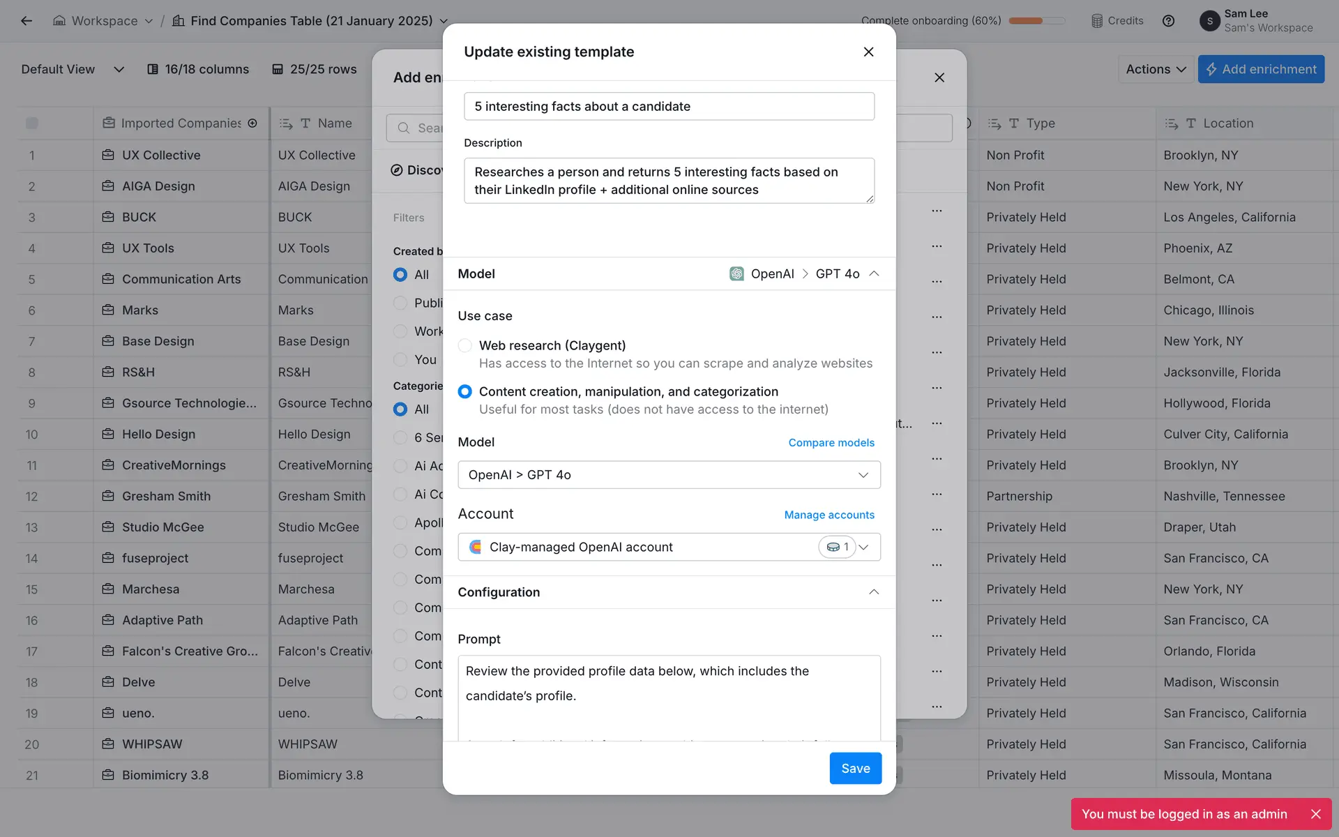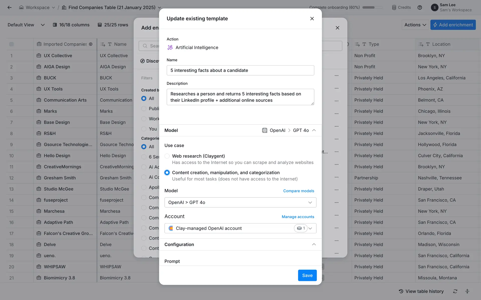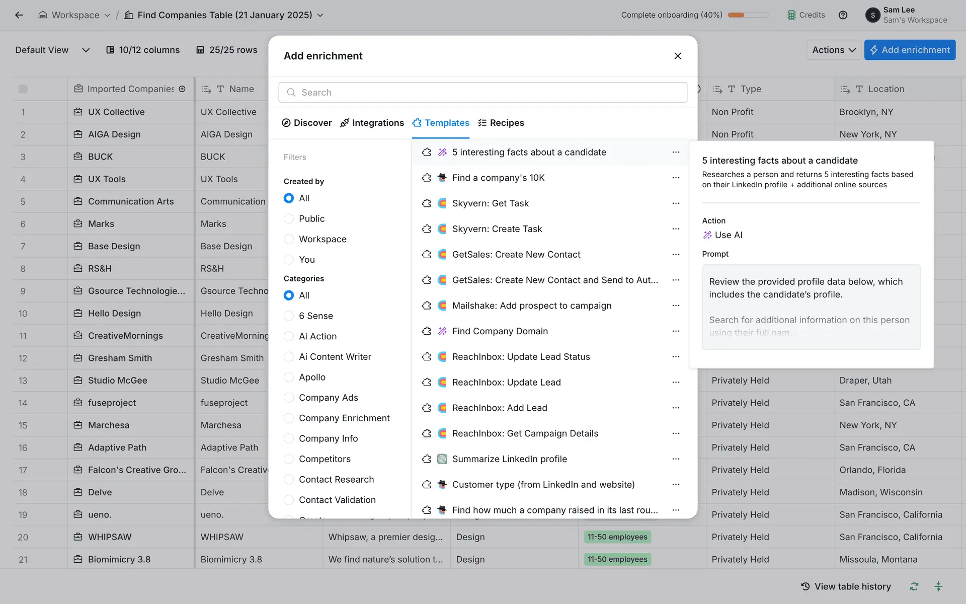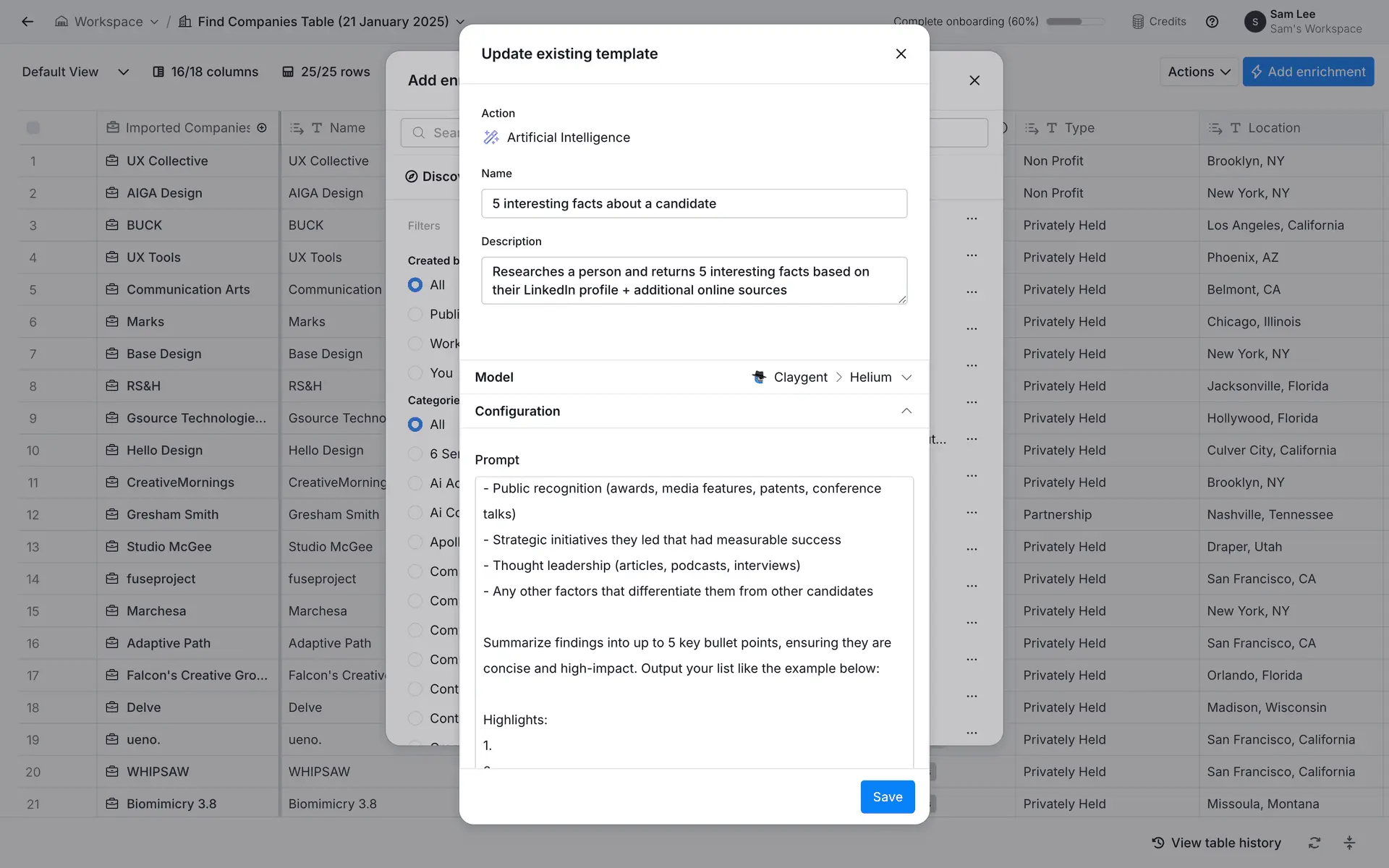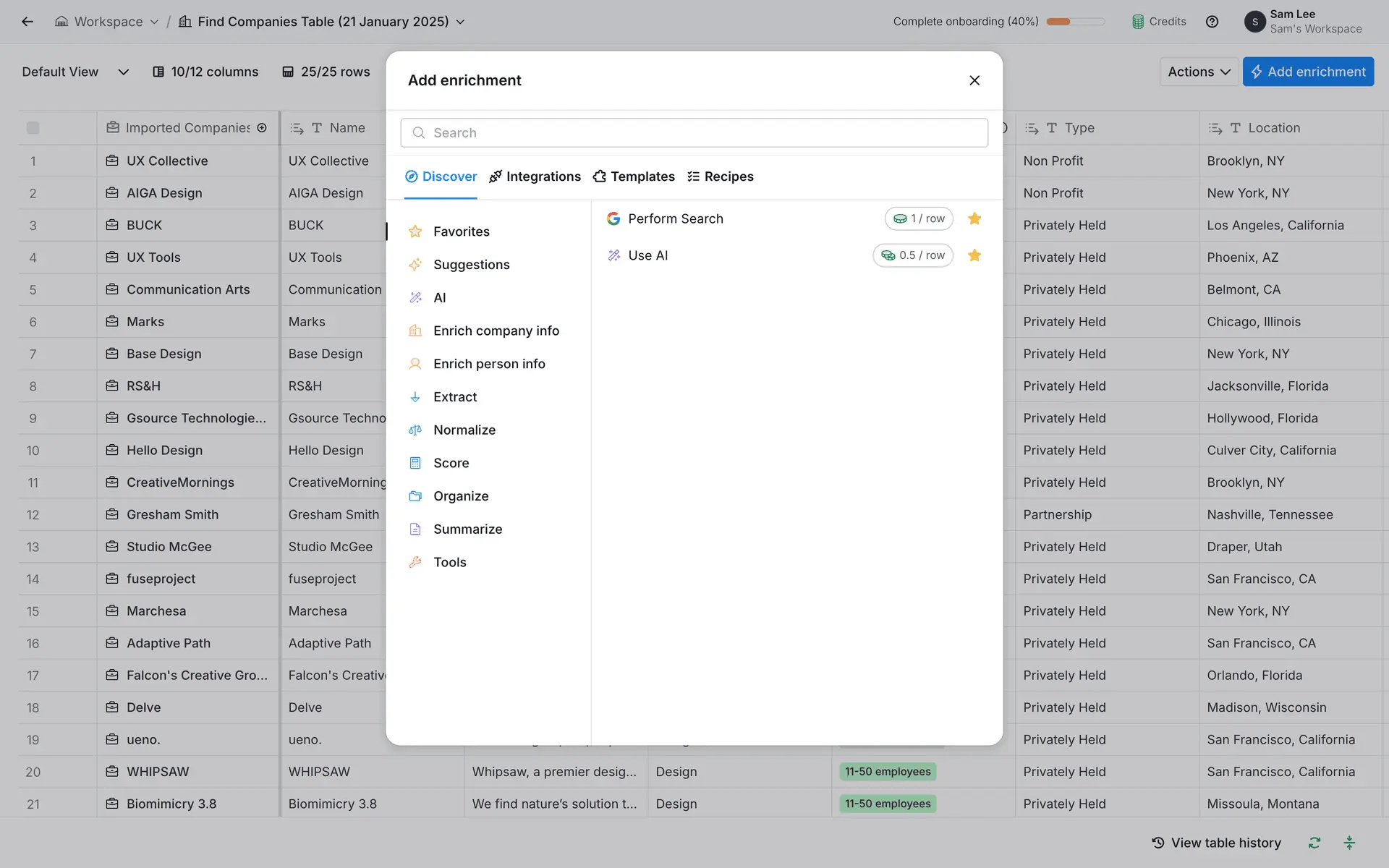 Clay — платформа для обогащения данных о лидах и автоматизации персонализированного аутрича. Объединяет 100+ источников данных в одном инструменте для создания высококачественных проспект-листов.