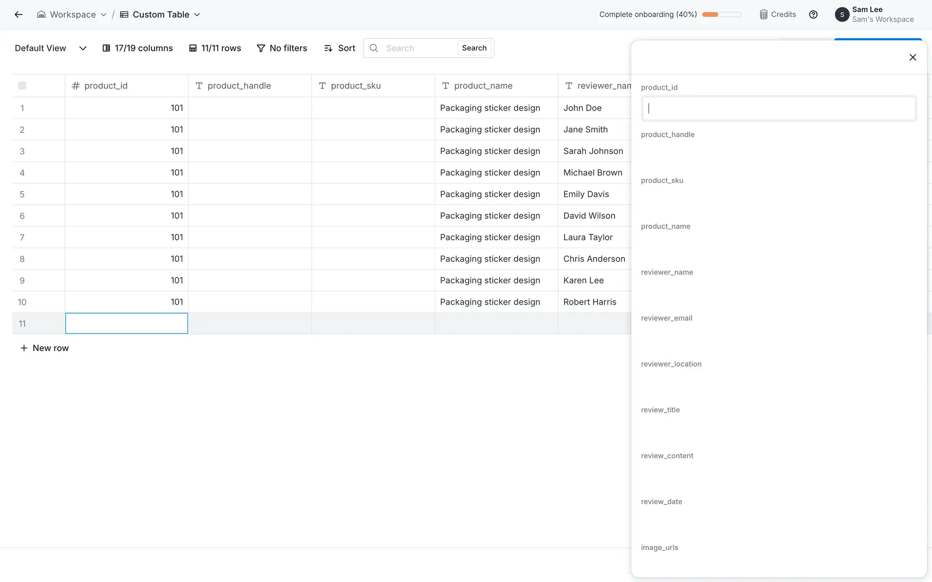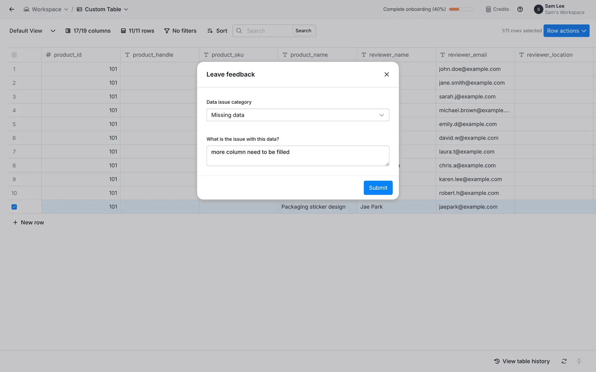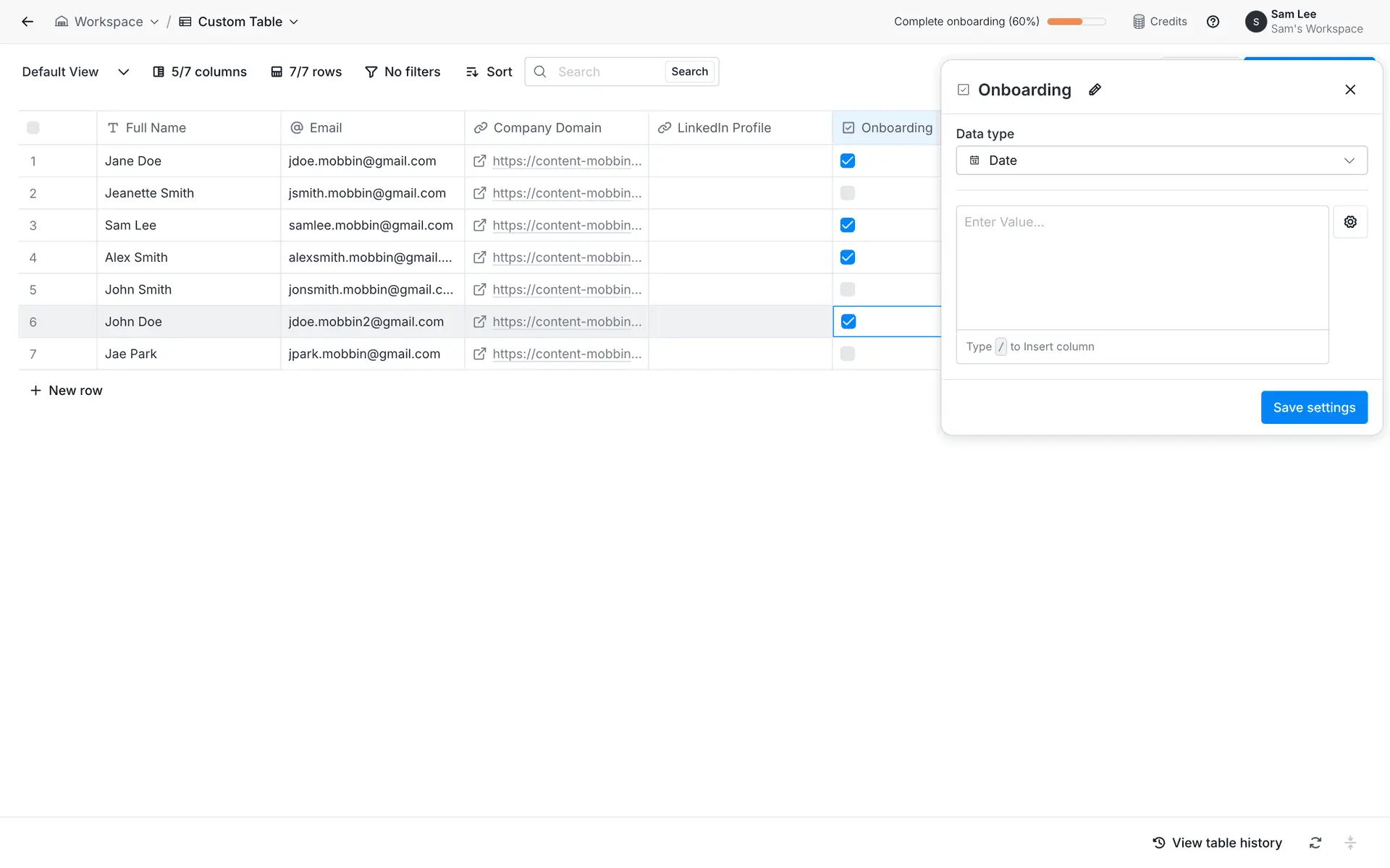 dashboard sidebar table settings form modal