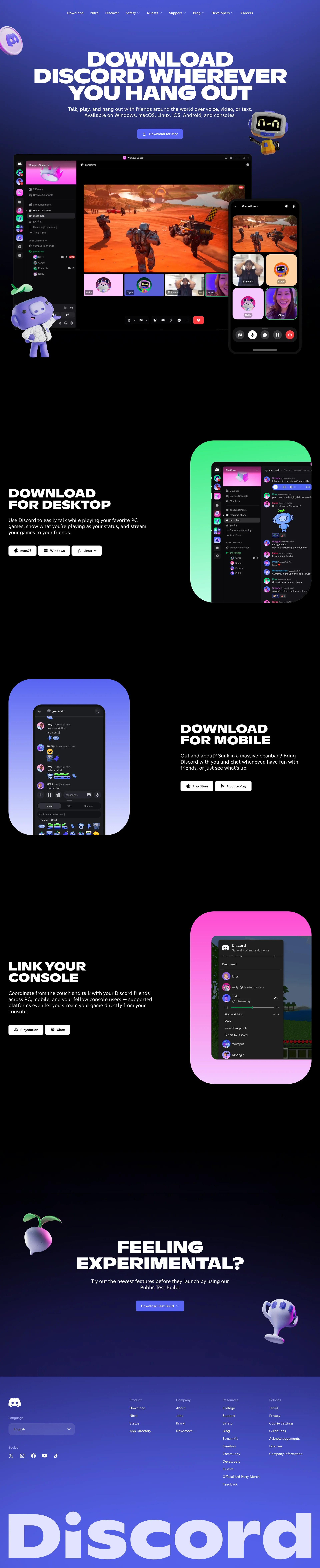 Discord Talk, play, hang out discord.com ↗ Communication Веб-сайт 10 скриншотов dashboardchatsidebarnotificationssettingsmodal 120D19 C88DC2 444CBB