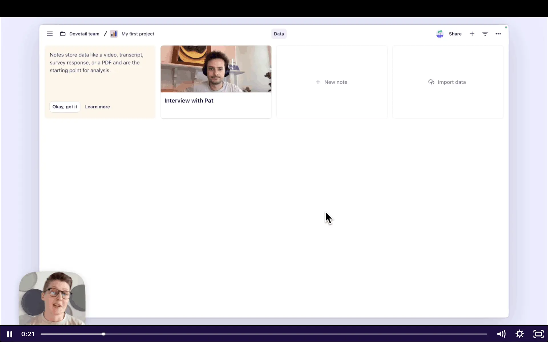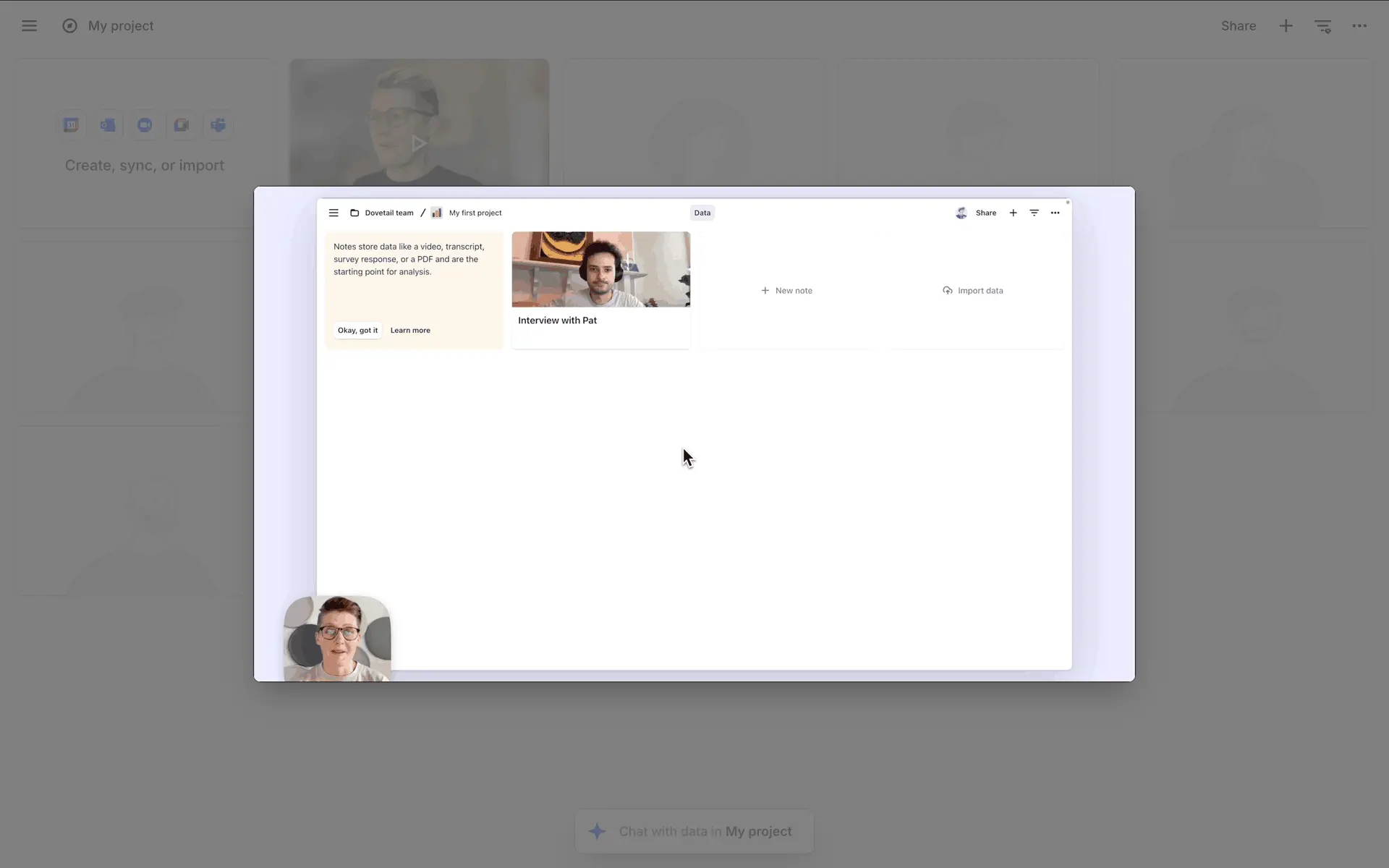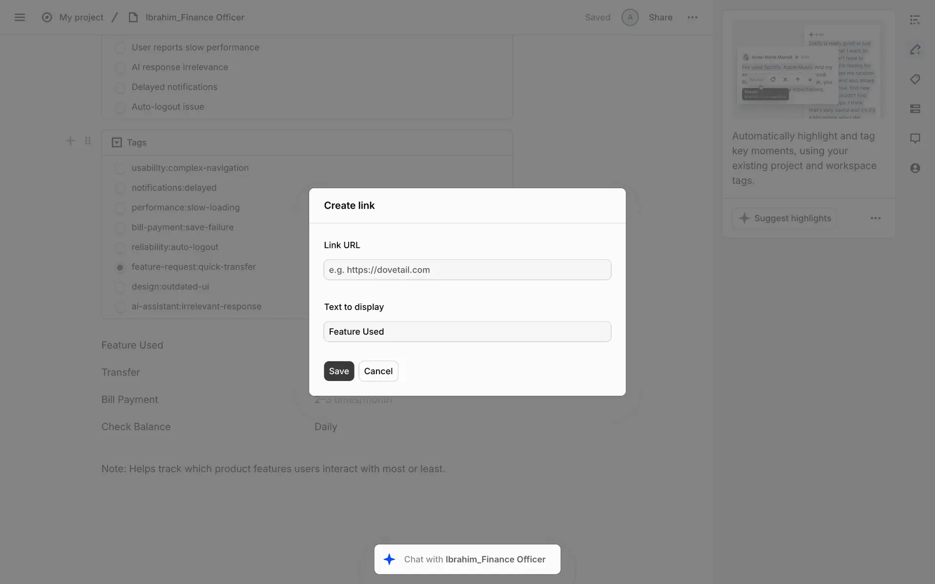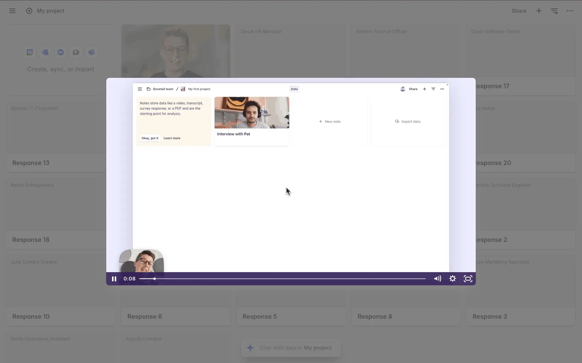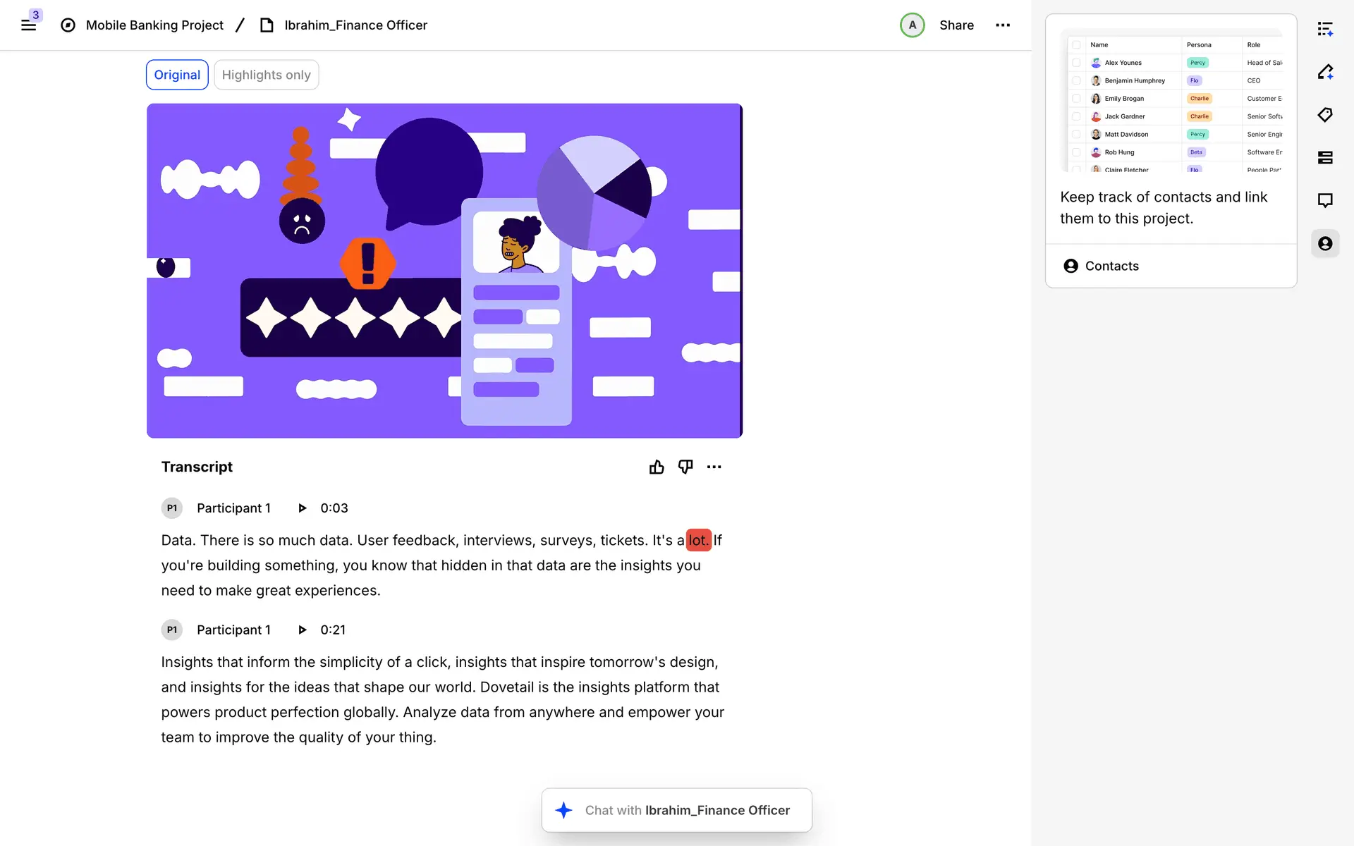 Dovetail — платформа для управления исследованиями пользователей и качественными данными. Помогает командам собирать, анализировать и делиться инсайтами из интервью, опросов и заметок.