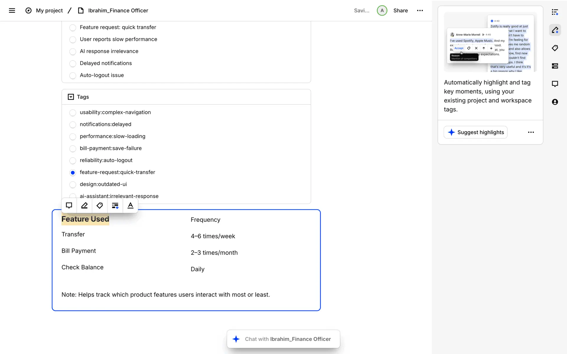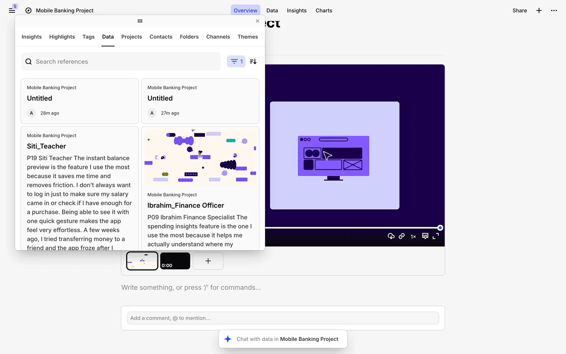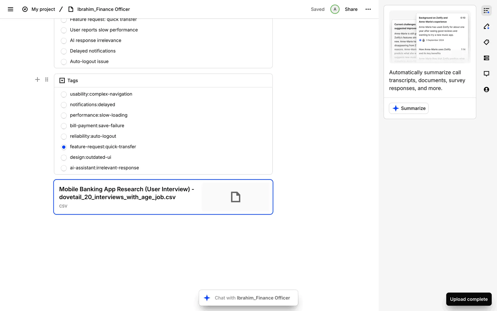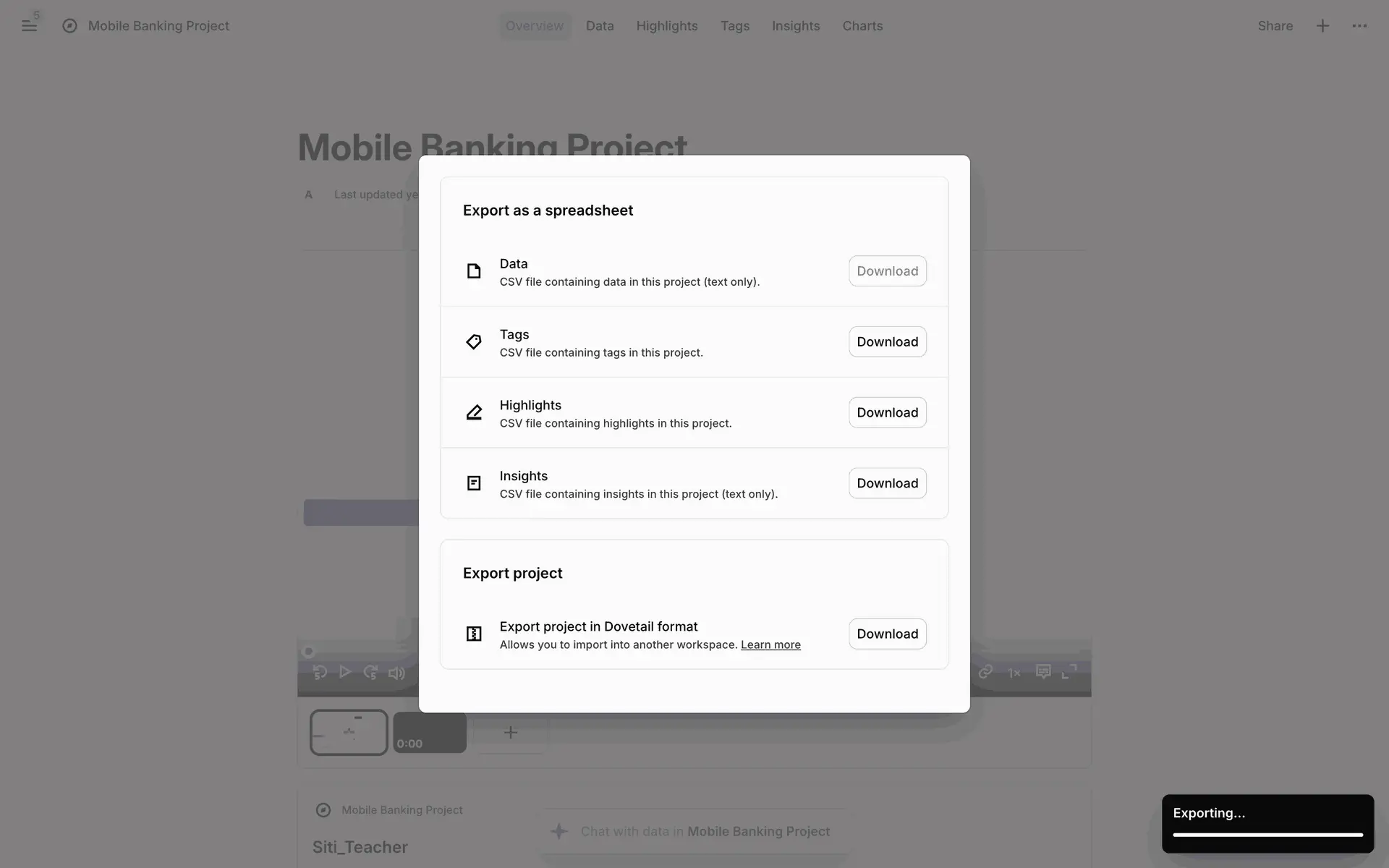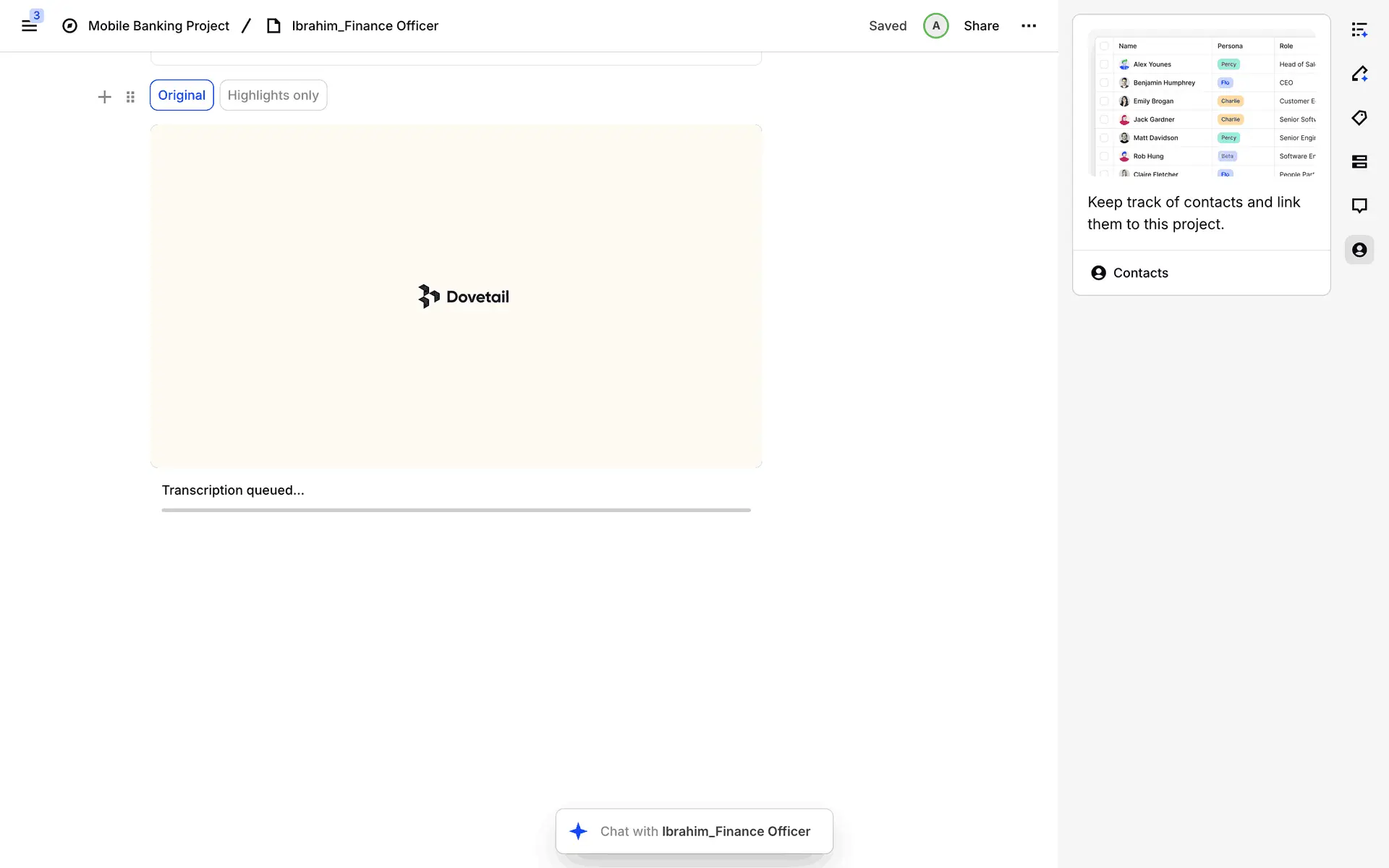 Dovetail — платформа для управления исследованиями пользователей и качественными данными. Помогает командам собирать, анализировать и делиться инсайтами из интервью, опросов и заметок.