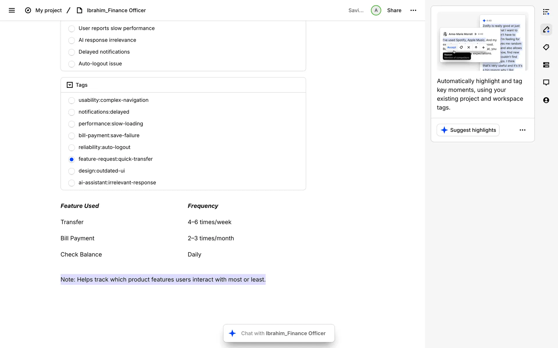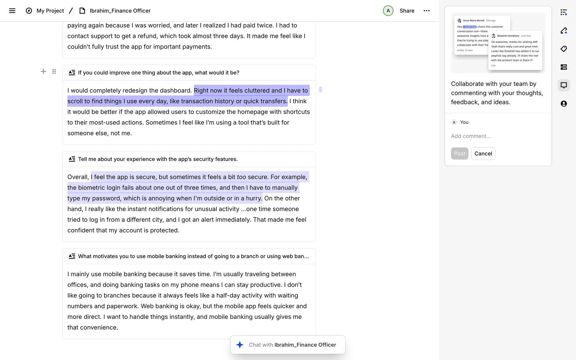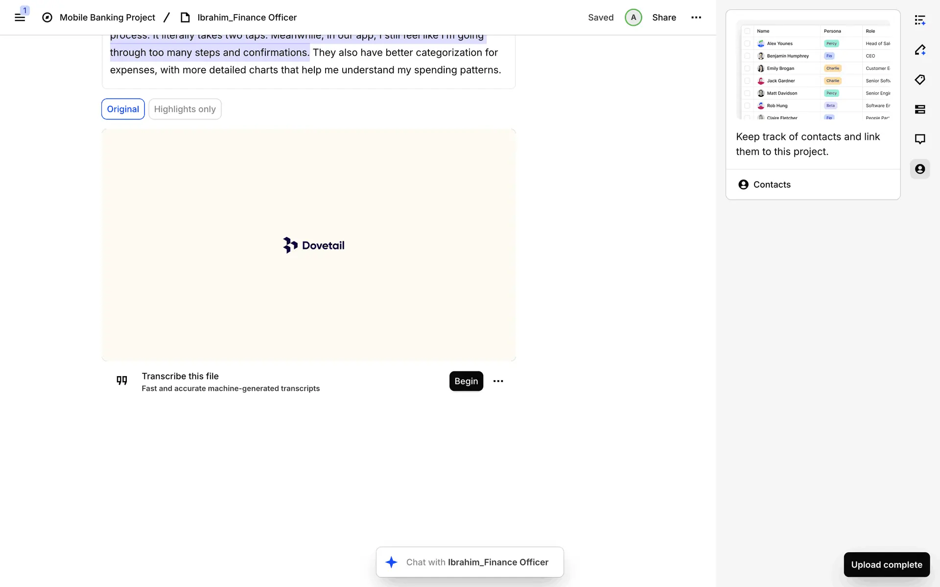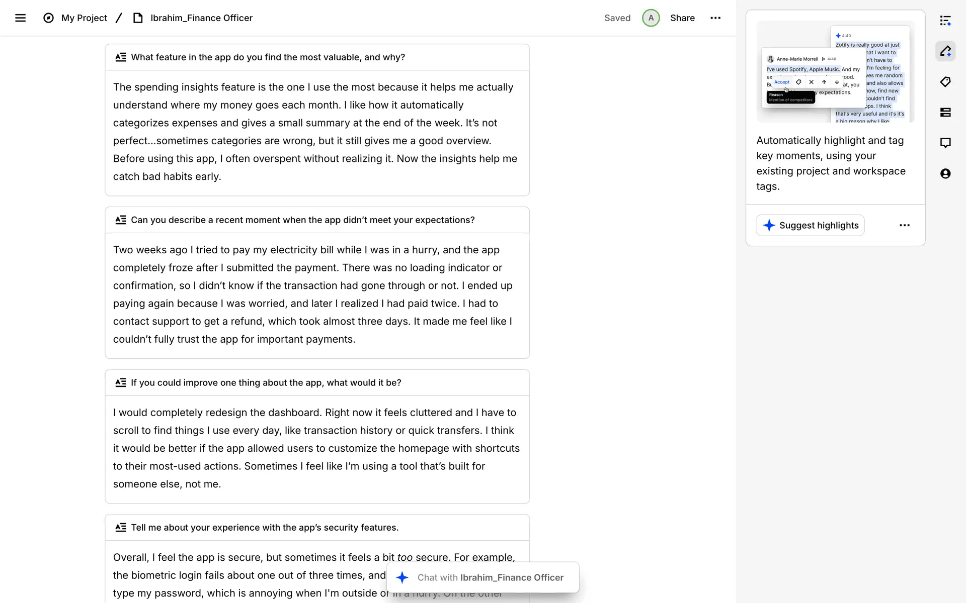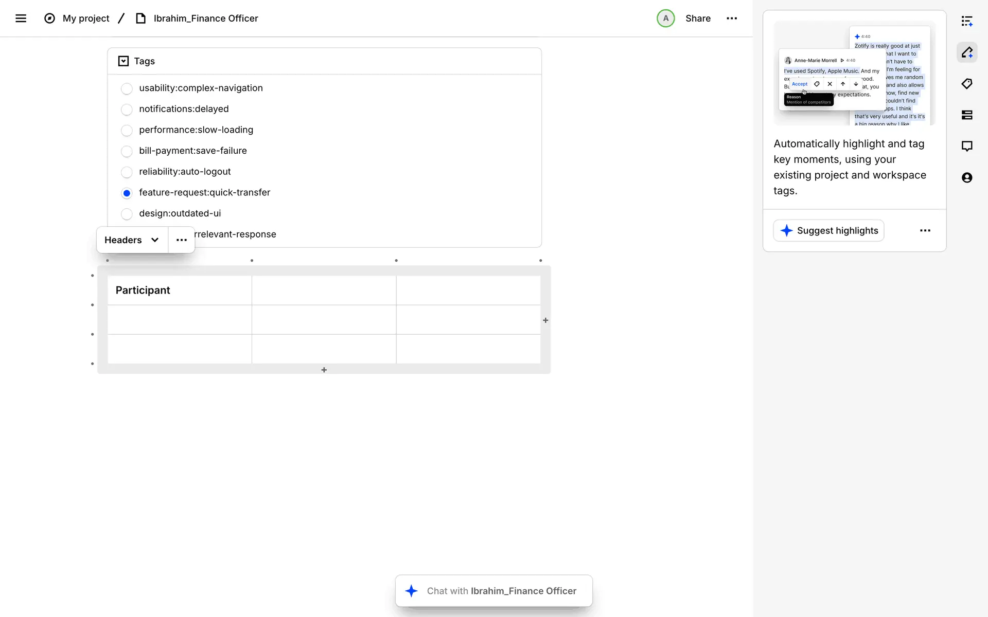 Dovetail — платформа для управления исследованиями пользователей и качественными данными. Помогает командам собирать, анализировать и делиться инсайтами из интервью, опросов и заметок.