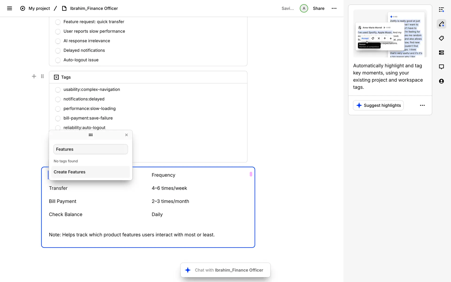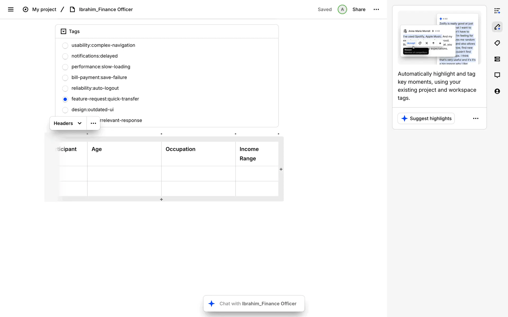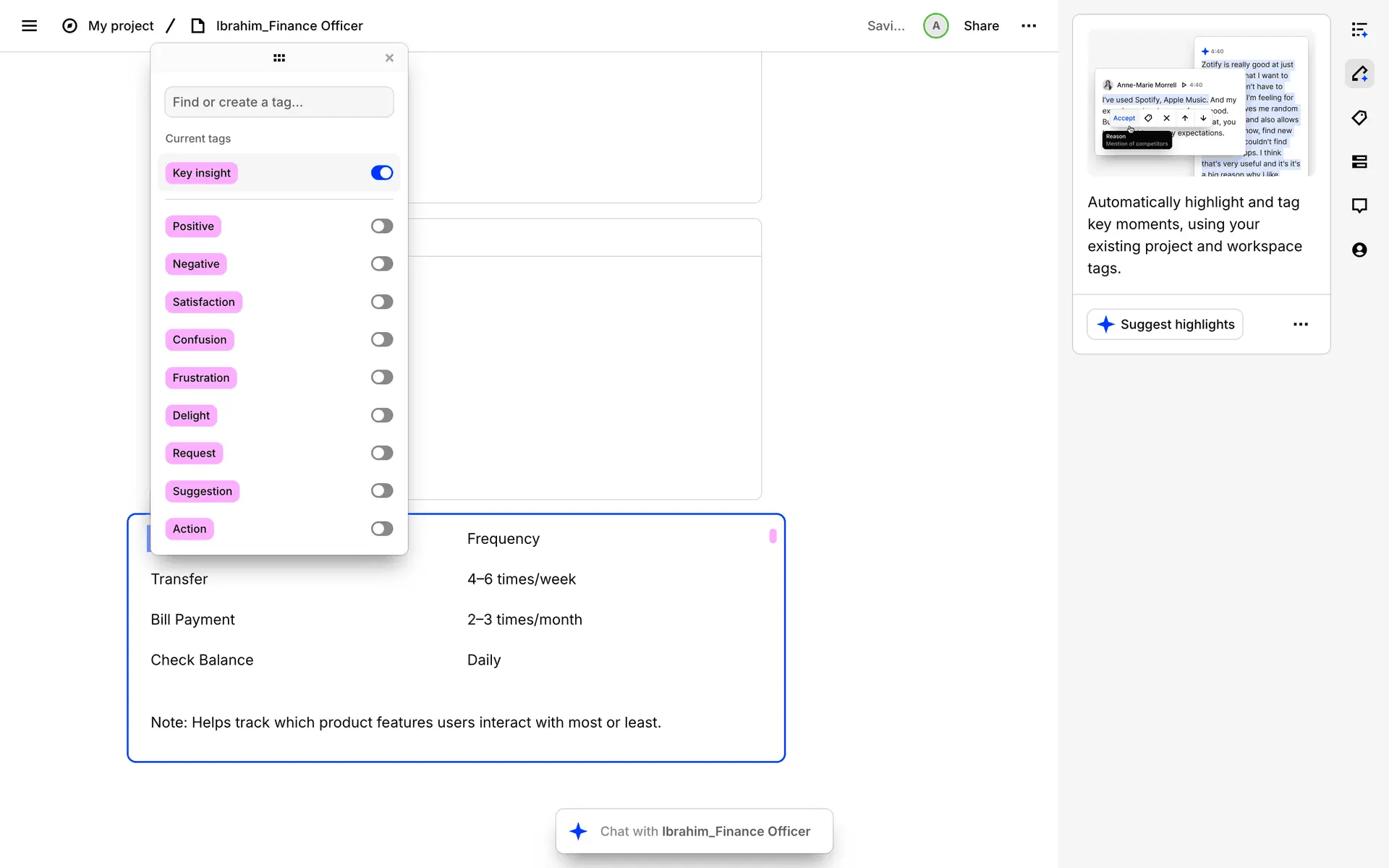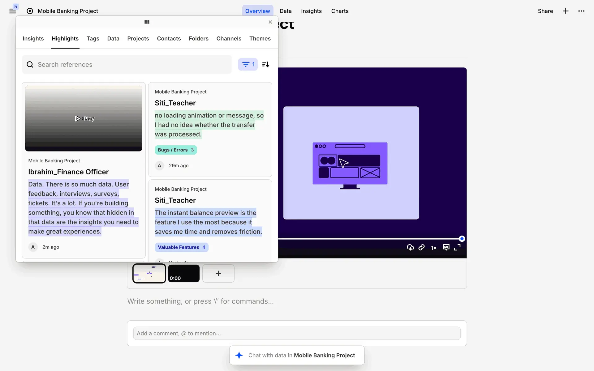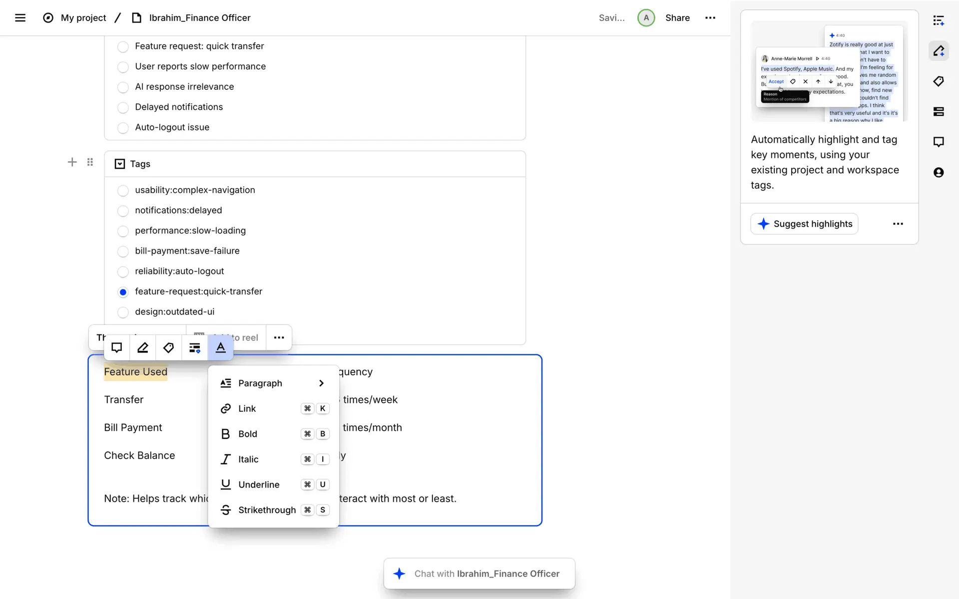 Dovetail — платформа для управления исследованиями пользователей и качественными данными. Помогает командам собирать, анализировать и делиться инсайтами из интервью, опросов и заметок.