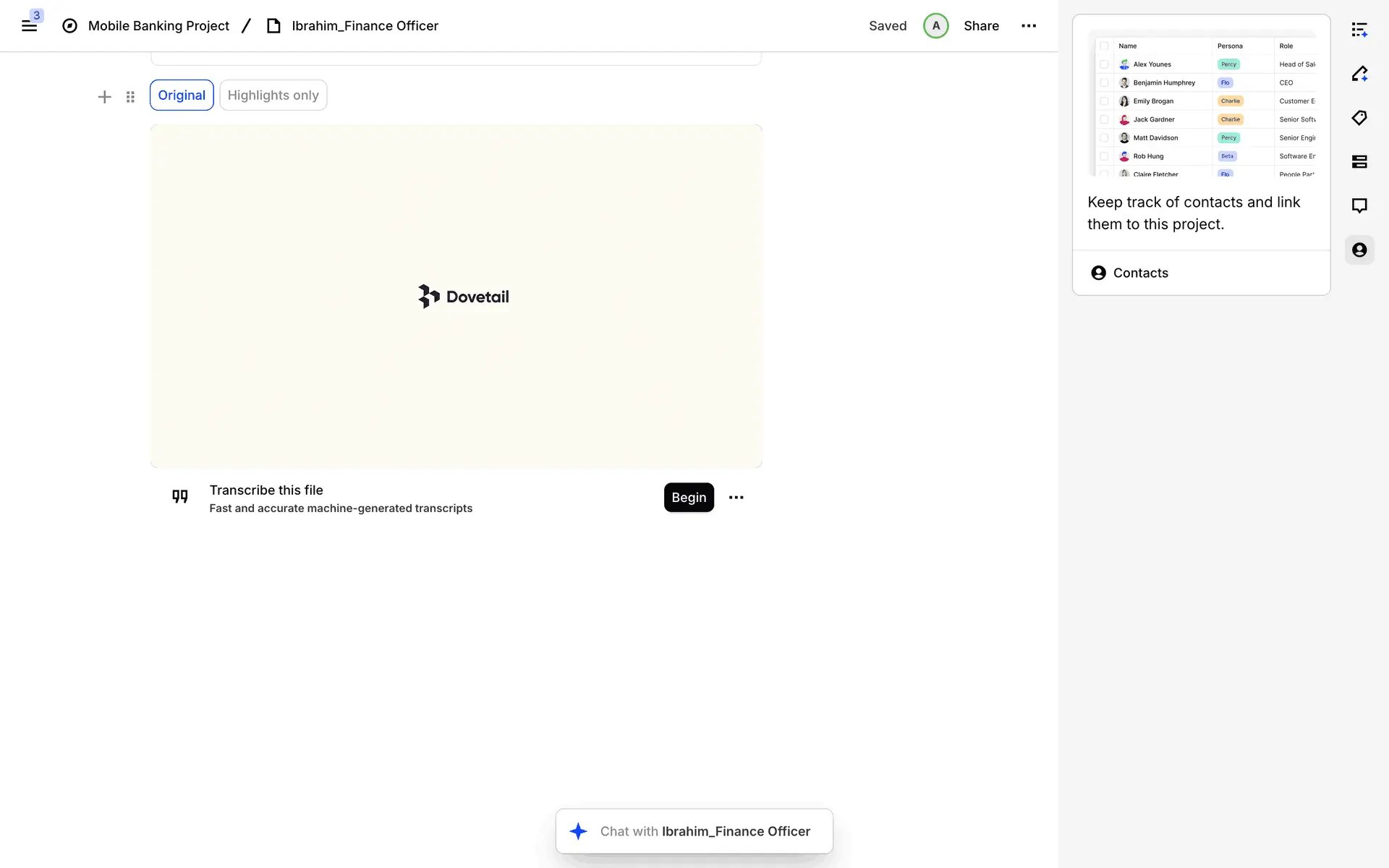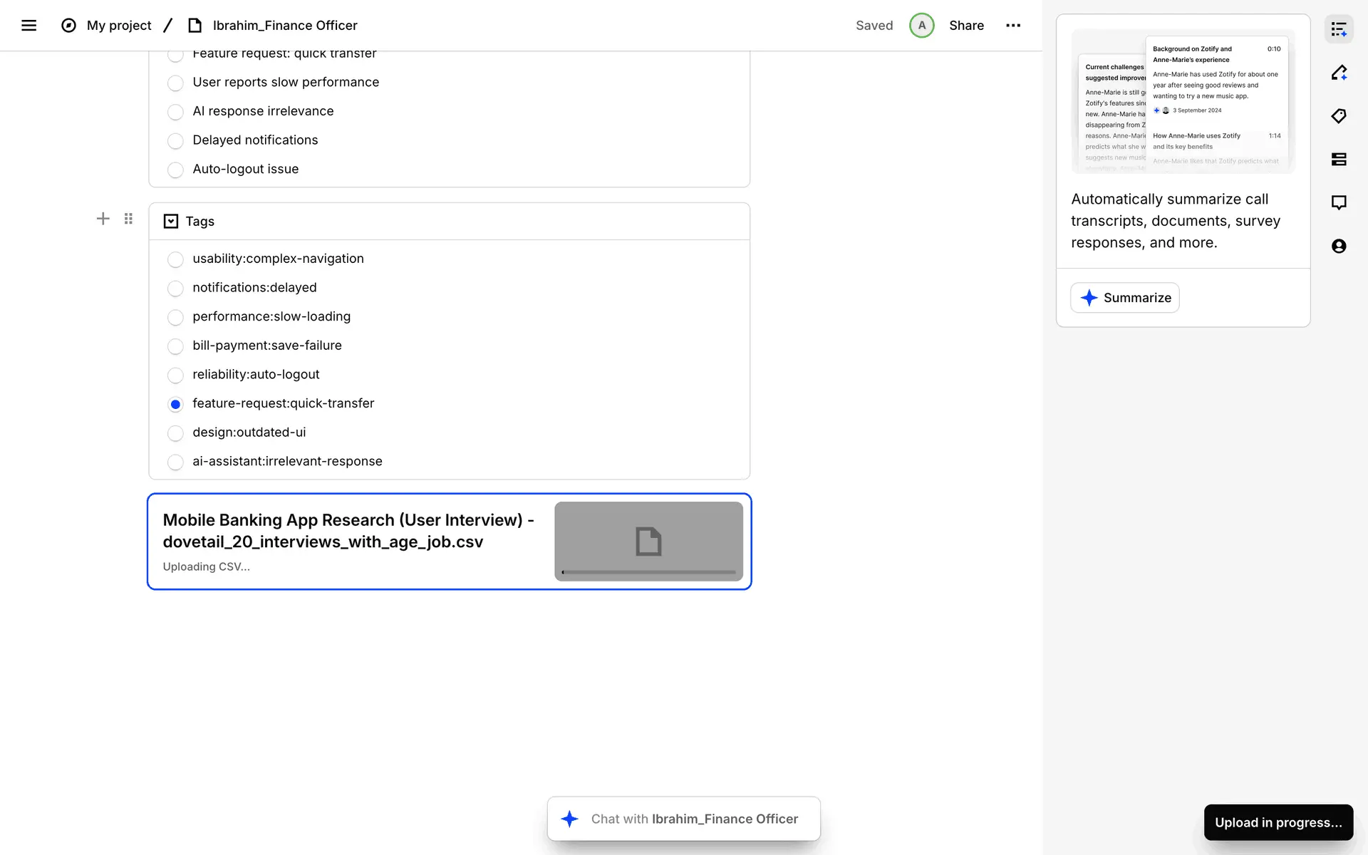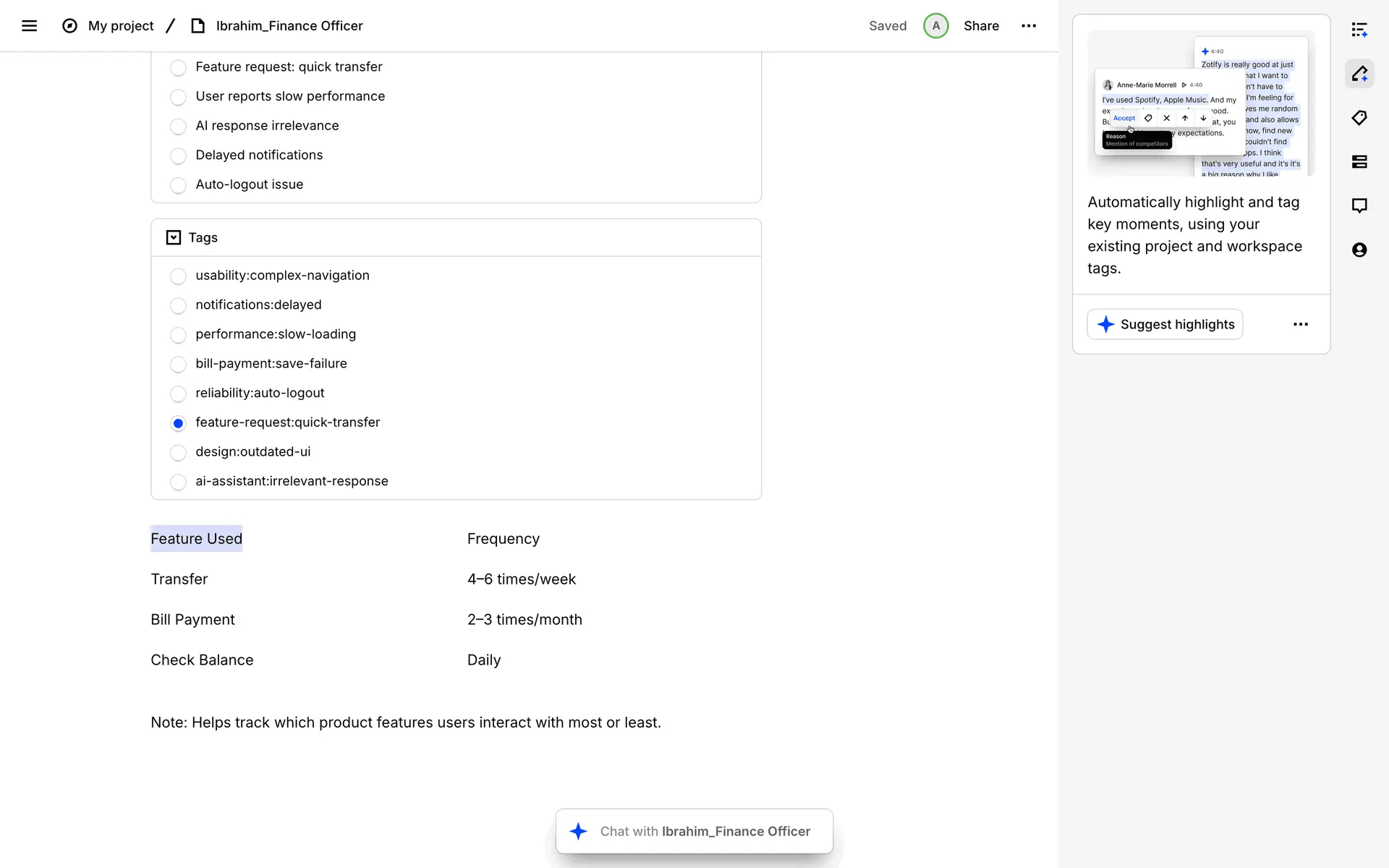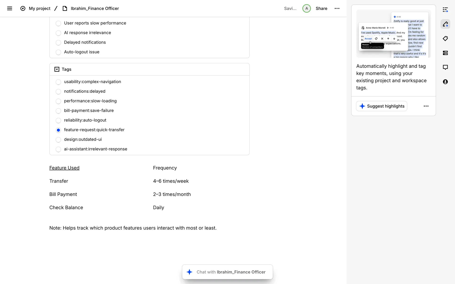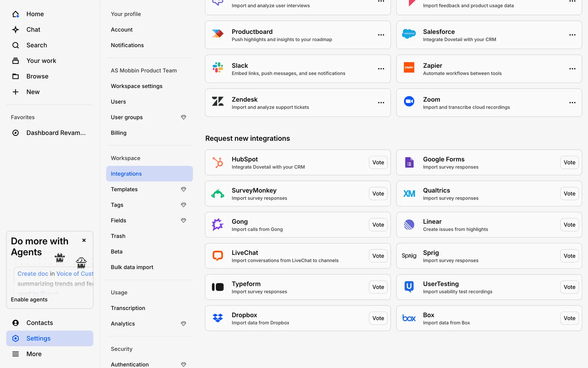 Dovetail — платформа для управления исследованиями пользователей и качественными данными. Помогает командам собирать, анализировать и делиться инсайтами из интервью, опросов и заметок.