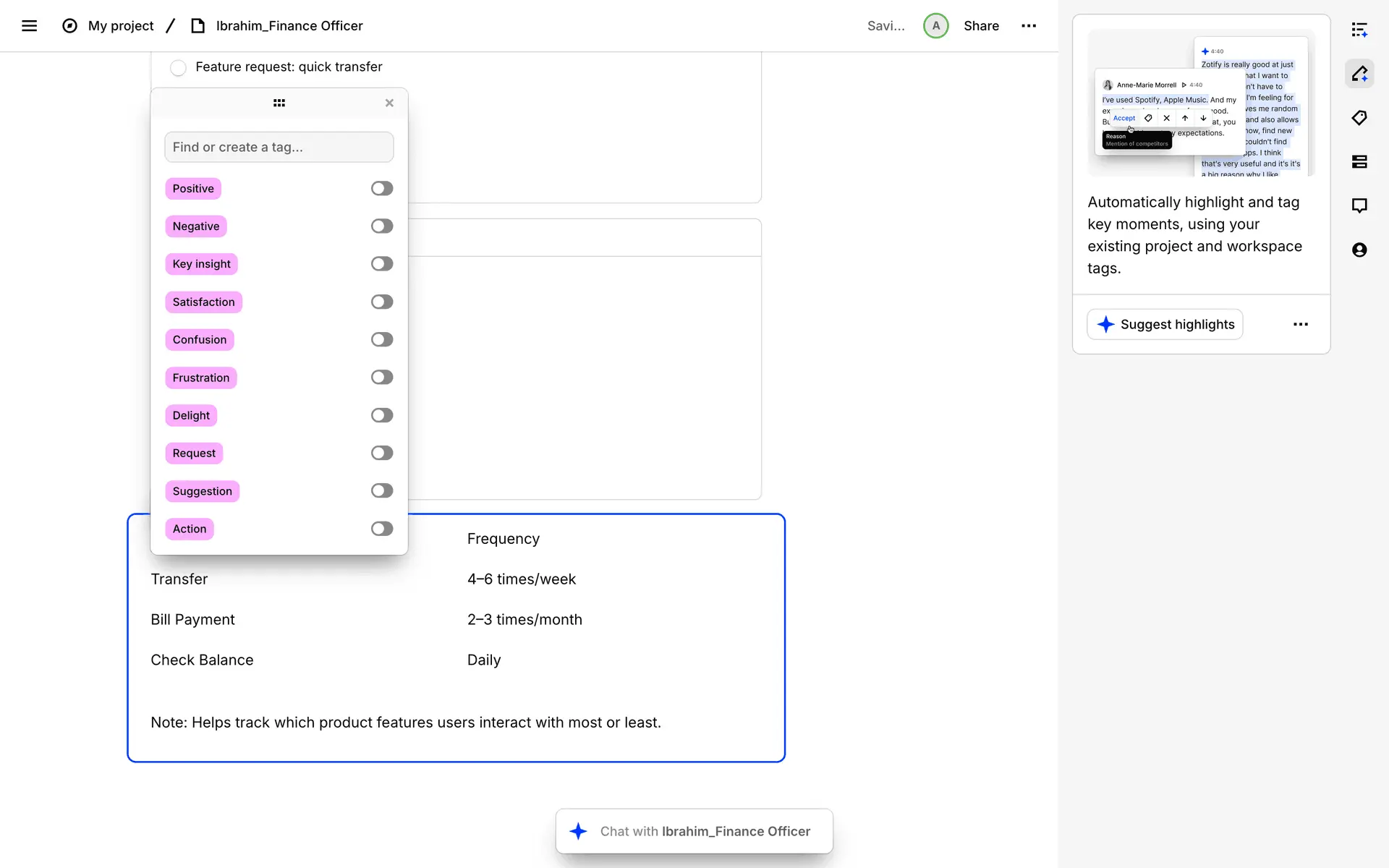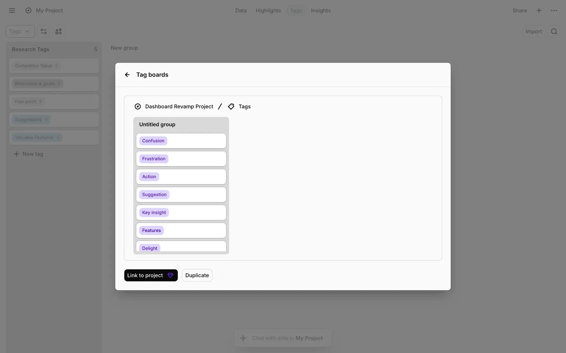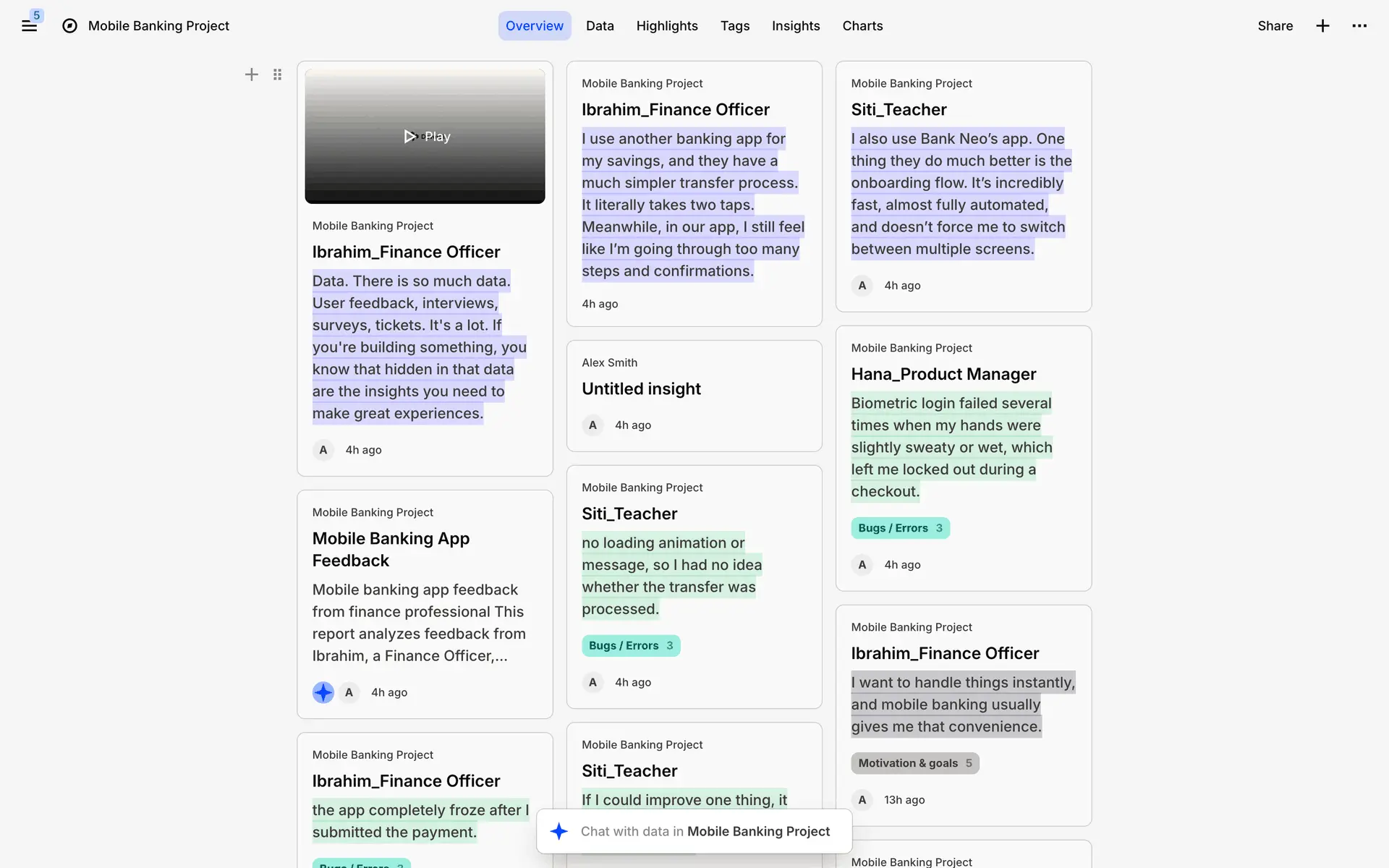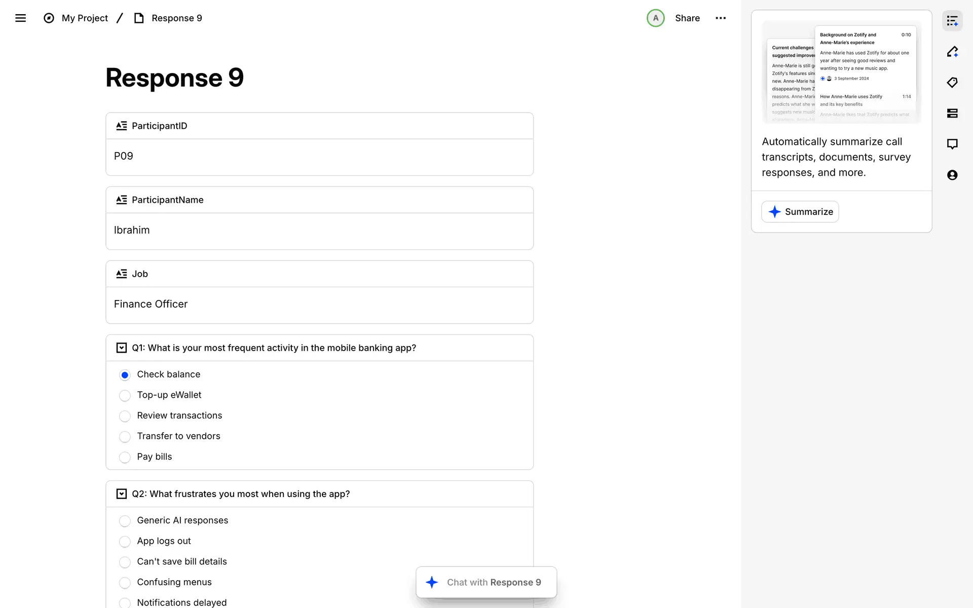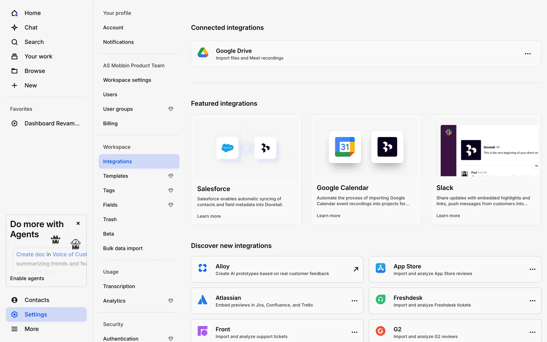 Dovetail — платформа для управления исследованиями пользователей и качественными данными. Помогает командам собирать, анализировать и делиться инсайтами из интервью, опросов и заметок.