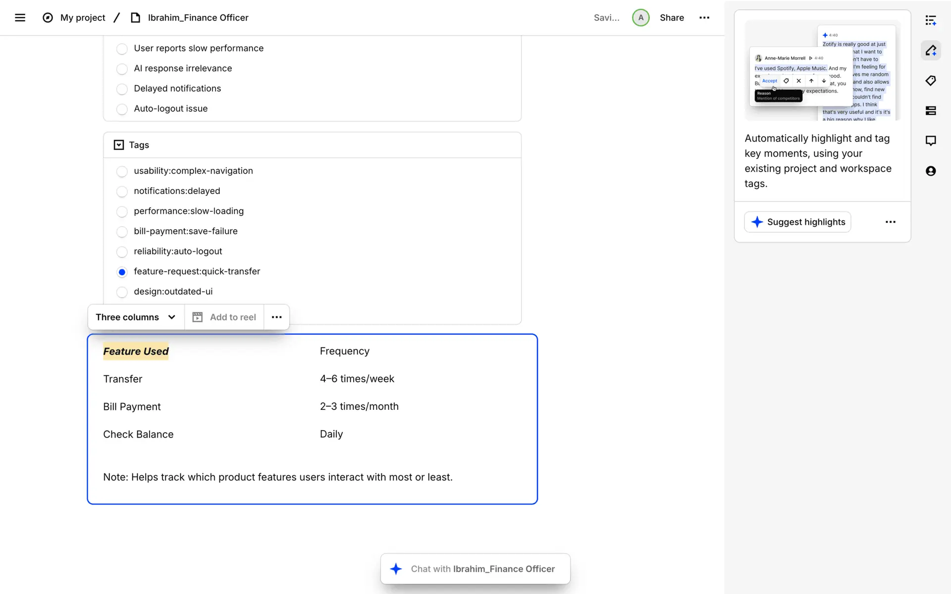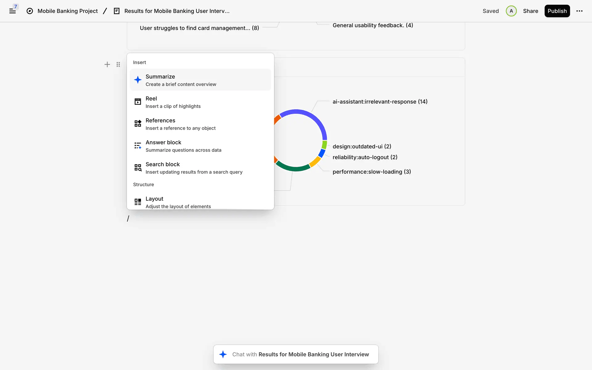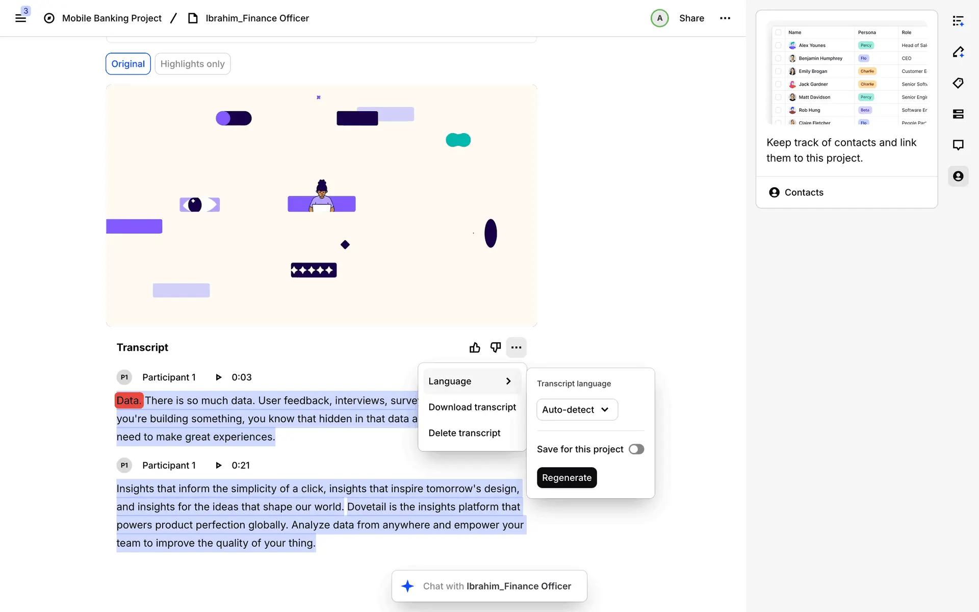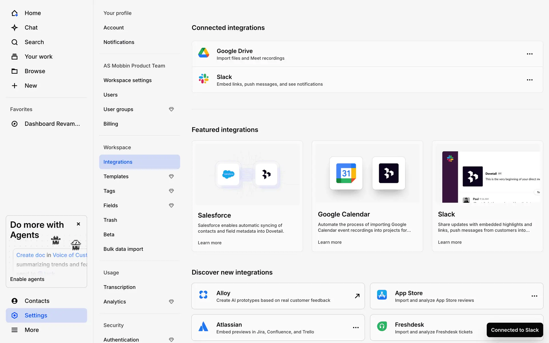 Dovetail — платформа для управления исследованиями пользователей и качественными данными. Помогает командам собирать, анализировать и делиться инсайтами из интервью, опросов и заметок.