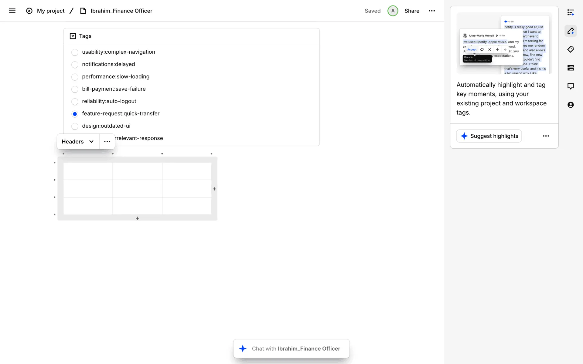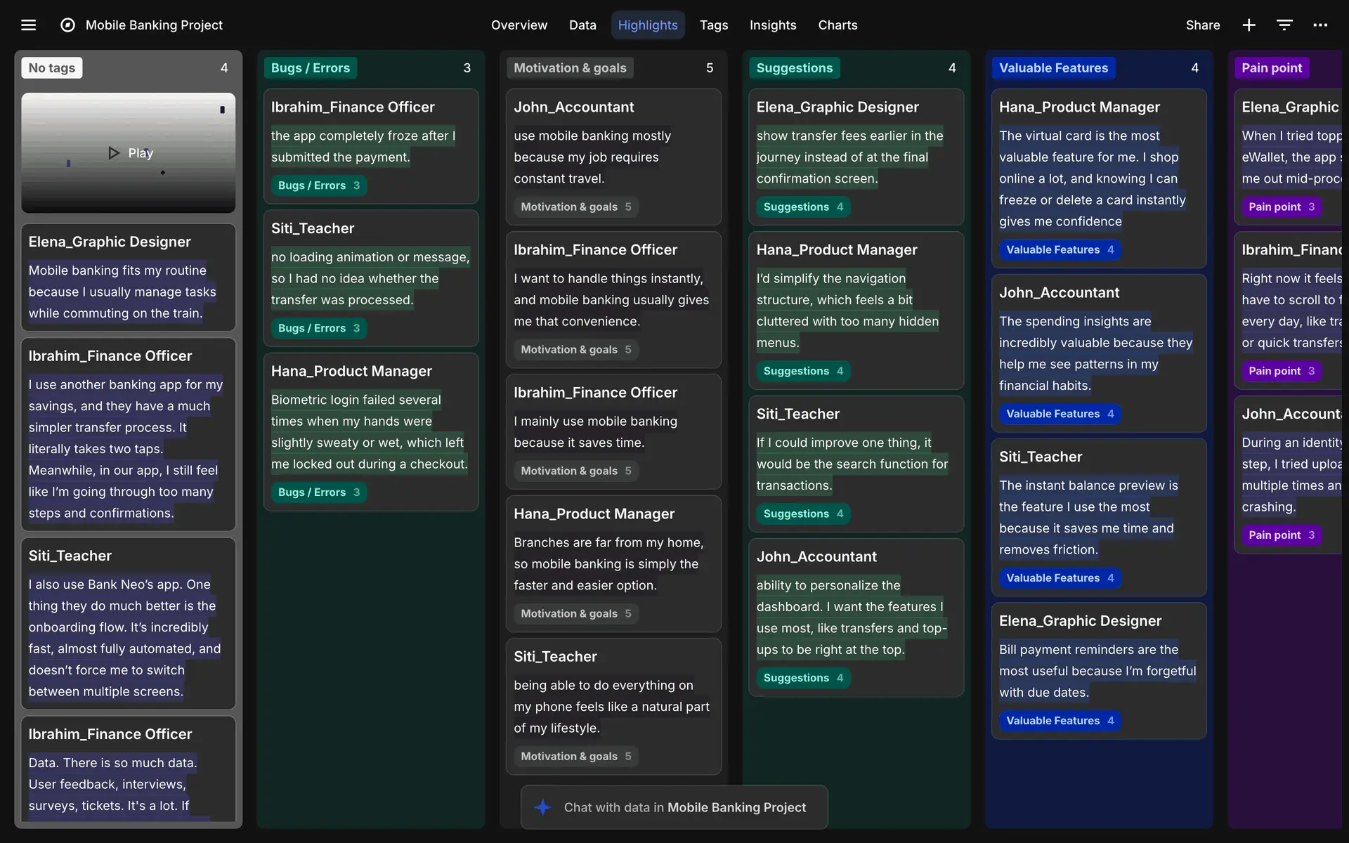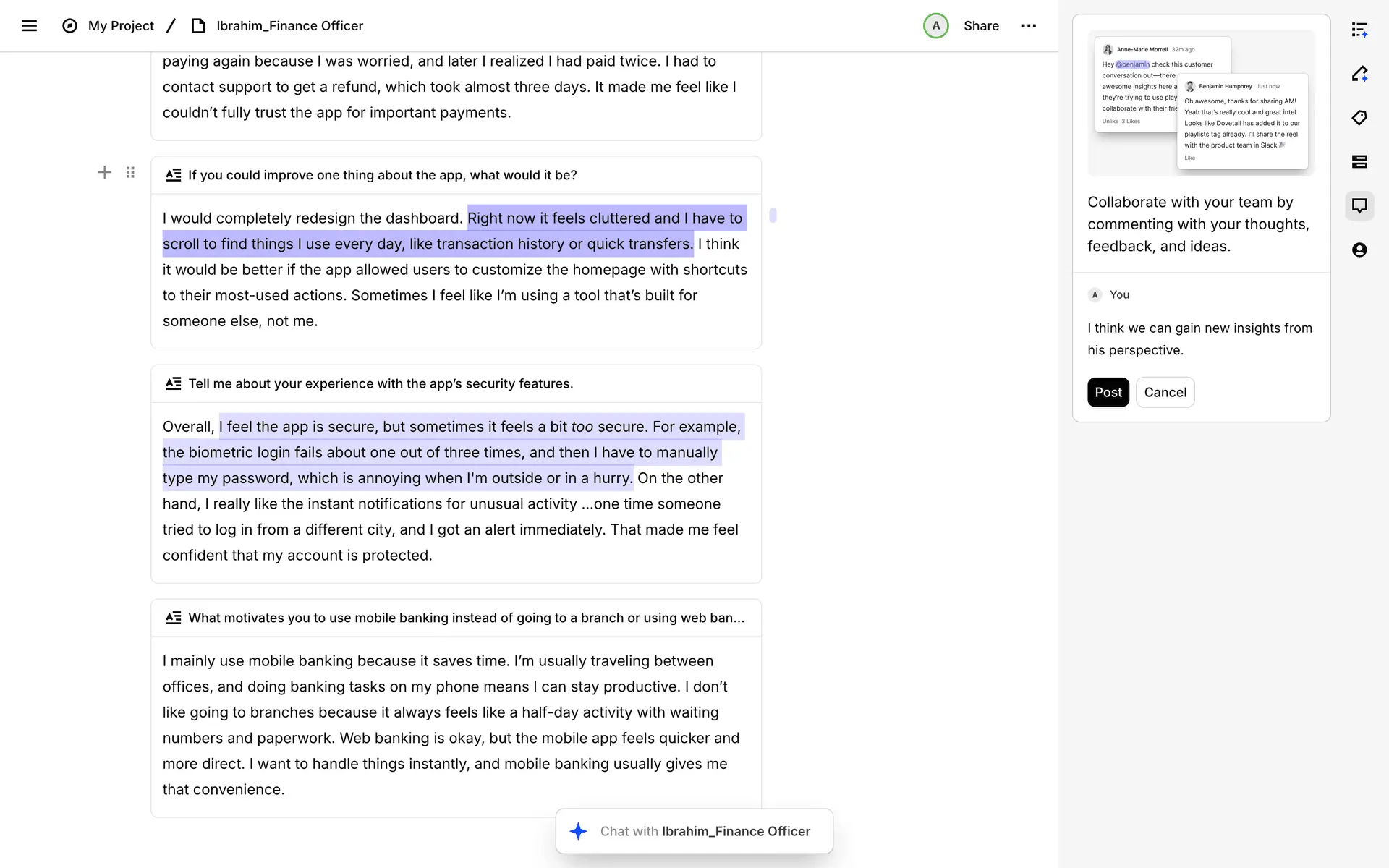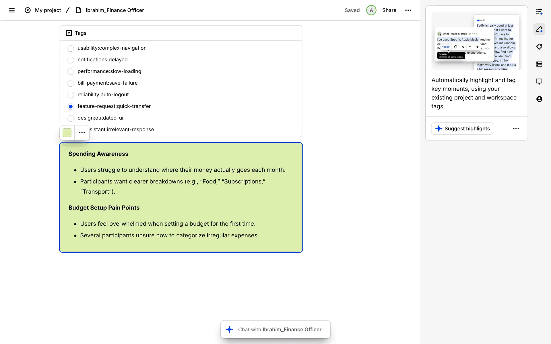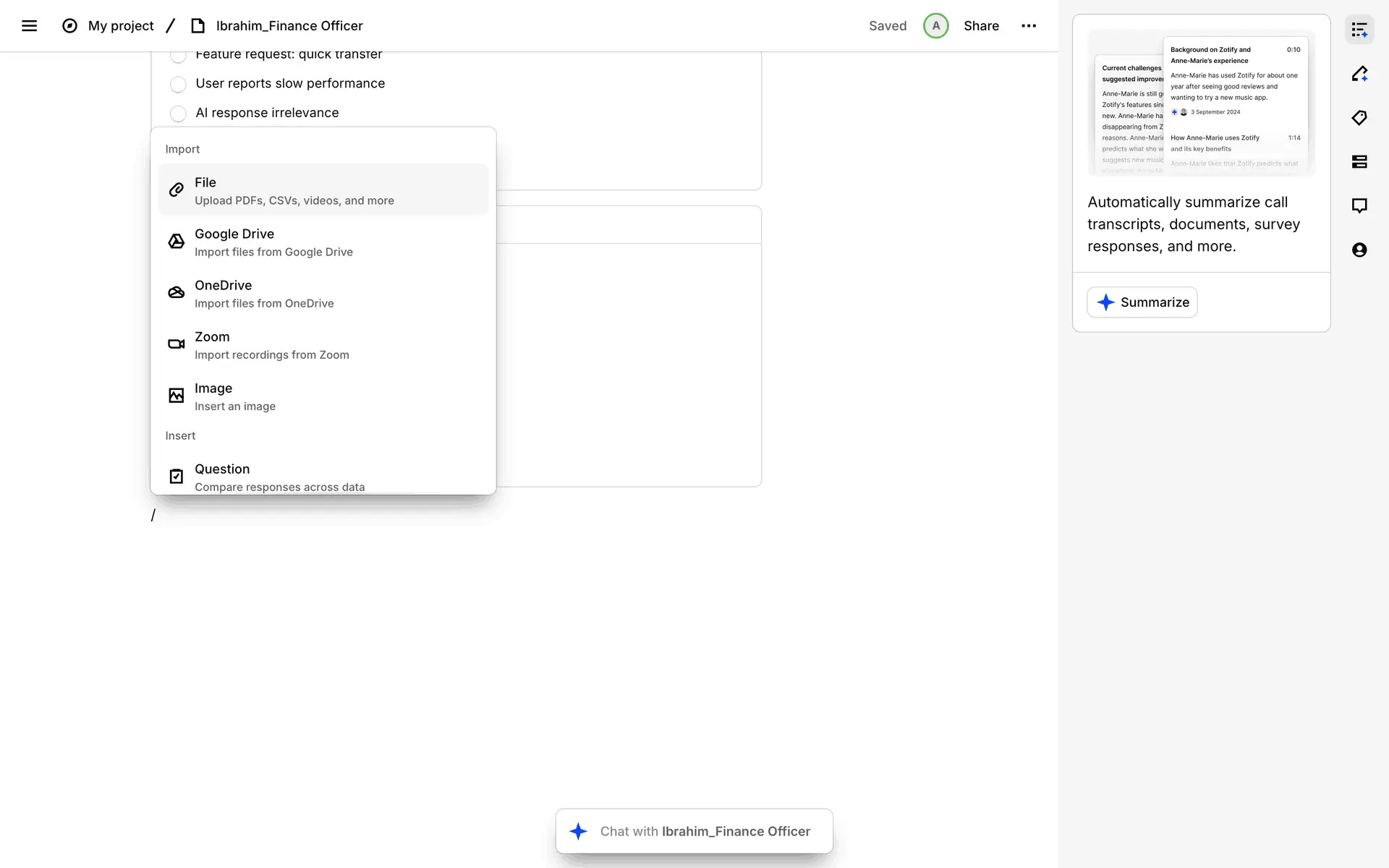 Dovetail — платформа для управления исследованиями пользователей и качественными данными. Помогает командам собирать, анализировать и делиться инсайтами из интервью, опросов и заметок.
