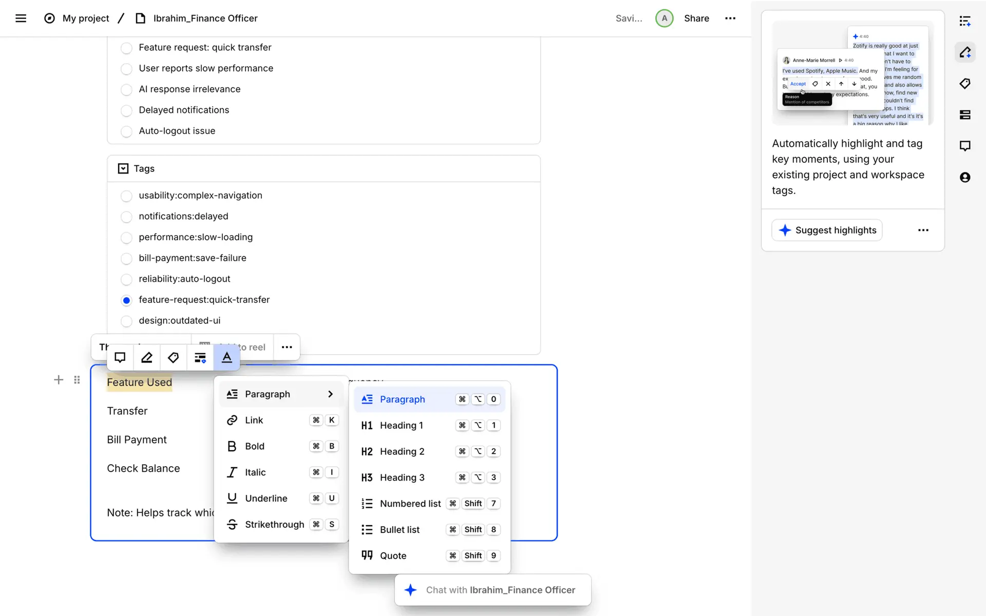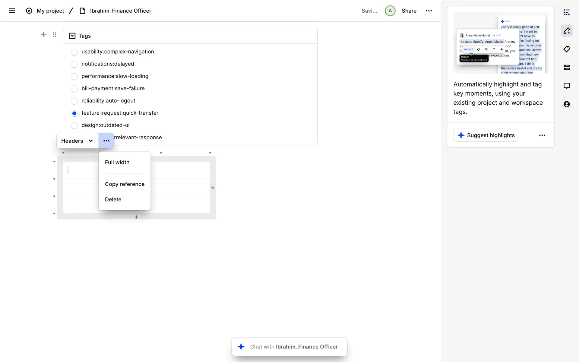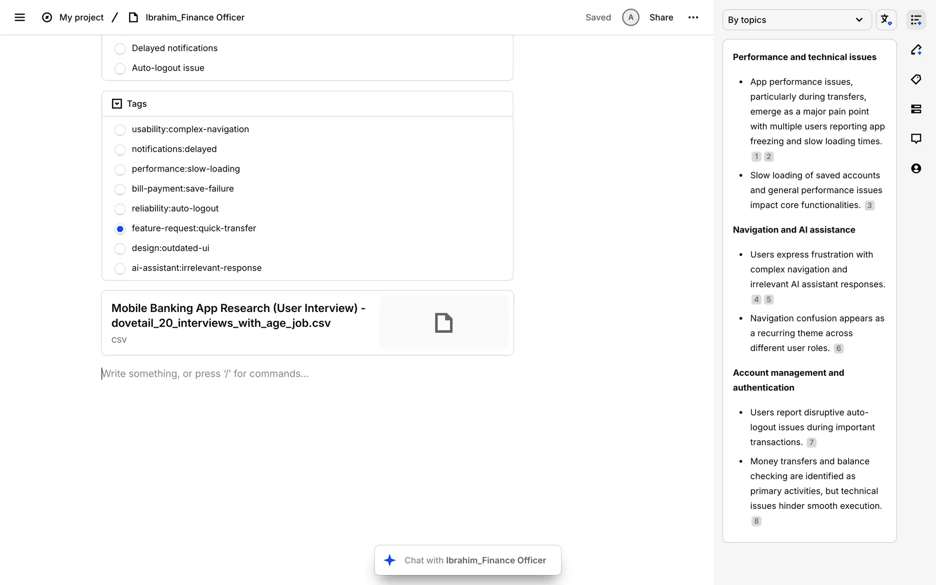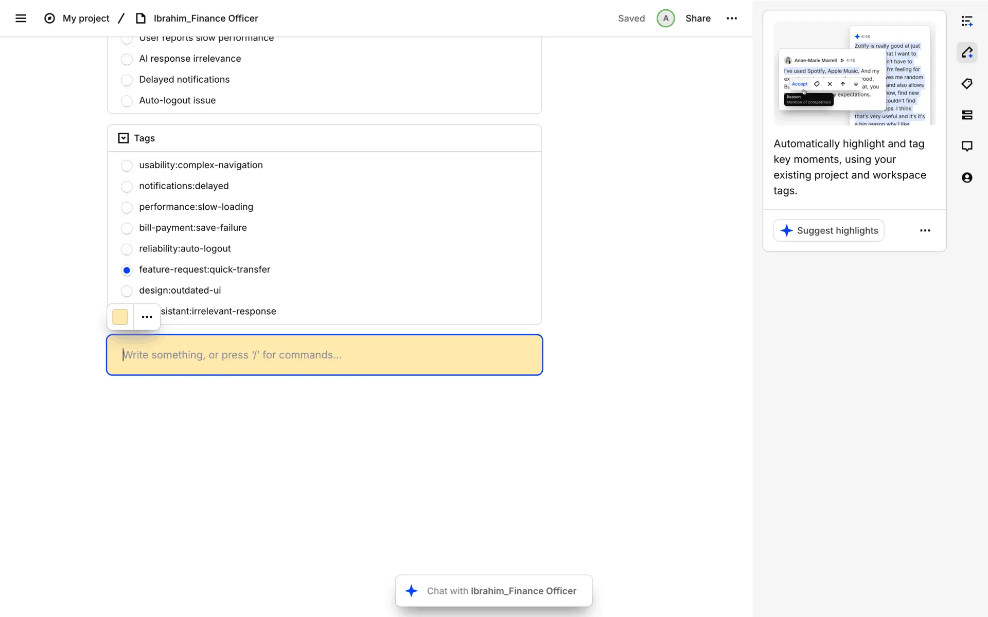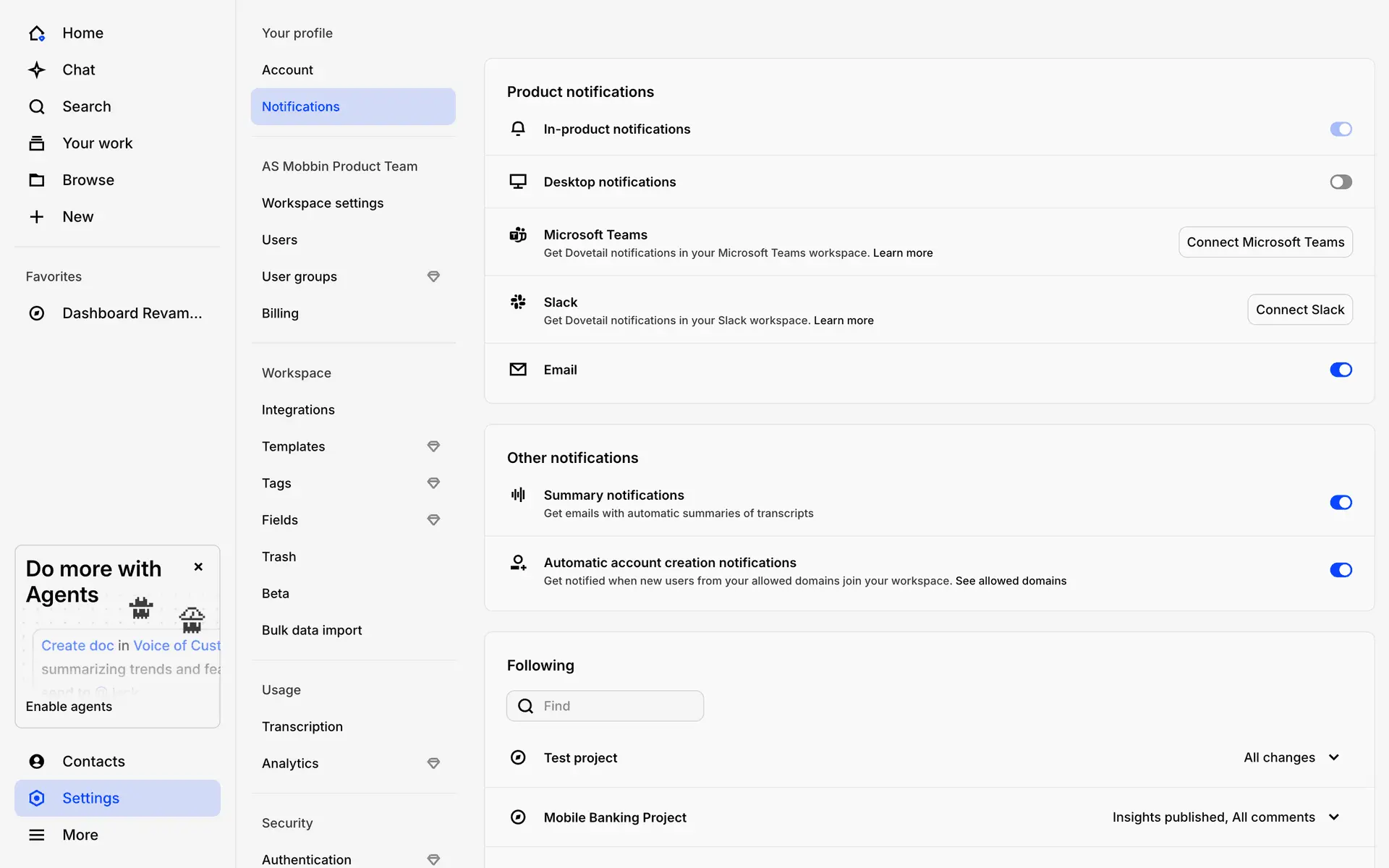 Dovetail — платформа для управления исследованиями пользователей и качественными данными. Помогает командам собирать, анализировать и делиться инсайтами из интервью, опросов и заметок.