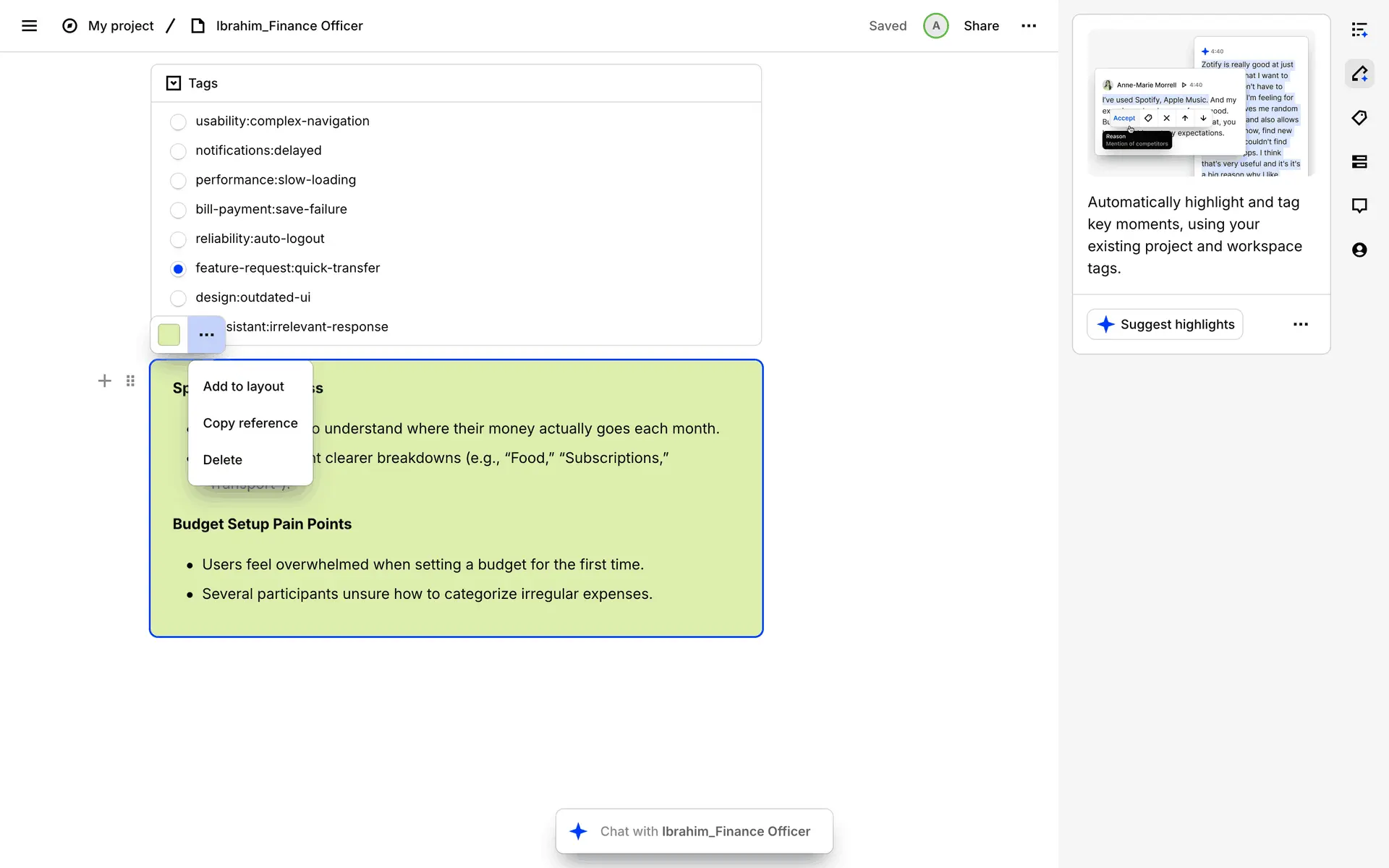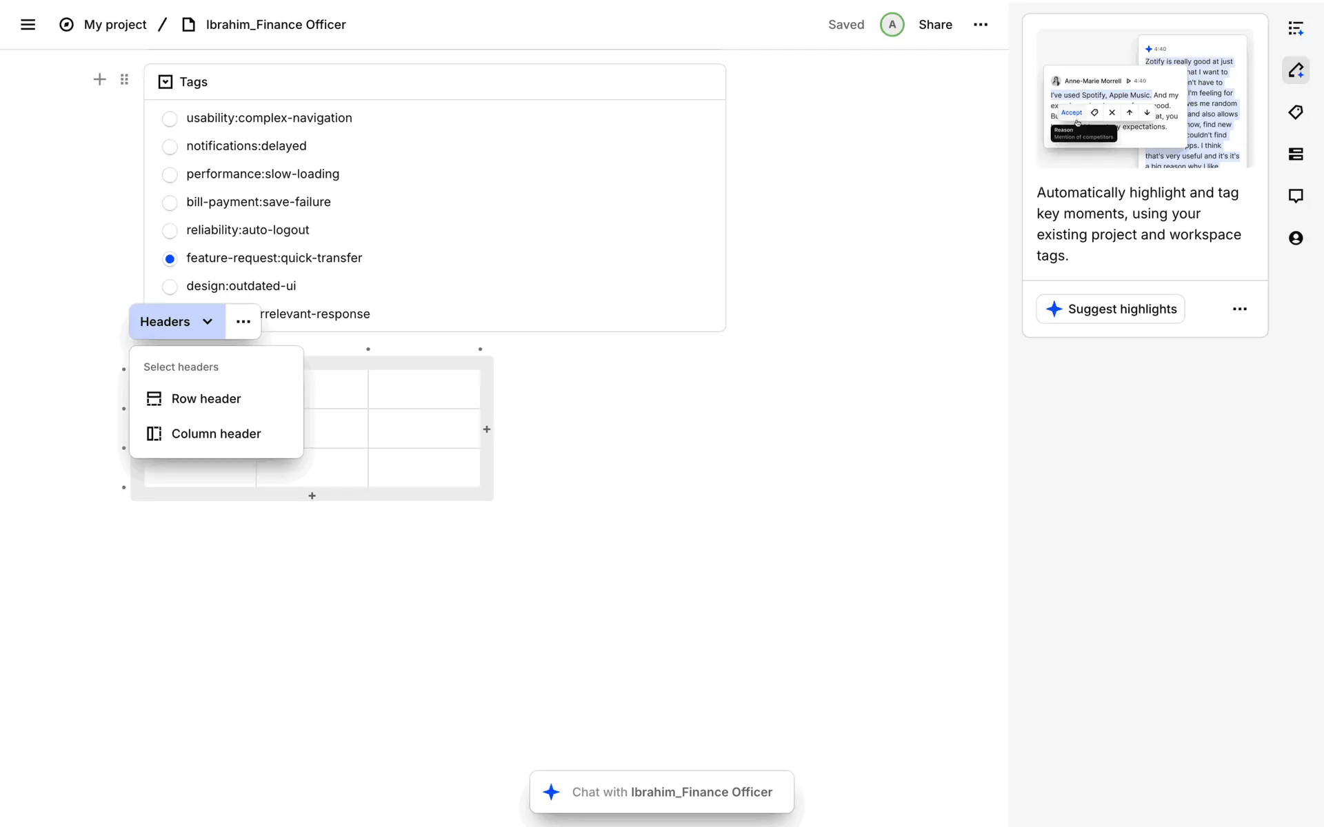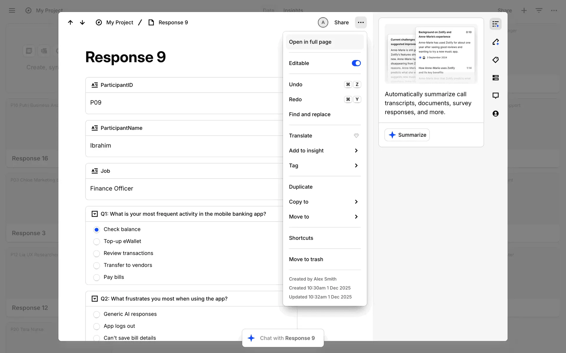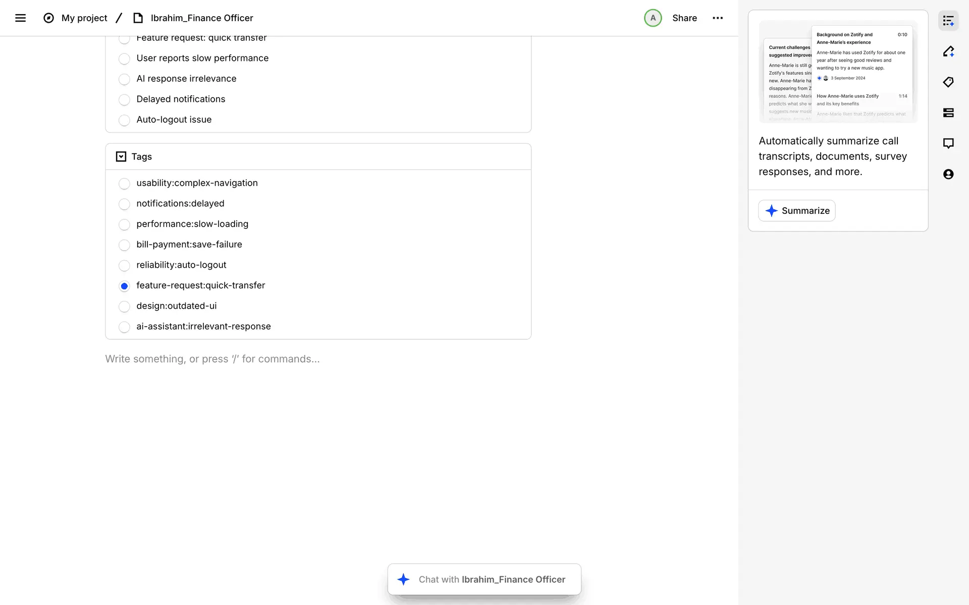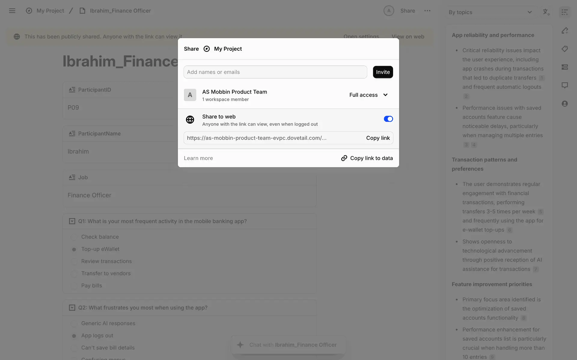 Dovetail — платформа для управления исследованиями пользователей и качественными данными. Помогает командам собирать, анализировать и делиться инсайтами из интервью, опросов и заметок.