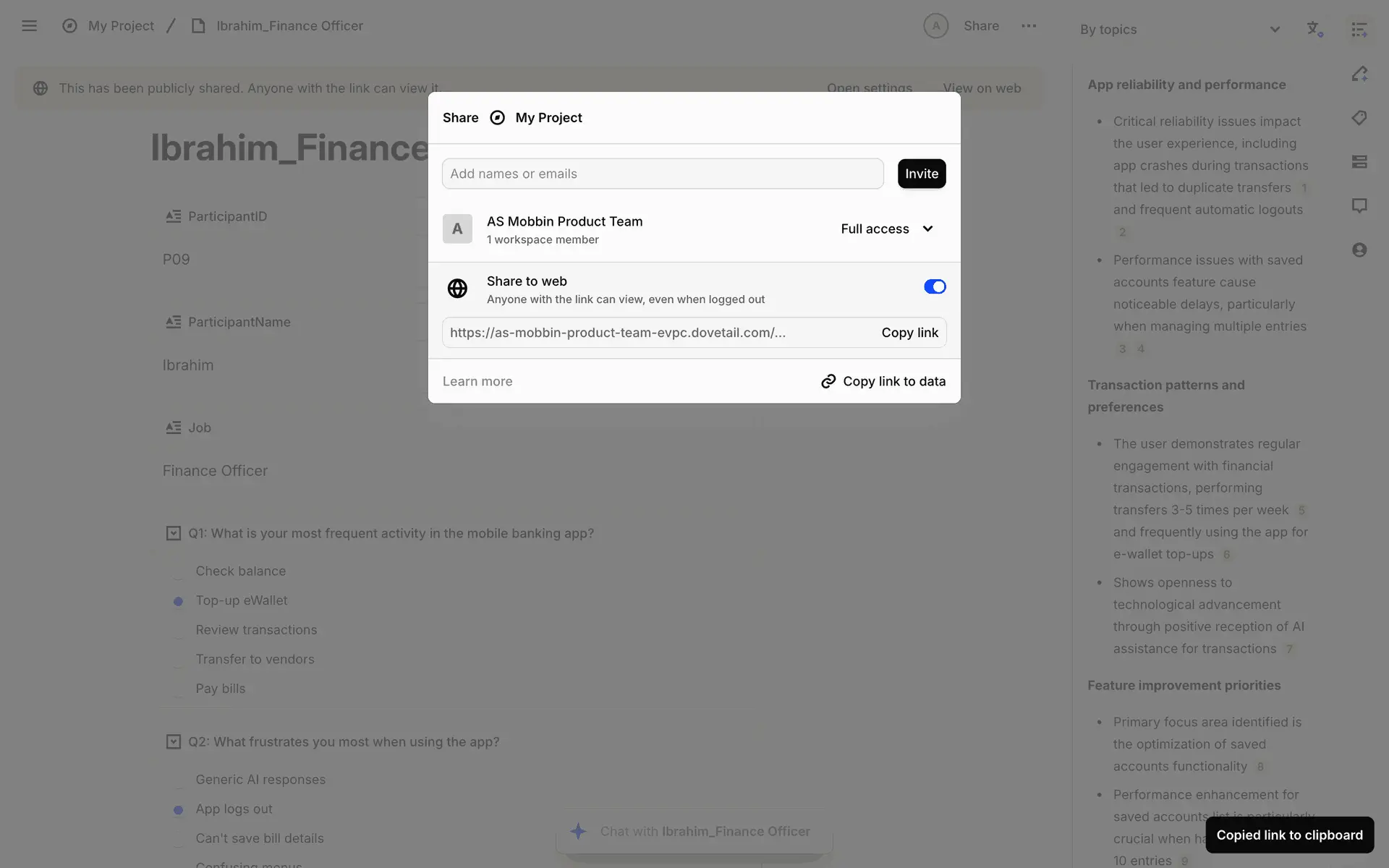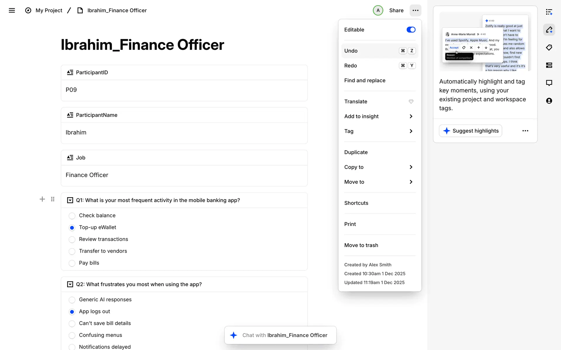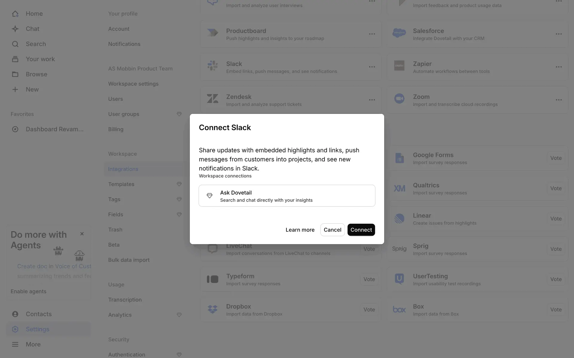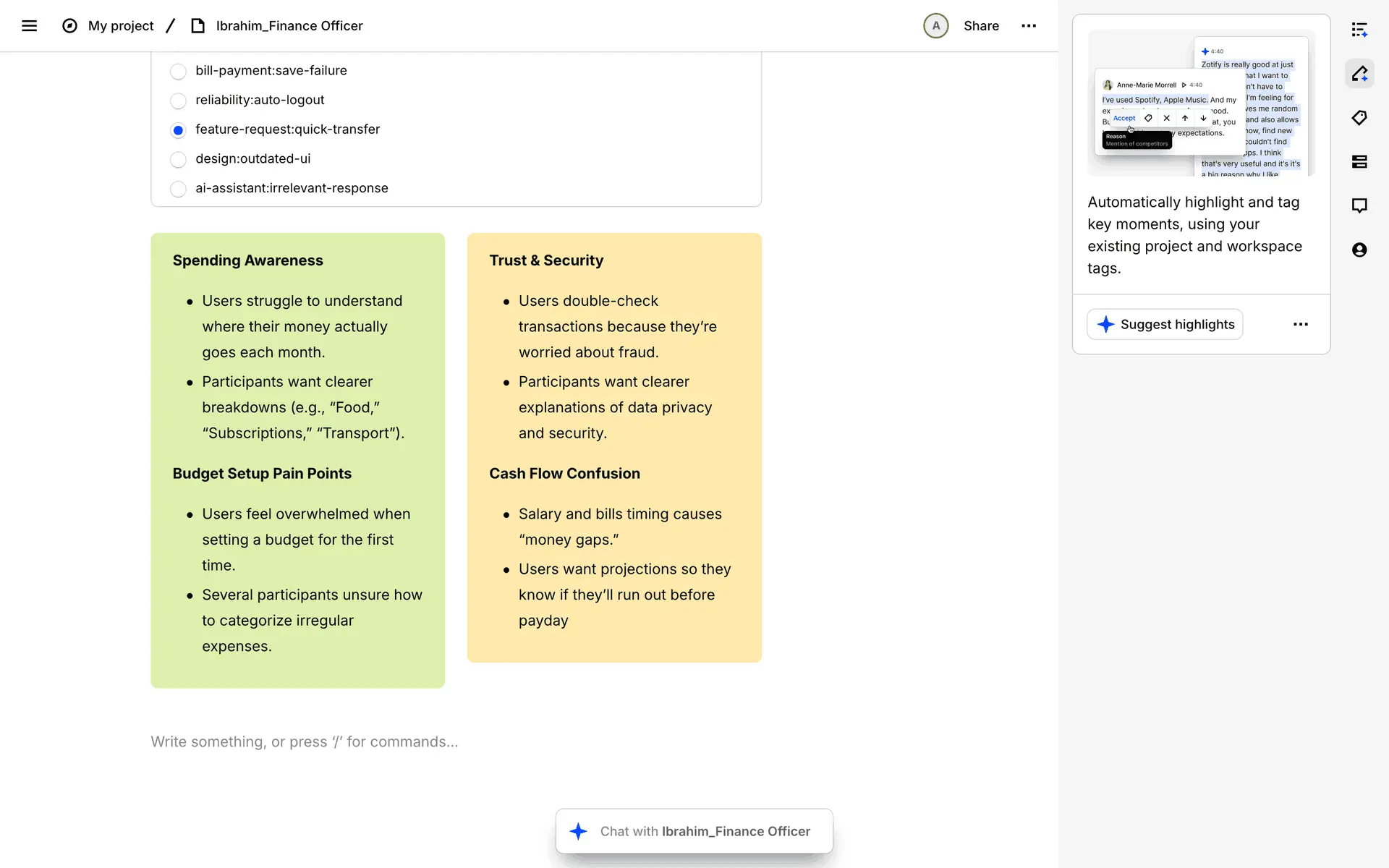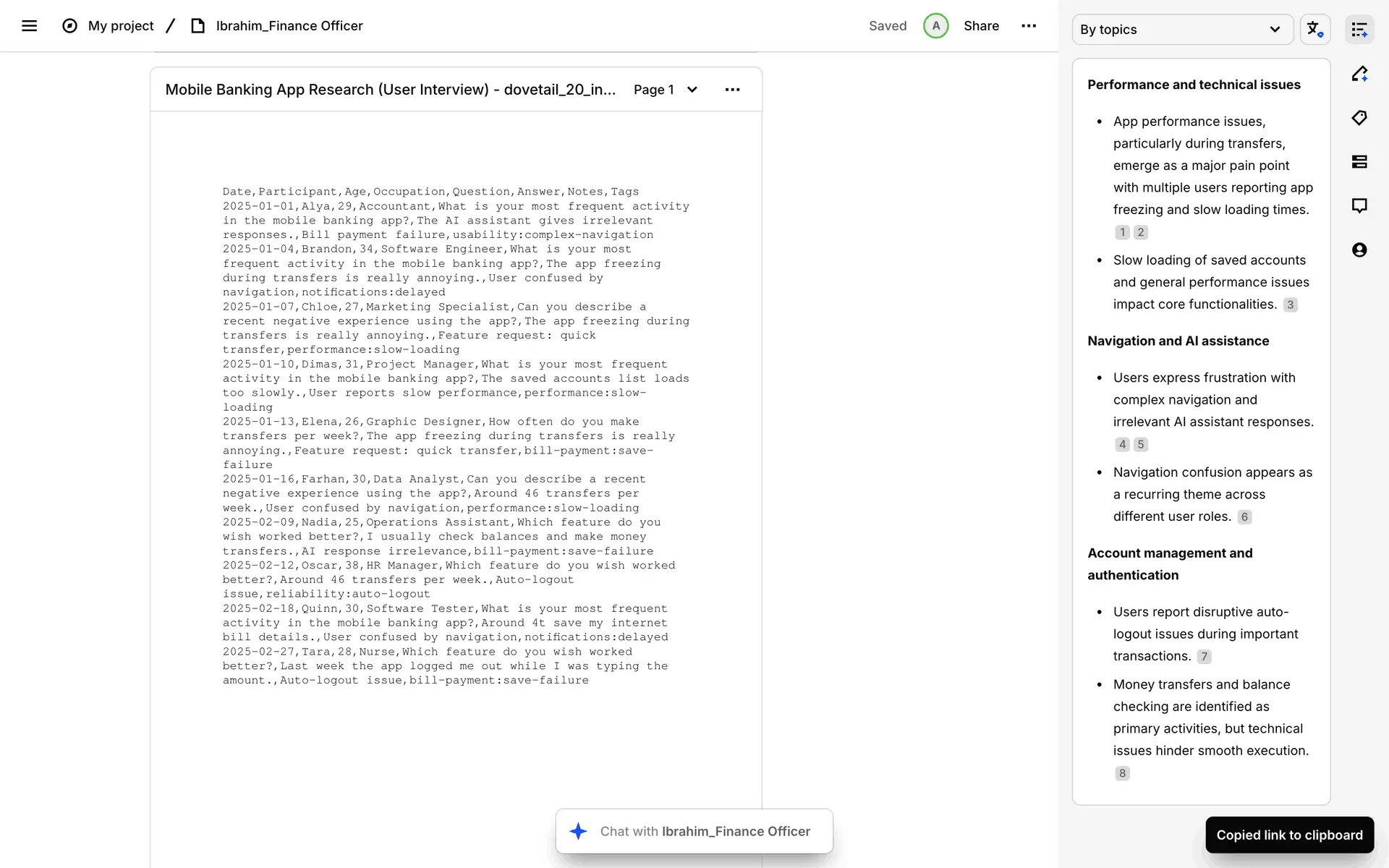Dovetail — платформа для управления исследованиями пользователей и качественными данными. Помогает командам собирать, анализировать и делиться инсайтами из интервью, опросов и заметок.