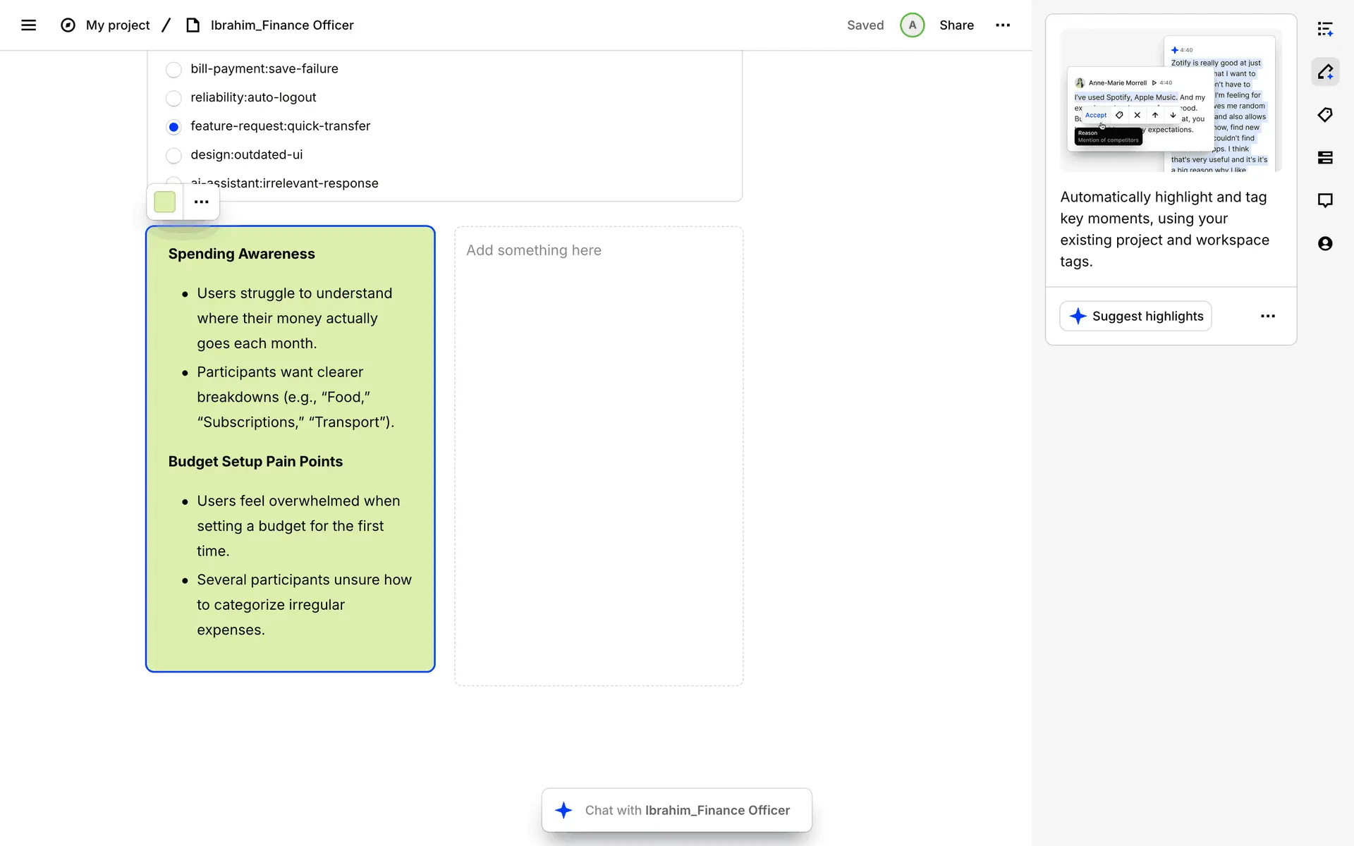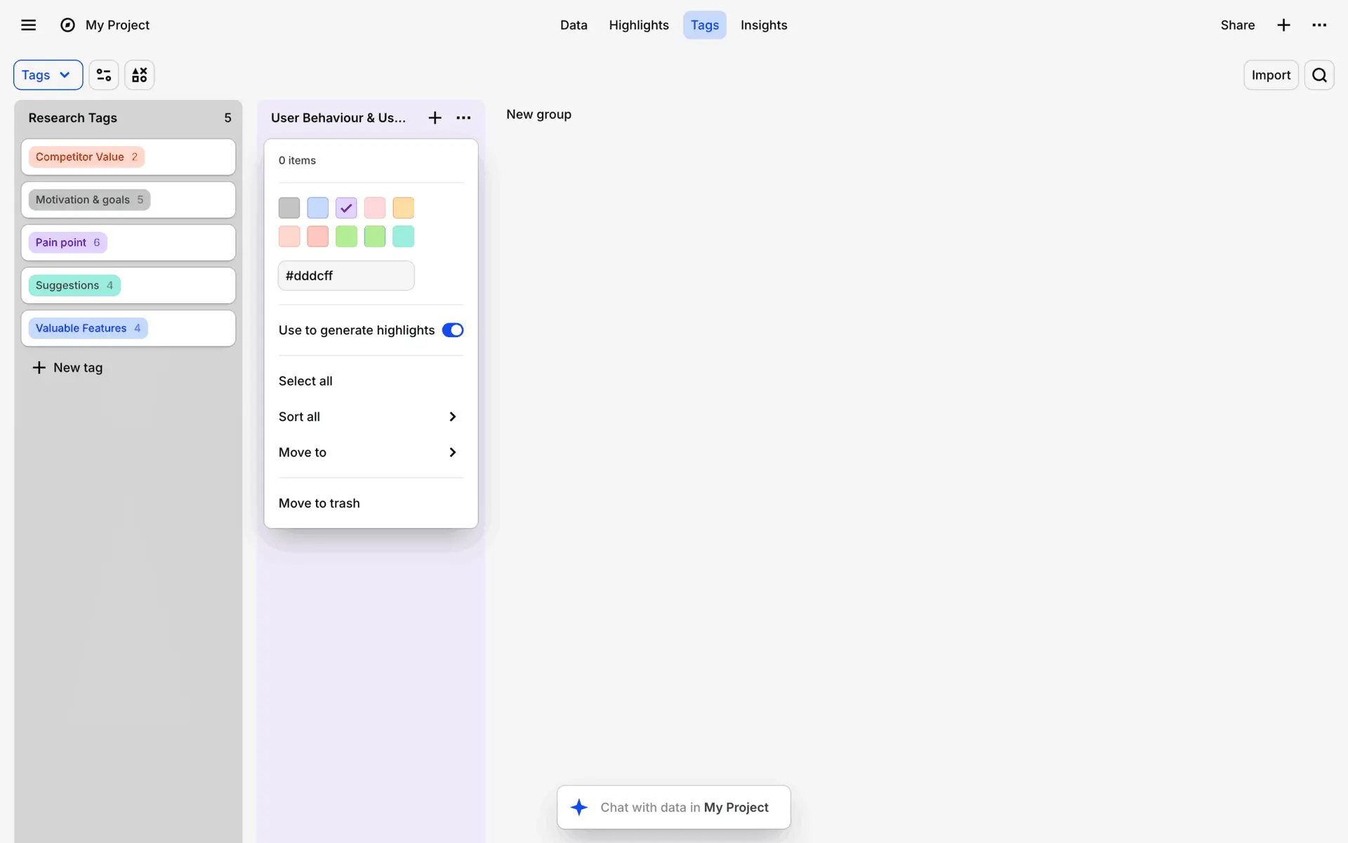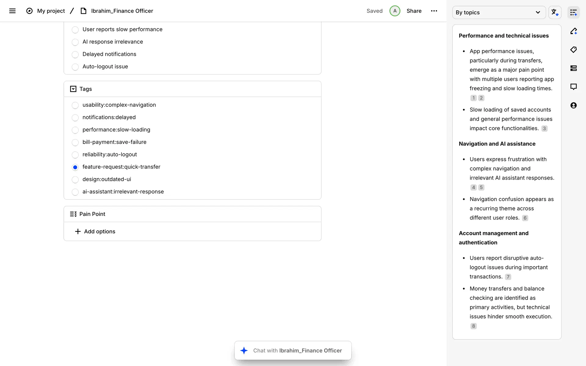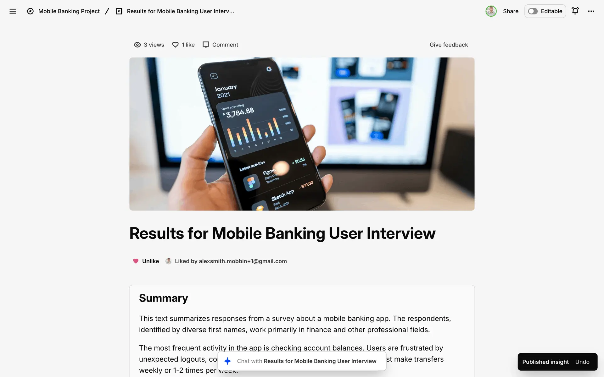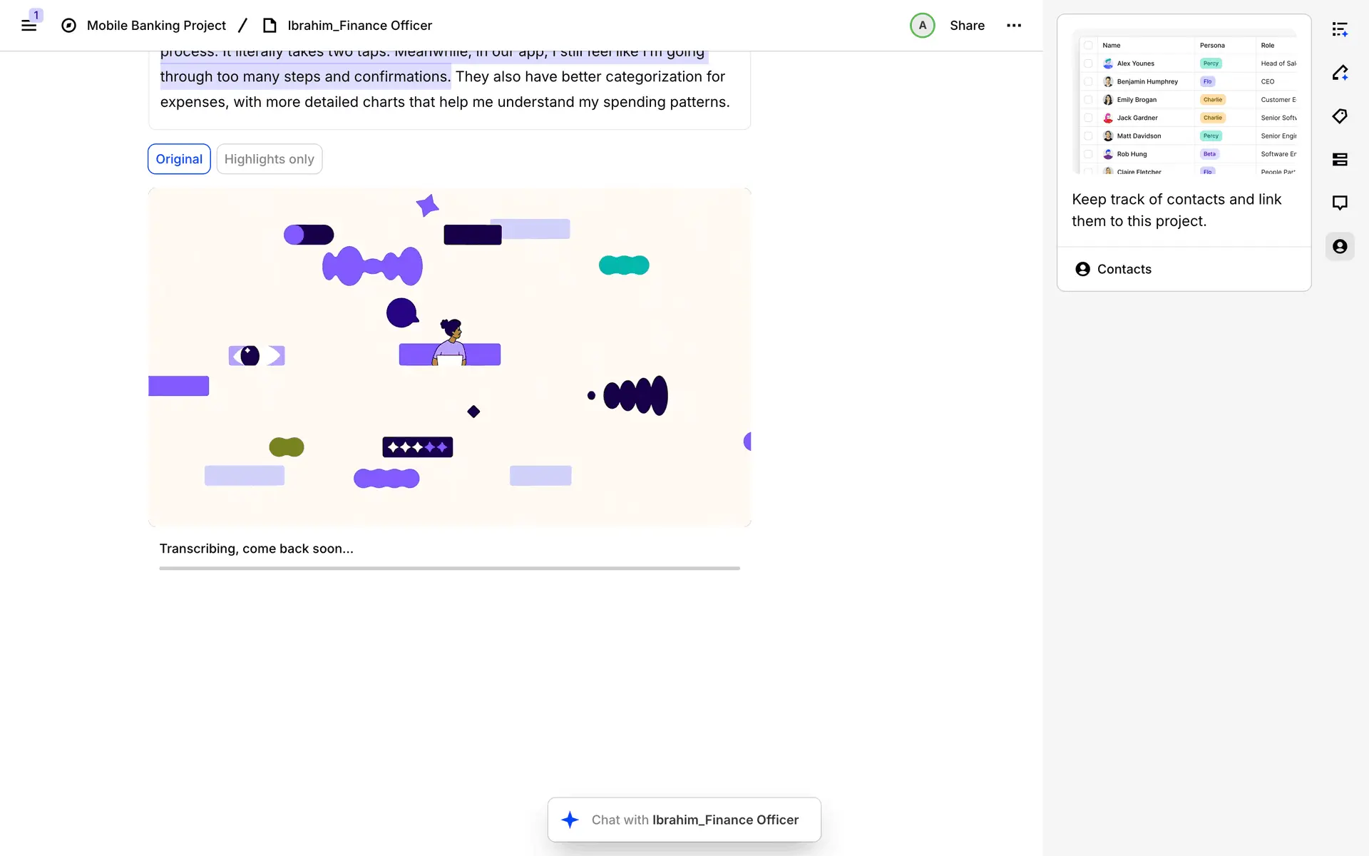 Dovetail — платформа для управления исследованиями пользователей и качественными данными. Помогает командам собирать, анализировать и делиться инсайтами из интервью, опросов и заметок.