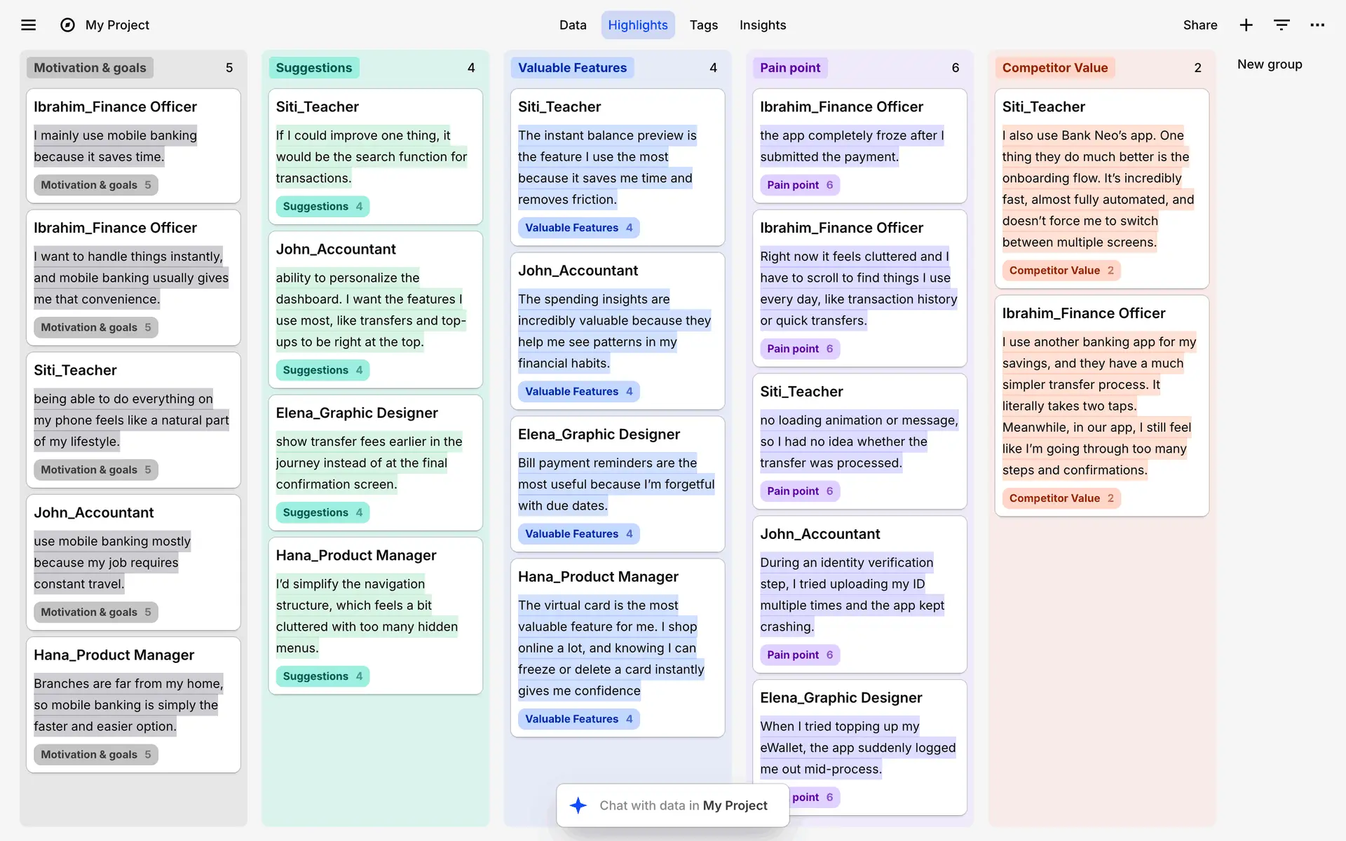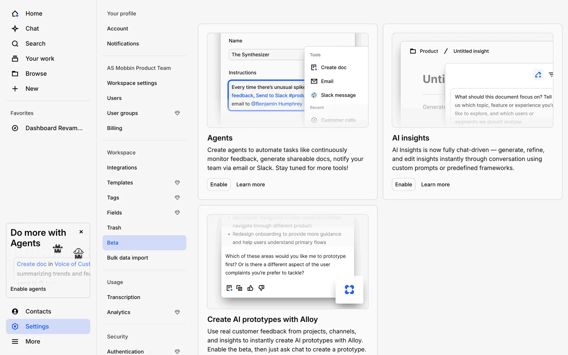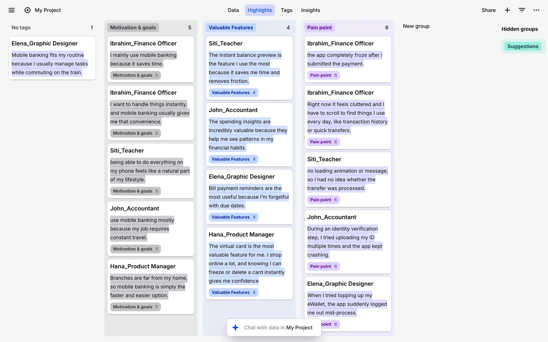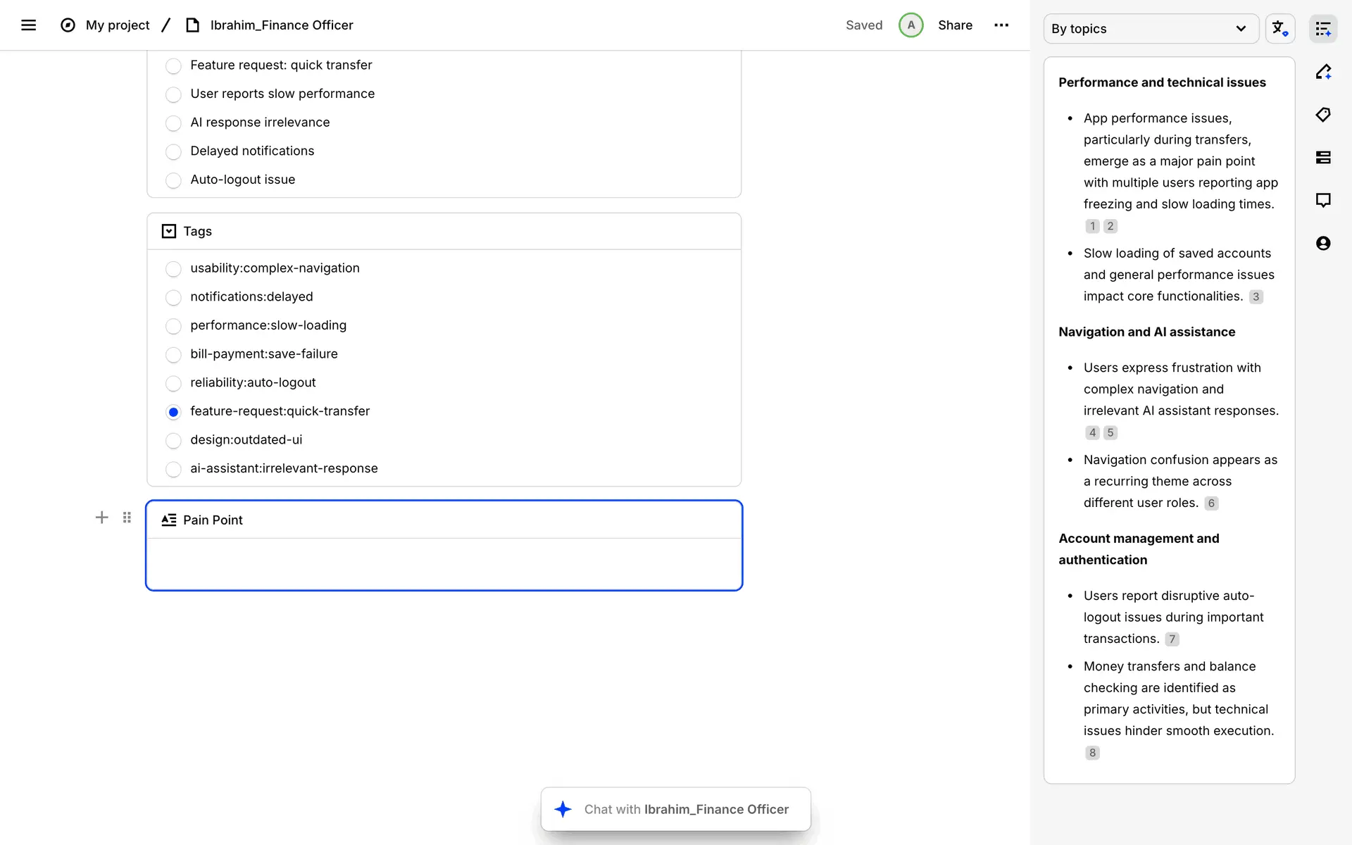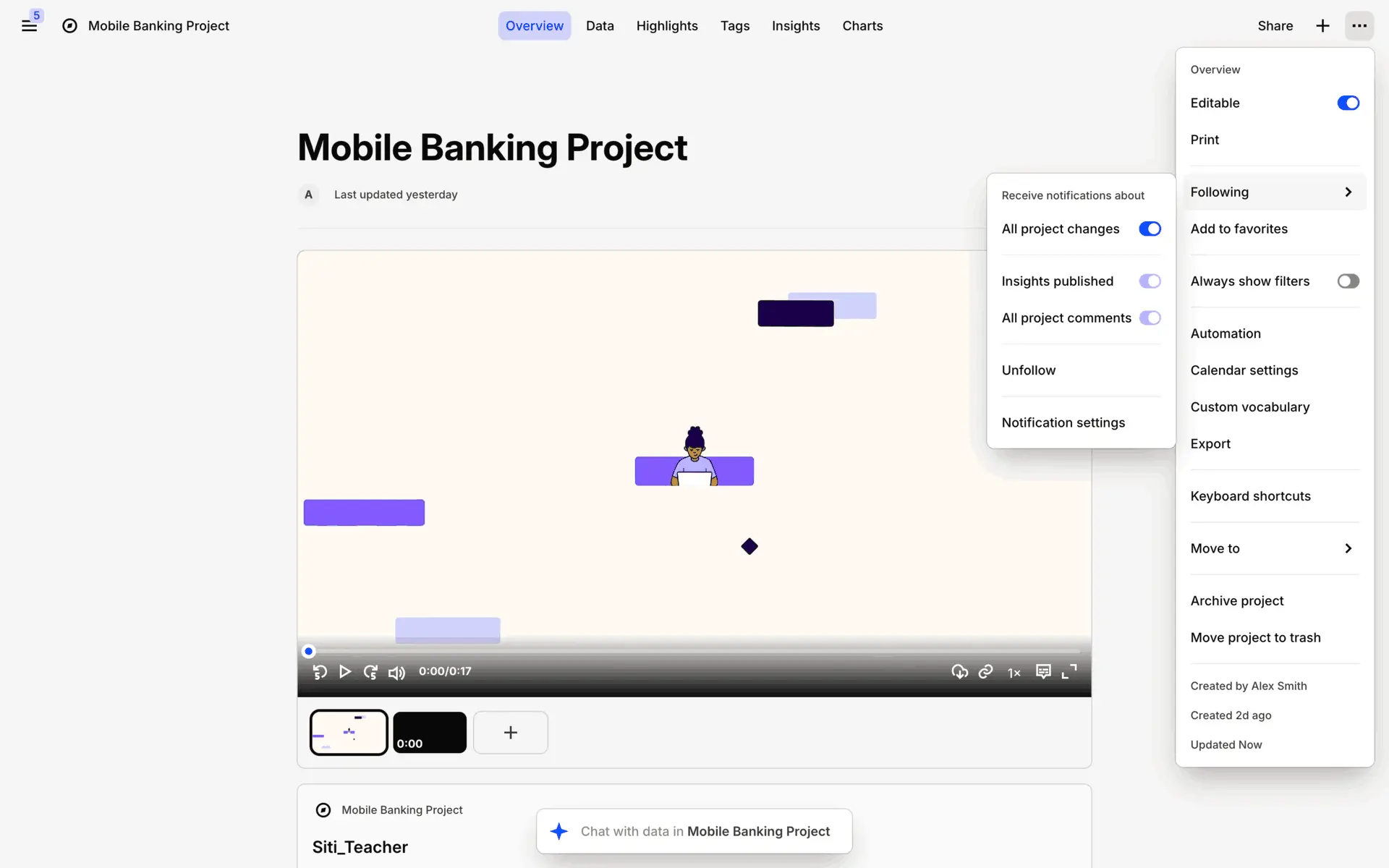 Dovetail — платформа для управления исследованиями пользователей и качественными данными. Помогает командам собирать, анализировать и делиться инсайтами из интервью, опросов и заметок.
