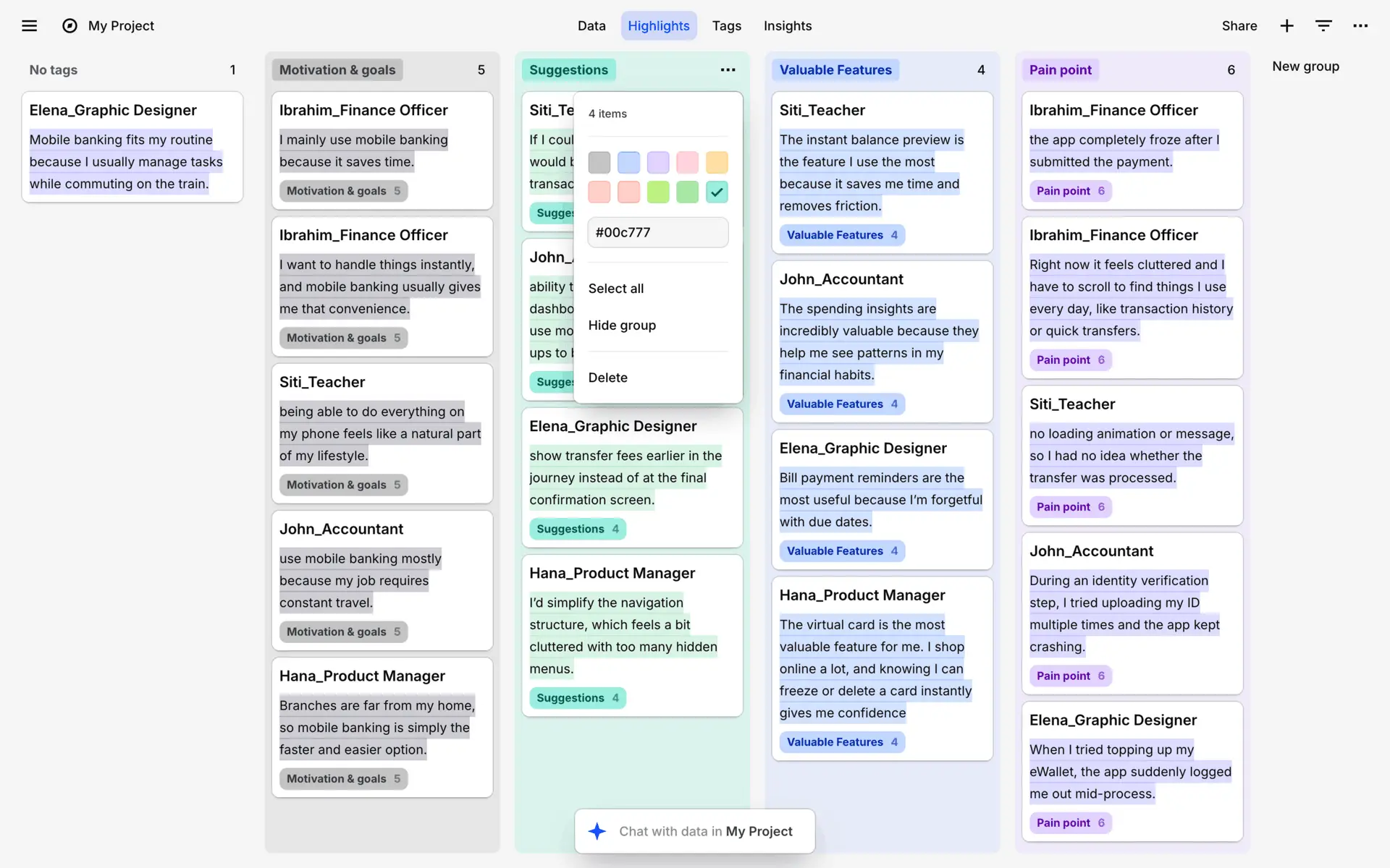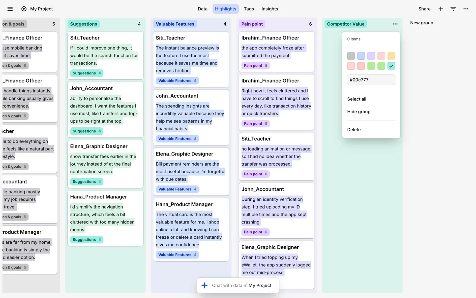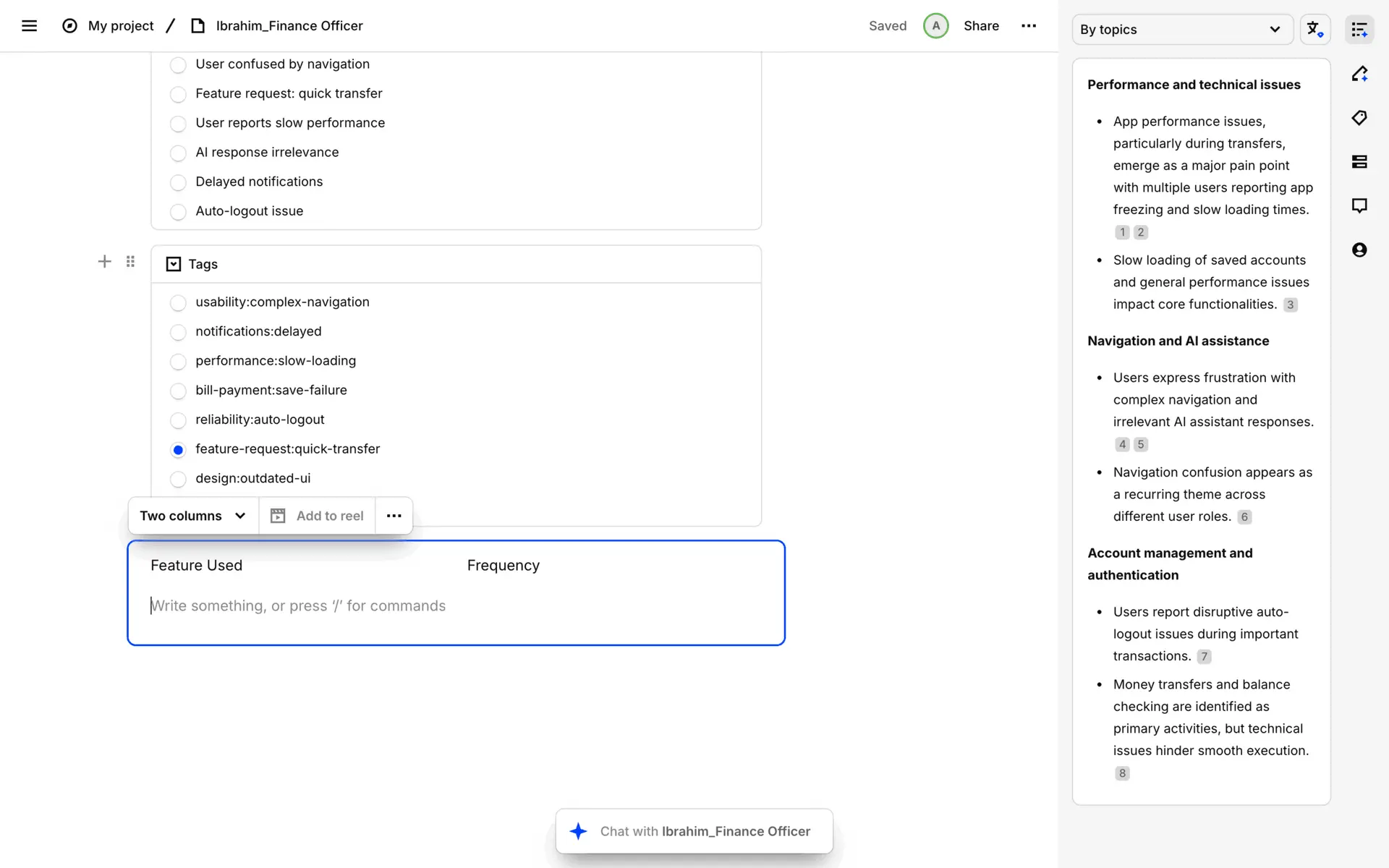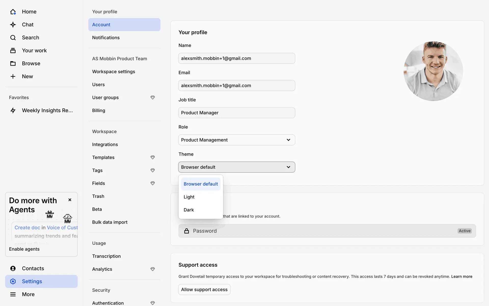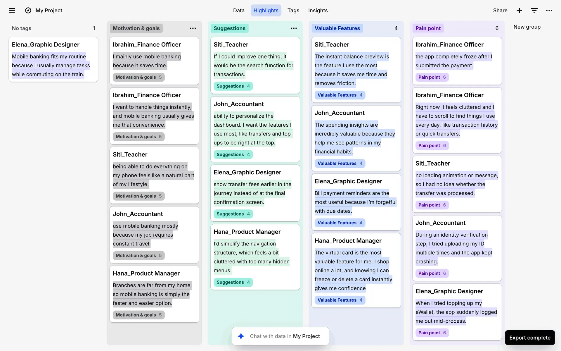 Dovetail — платформа для управления исследованиями пользователей и качественными данными. Помогает командам собирать, анализировать и делиться инсайтами из интервью, опросов и заметок.