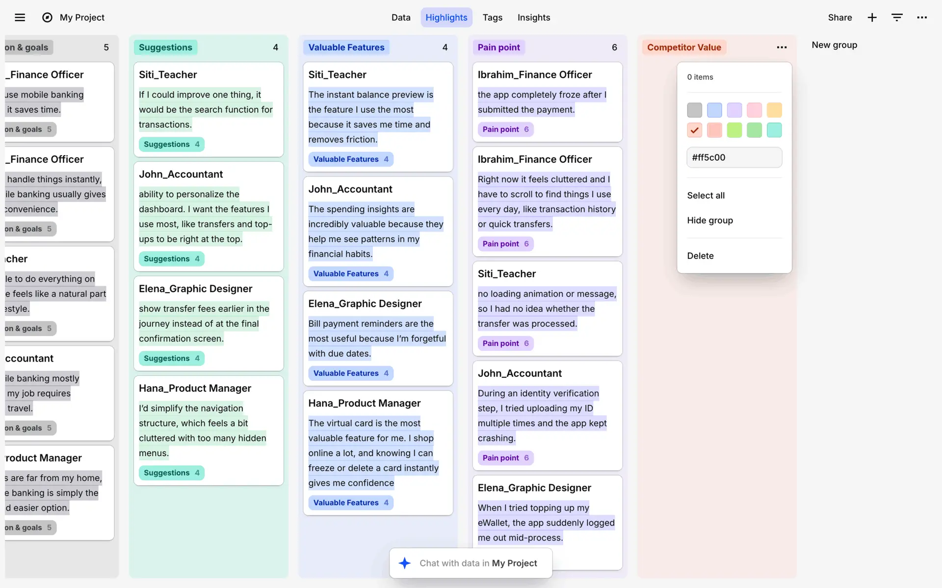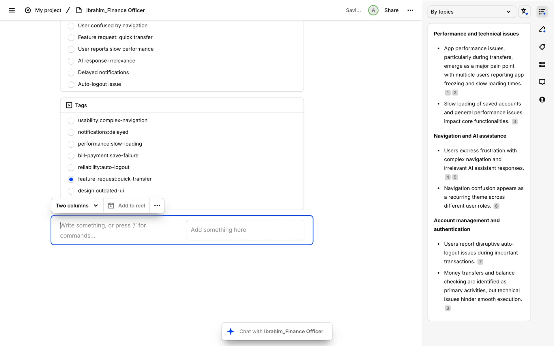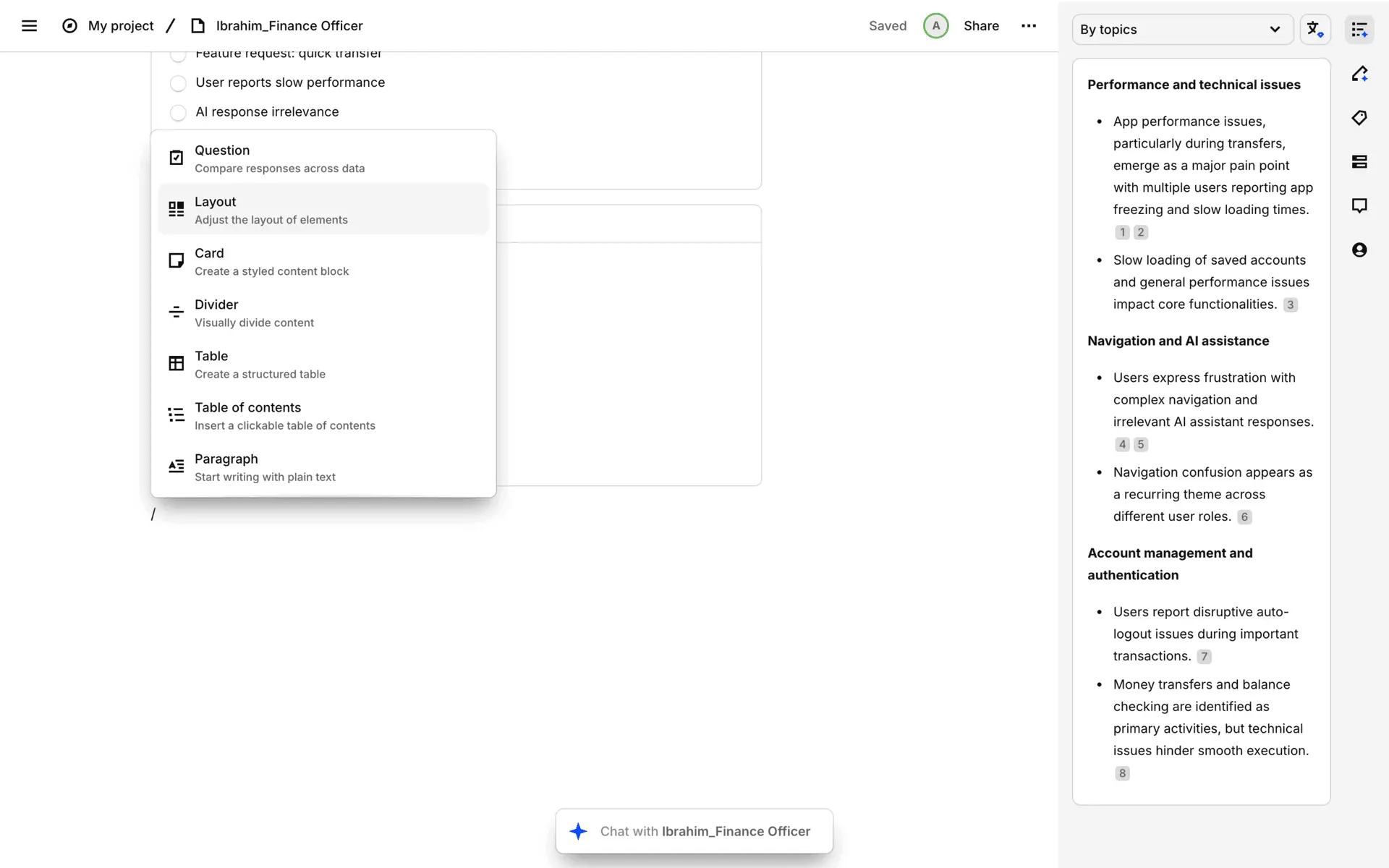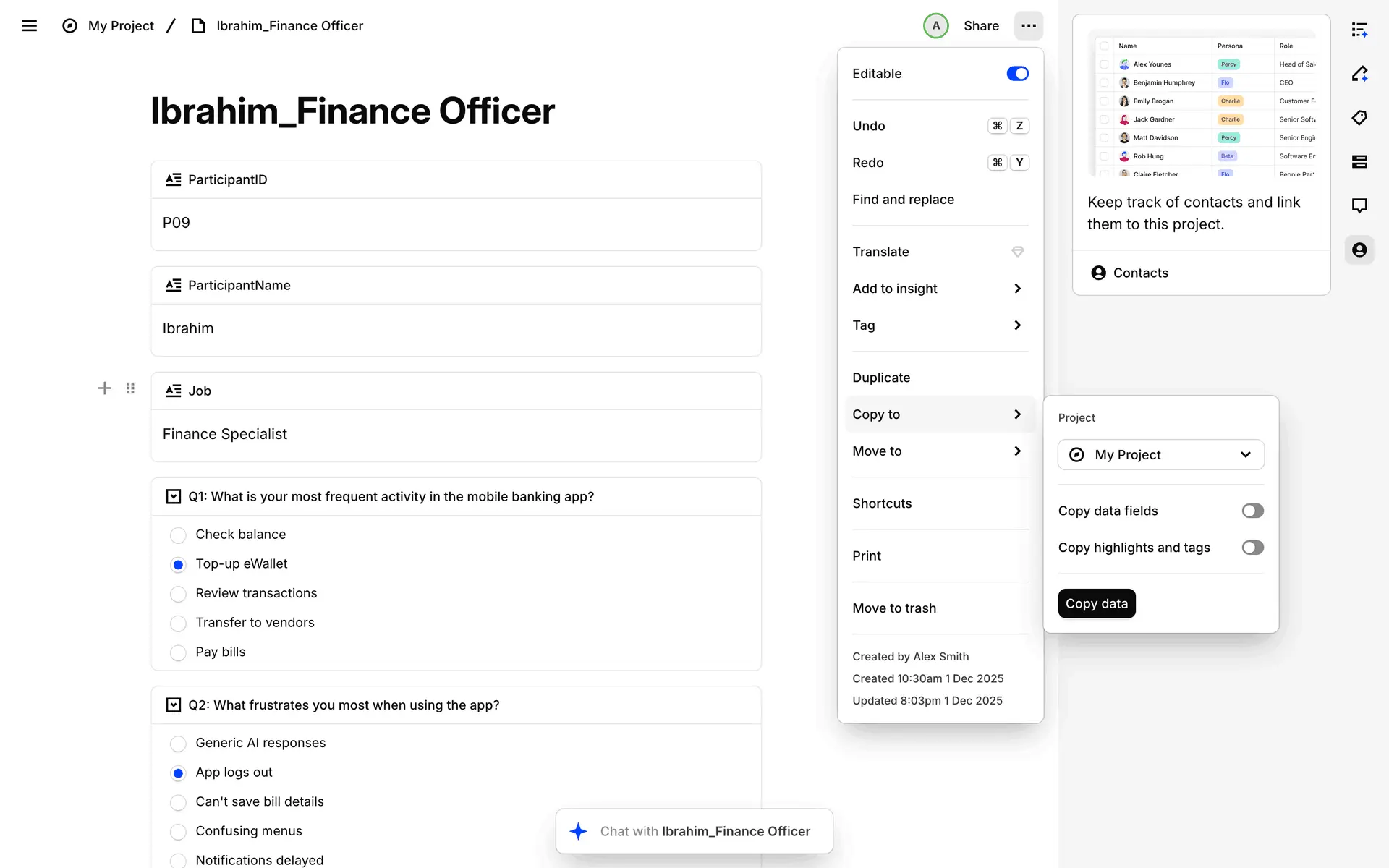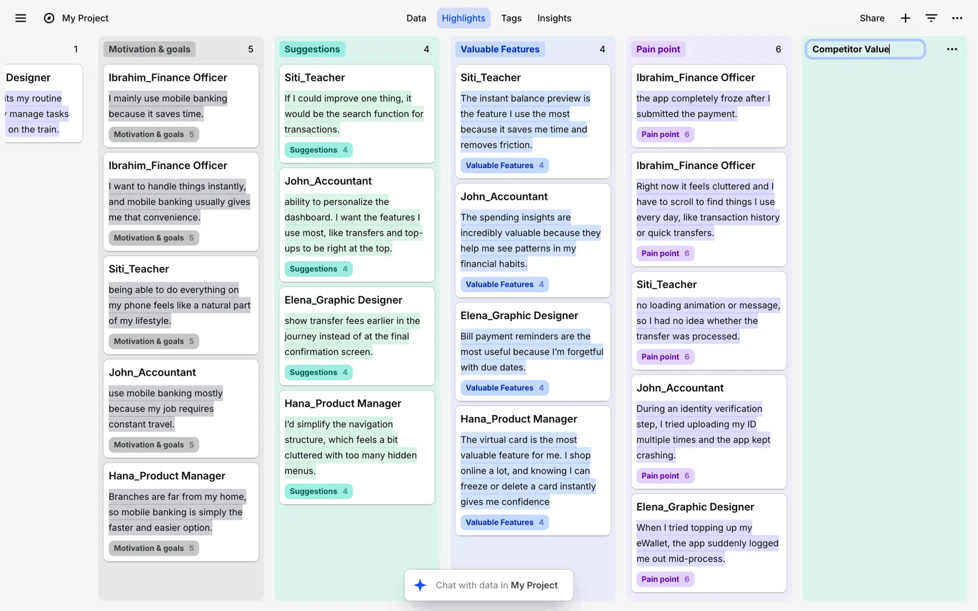 Dovetail — платформа для управления исследованиями пользователей и качественными данными. Помогает командам собирать, анализировать и делиться инсайтами из интервью, опросов и заметок.