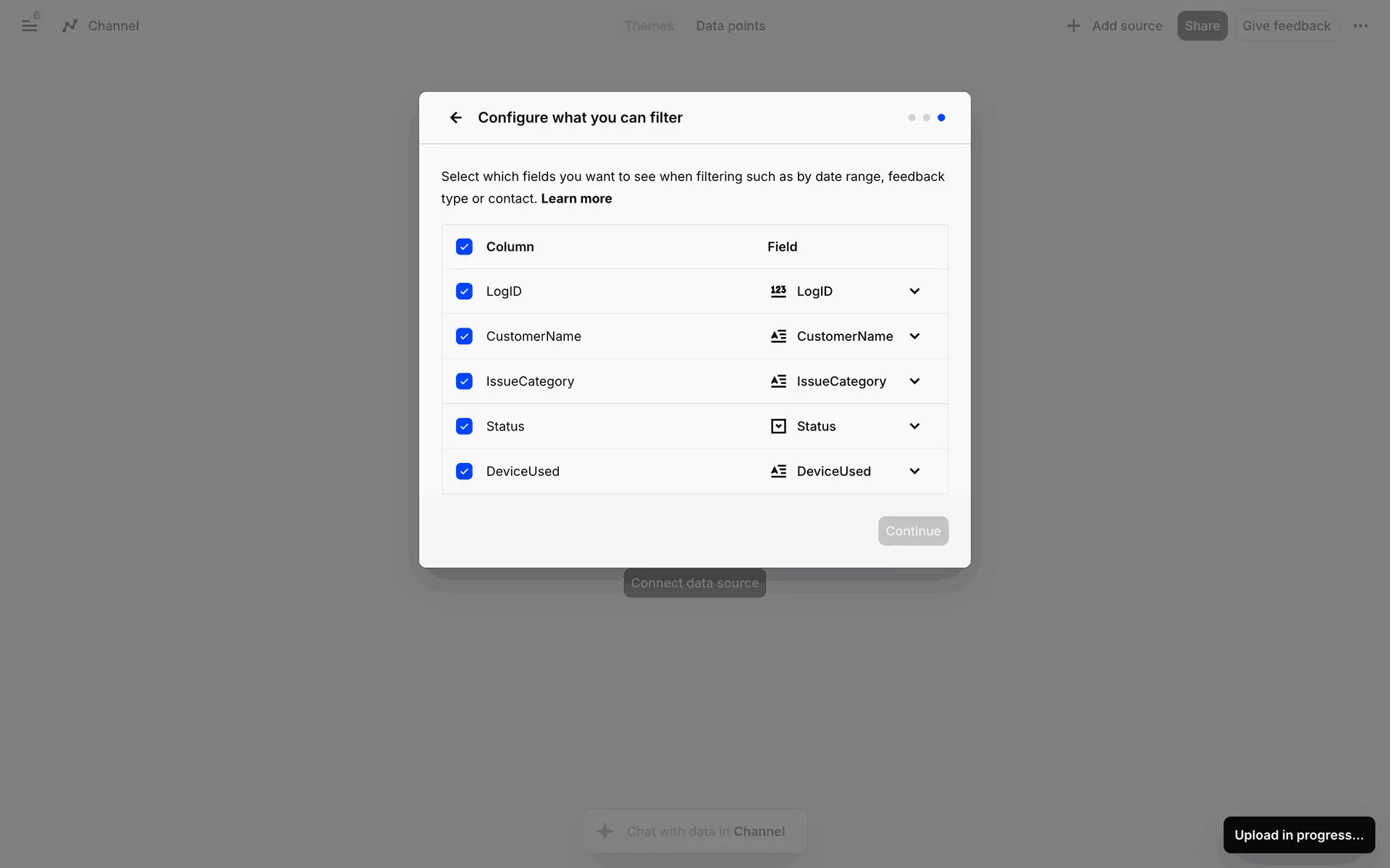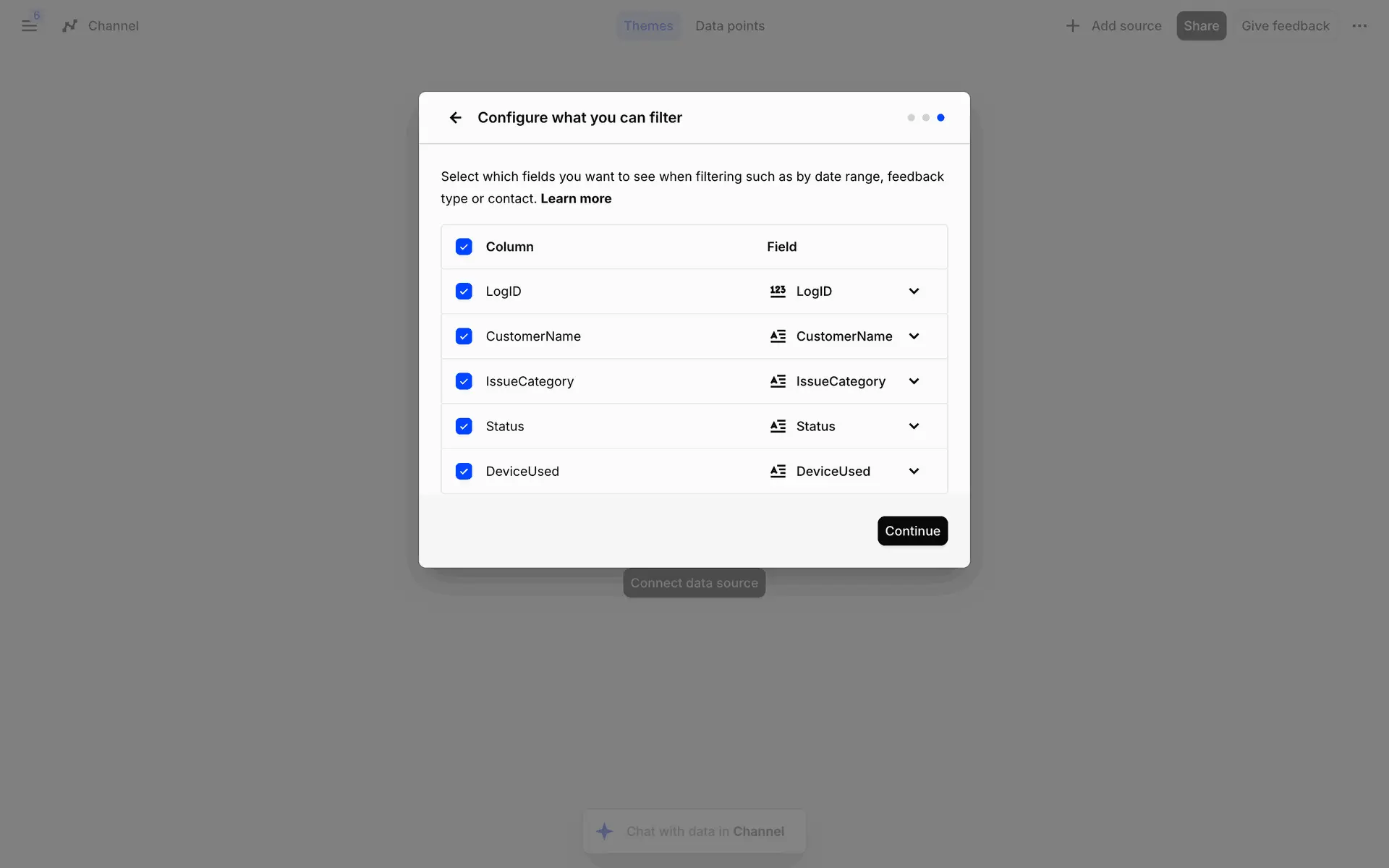 dashboard sidebar table analytics settings modal