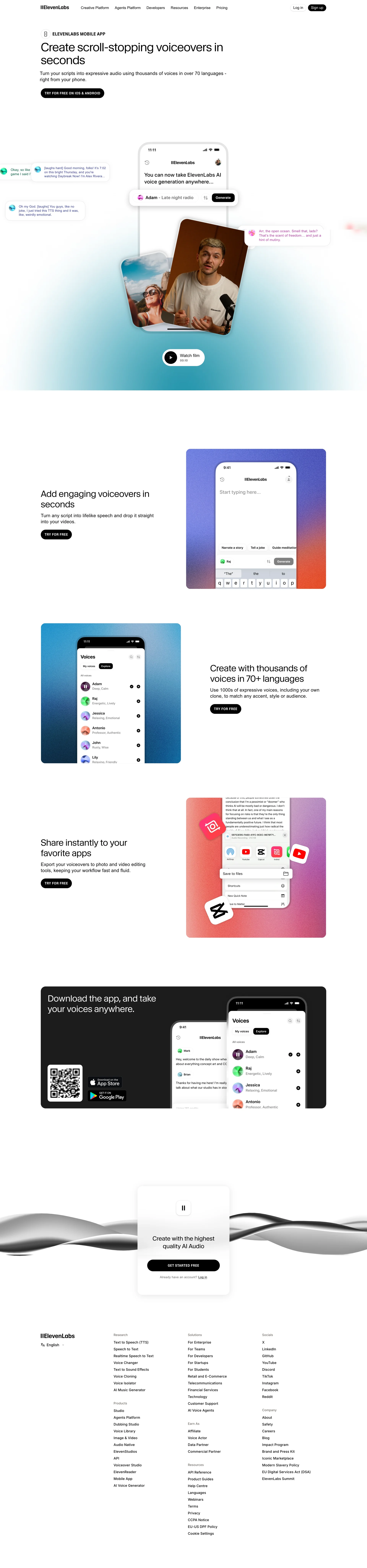 ElevenLabs Free AI voice generator elevenlabs.io ↗ AI/ML Веб-сайт 10 скриншотов landingdashboardformsettingsnavbarsidebar EEEEEE 313232 8E5E3E