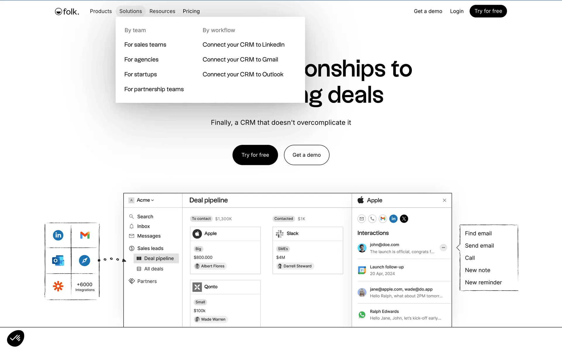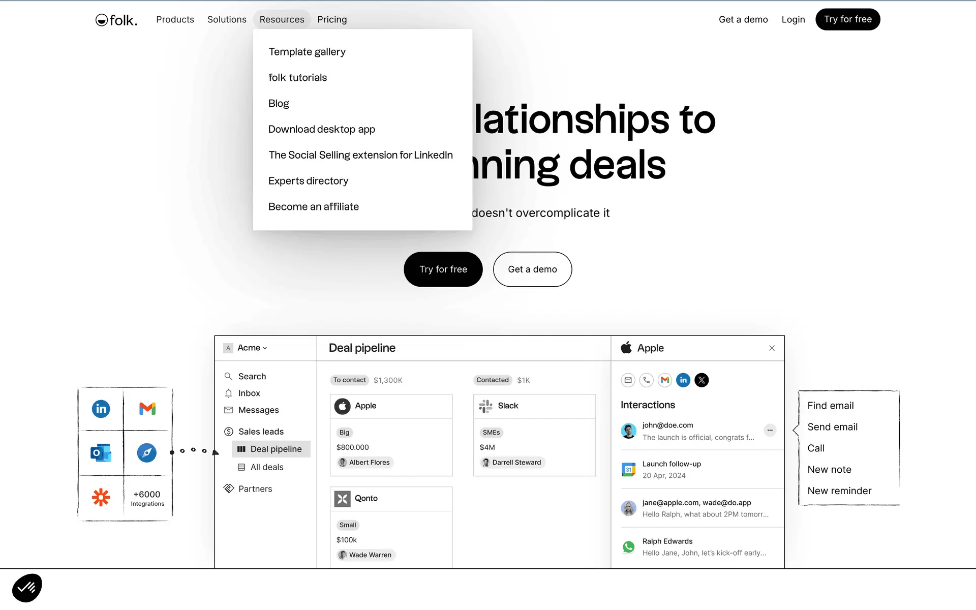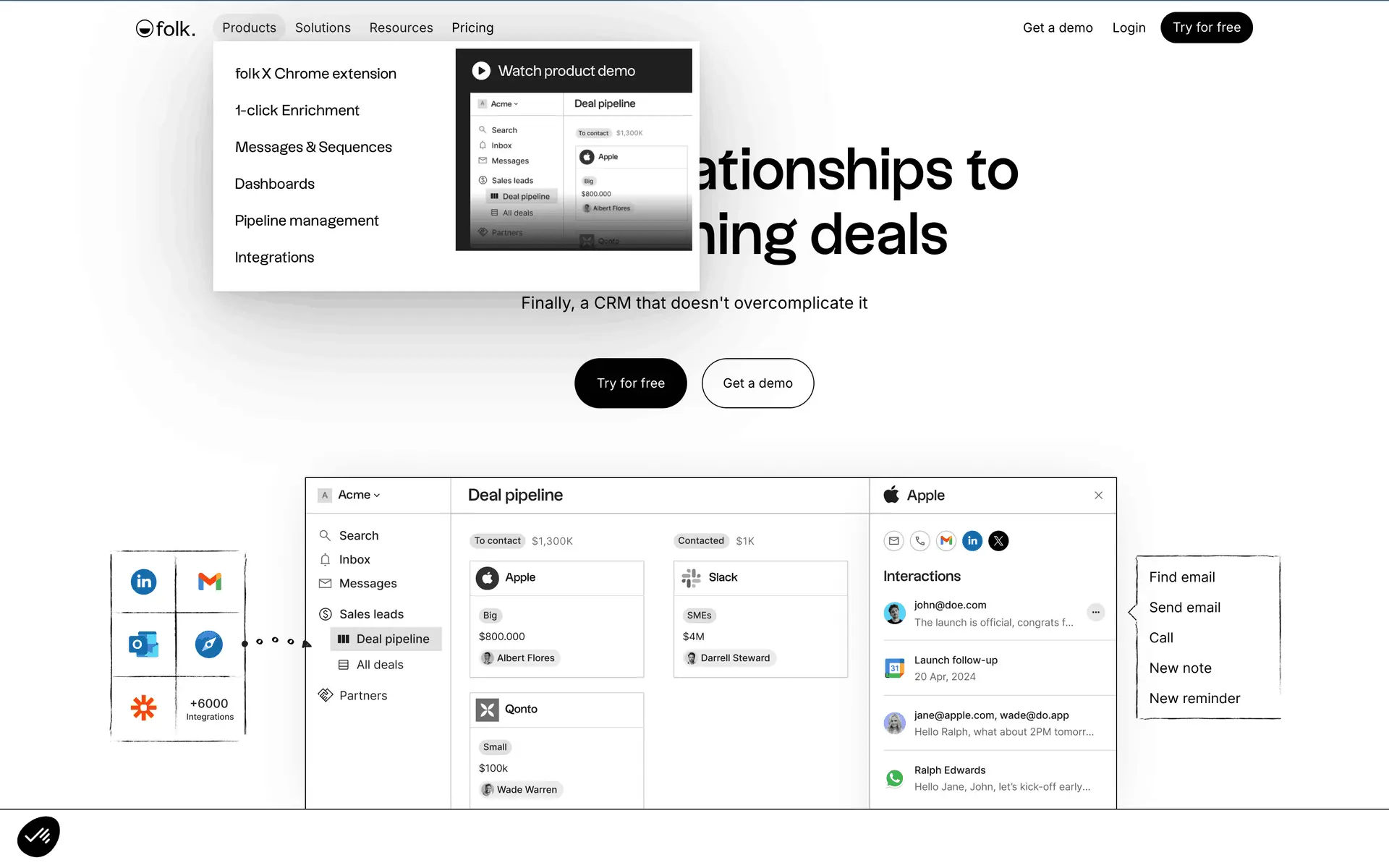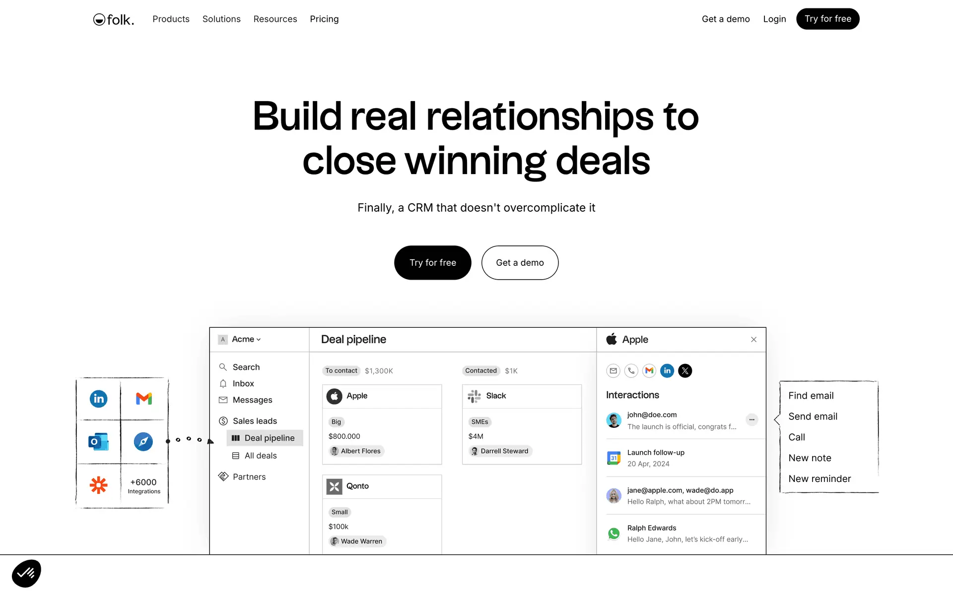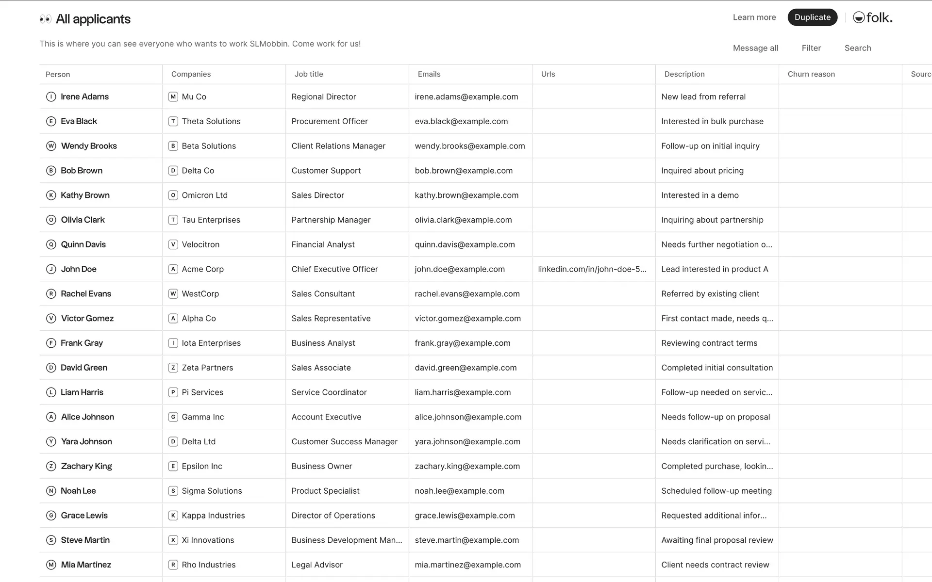 folk — современная CRM нового поколения, созданная для управления отношениями: продажами, партнёрствами, рекрутингом и нетворкингом. Сочетает простоту таблицы с мощью CRM.