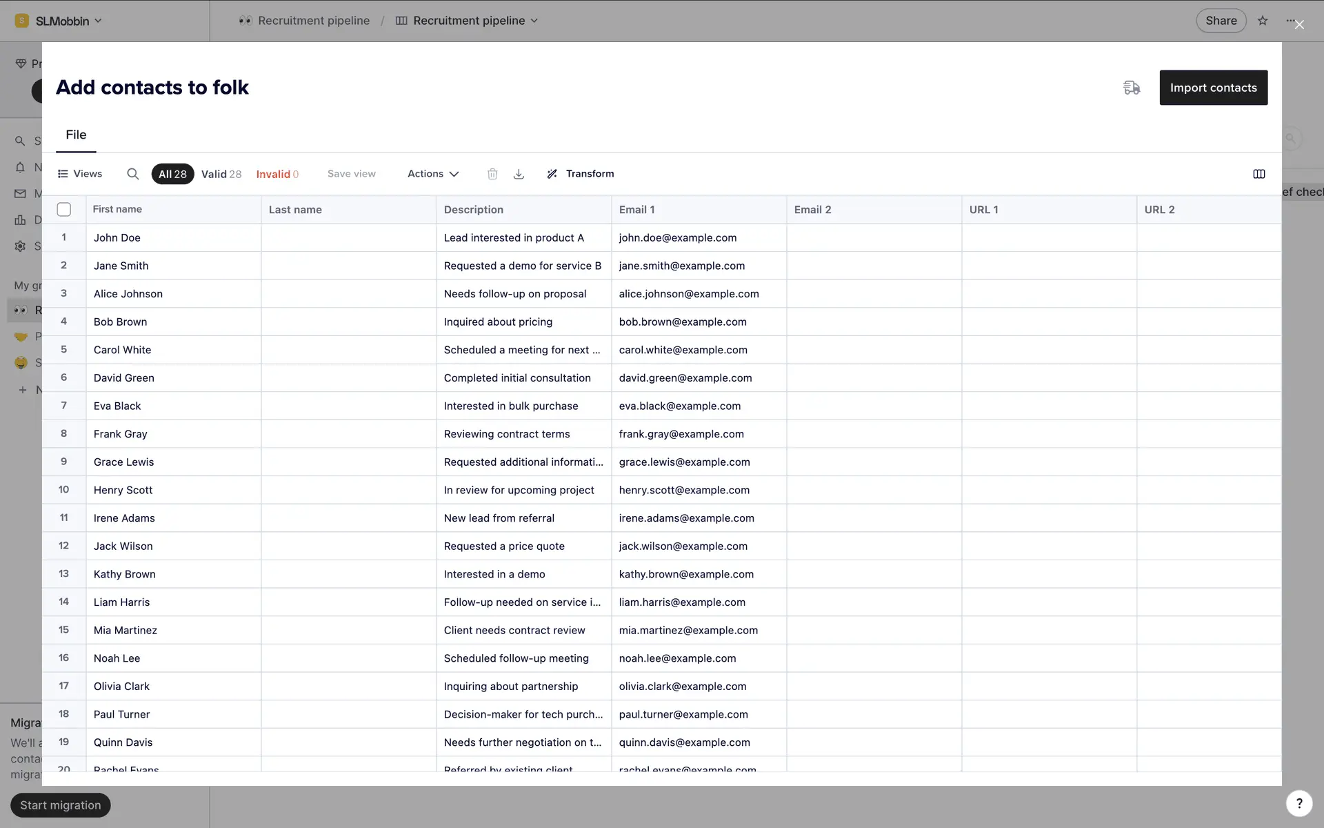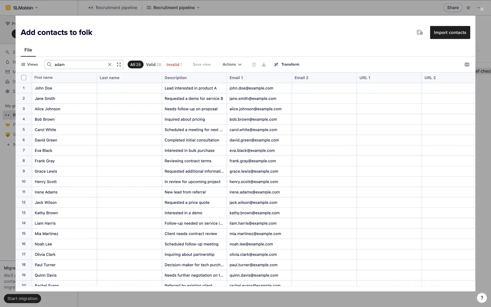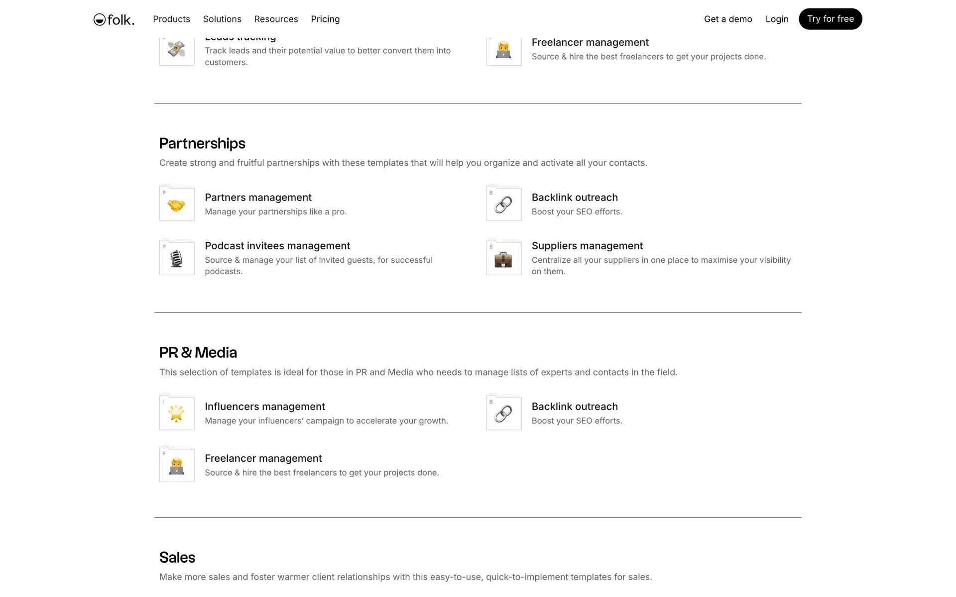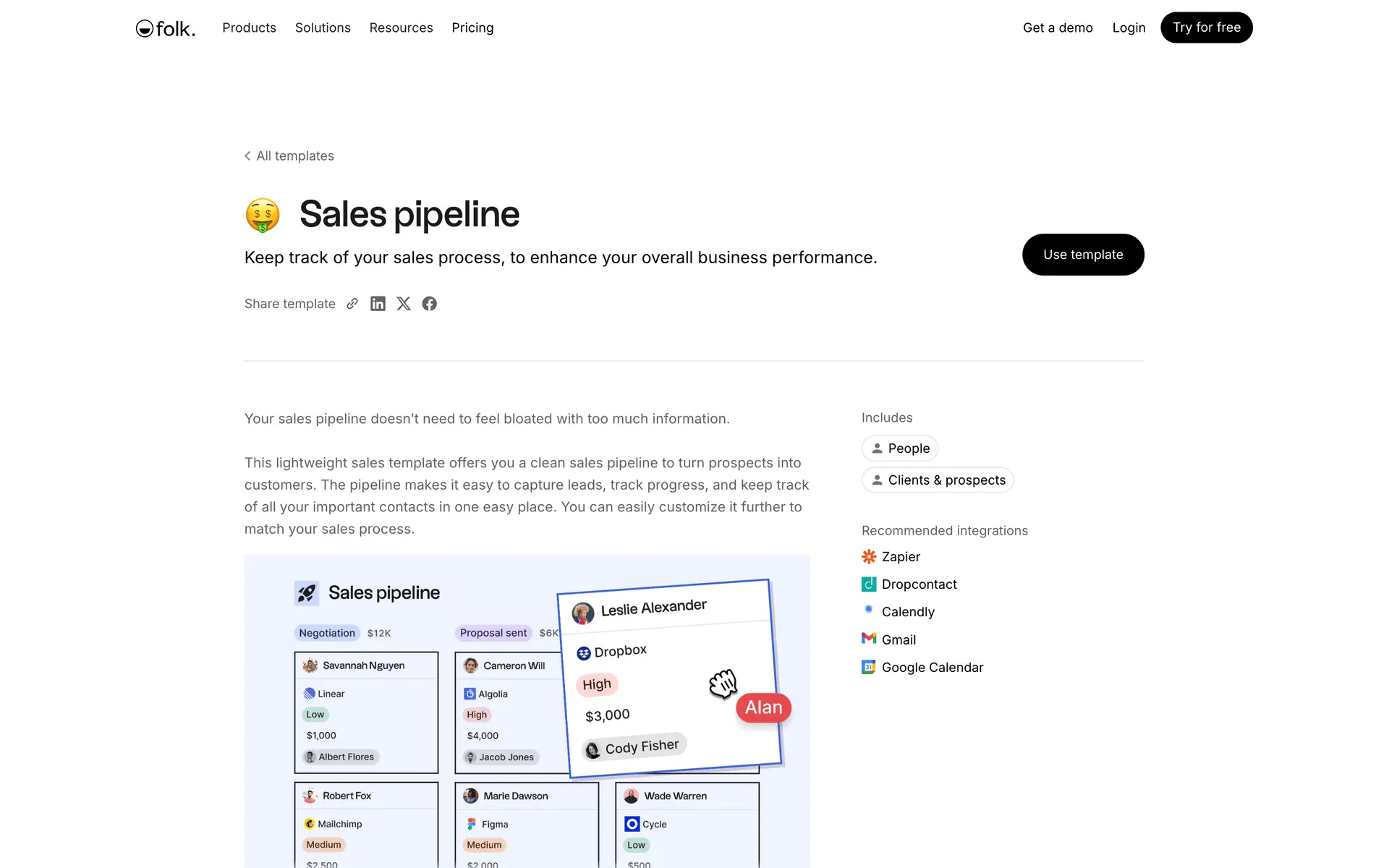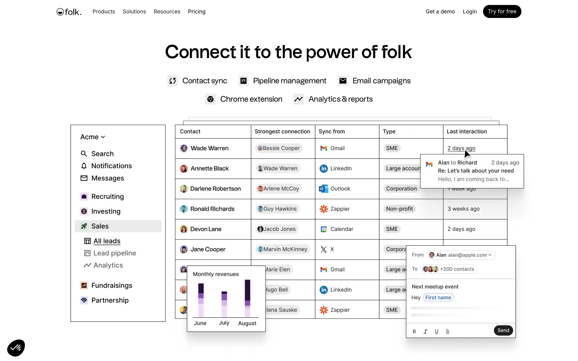folk — современная CRM нового поколения, созданная для управления отношениями: продажами, партнёрствами, рекрутингом и нетворкингом. Сочетает простоту таблицы с мощью CRM.