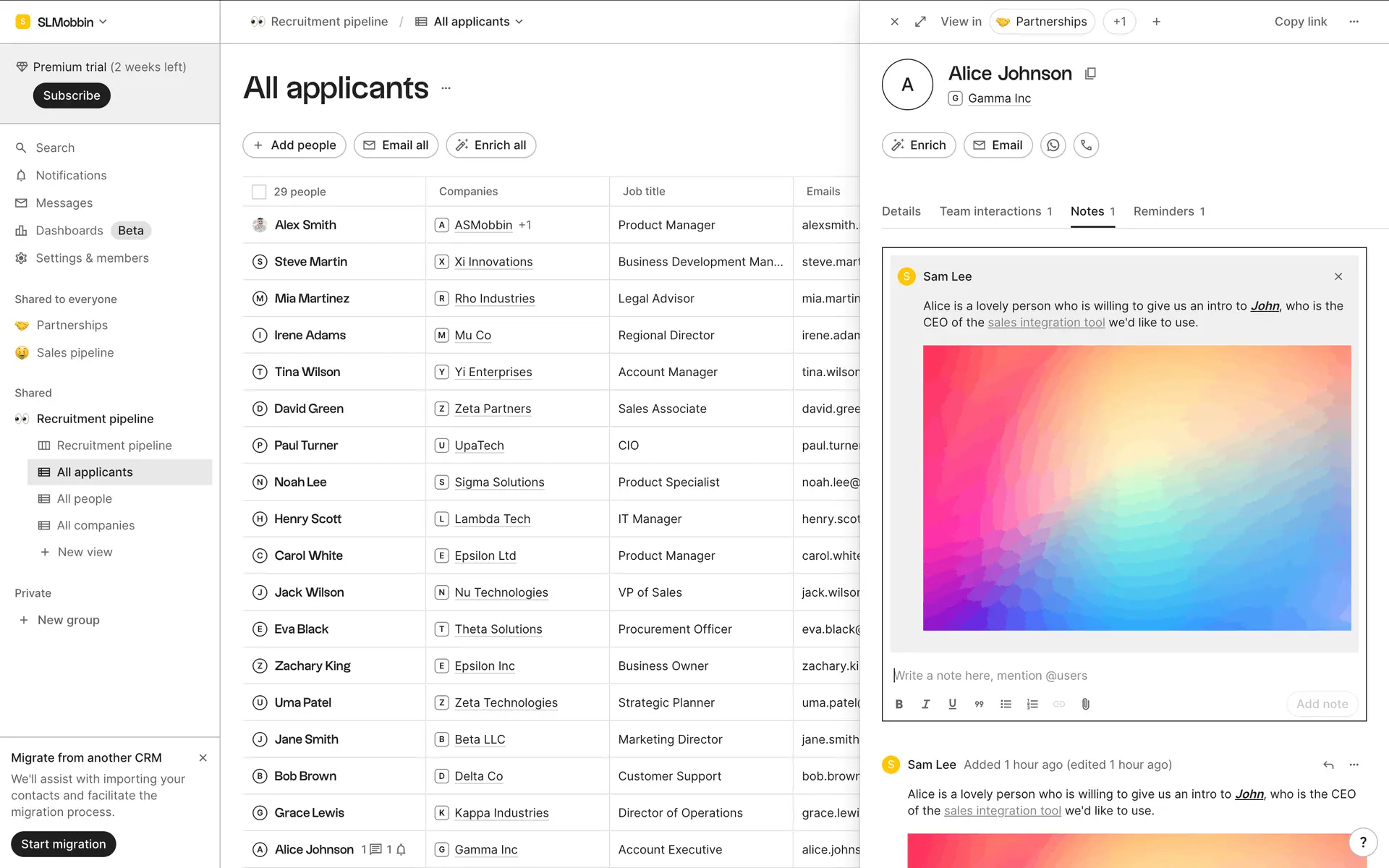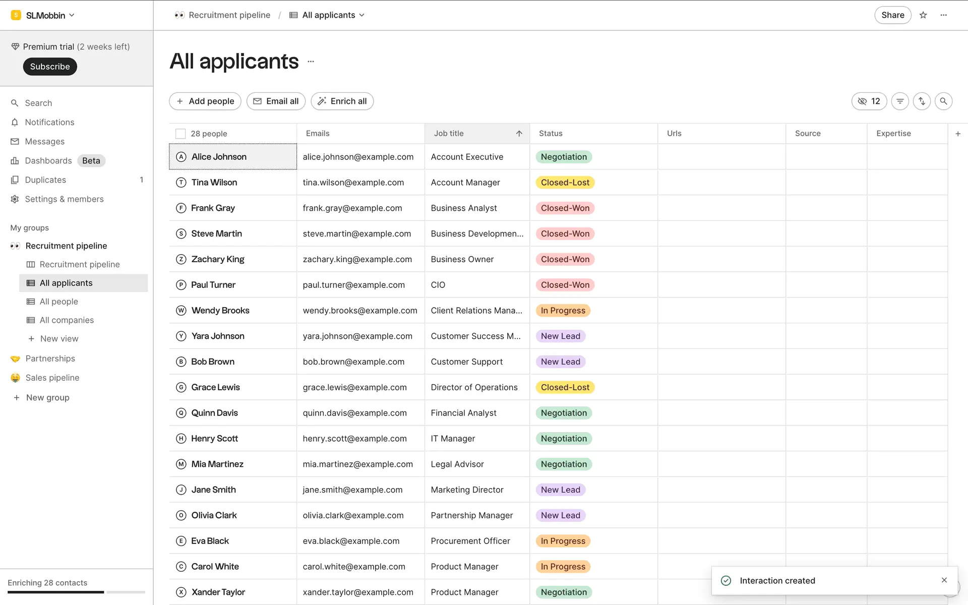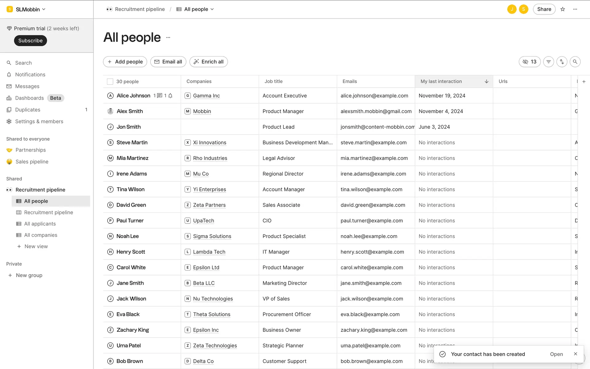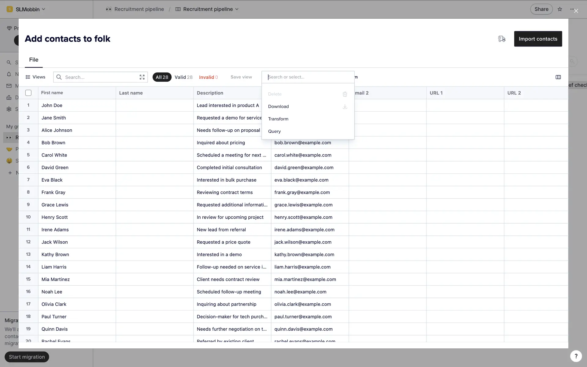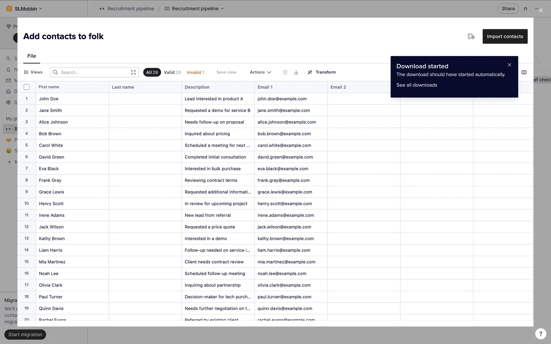 folk — современная CRM нового поколения, созданная для управления отношениями: продажами, партнёрствами, рекрутингом и нетворкингом. Сочетает простоту таблицы с мощью CRM.