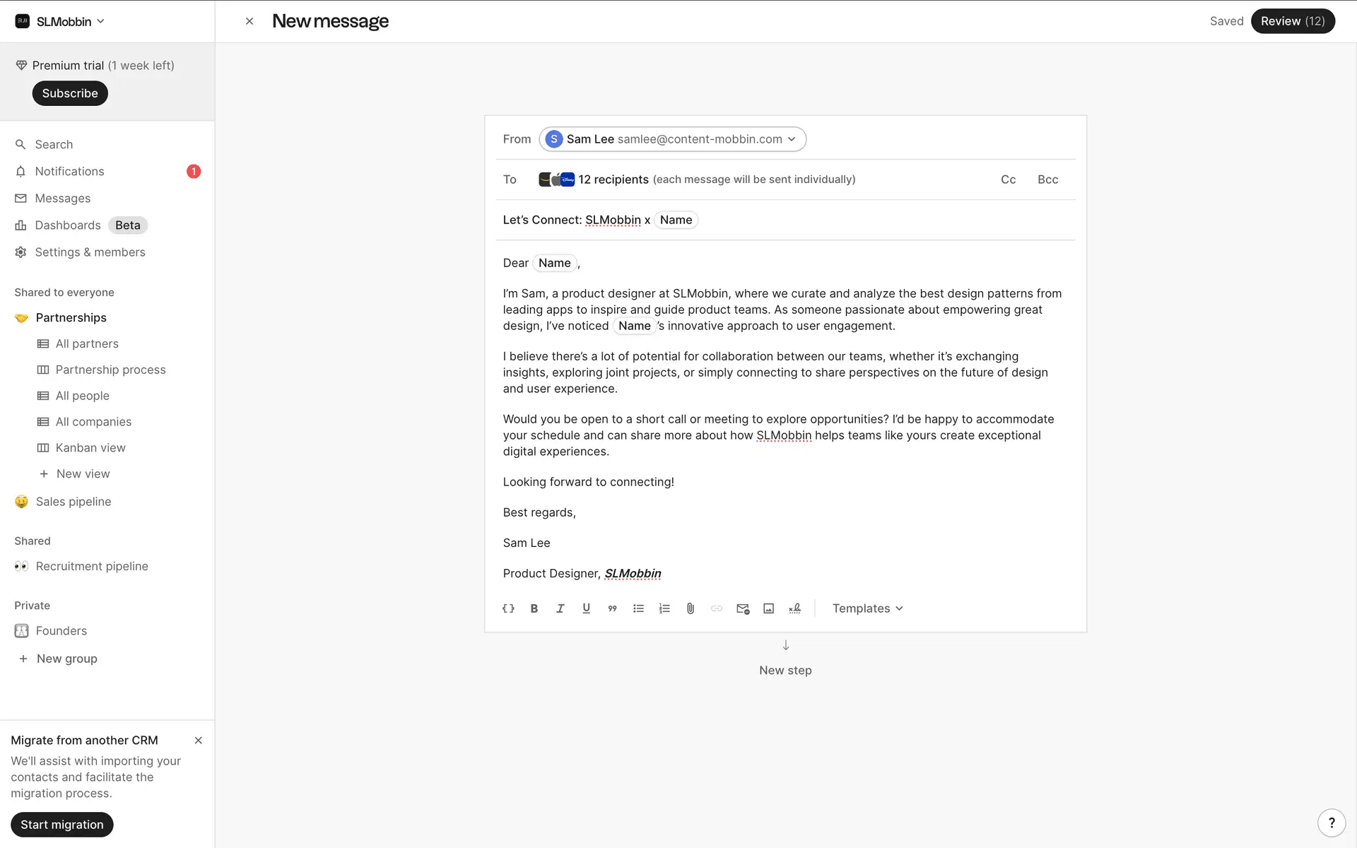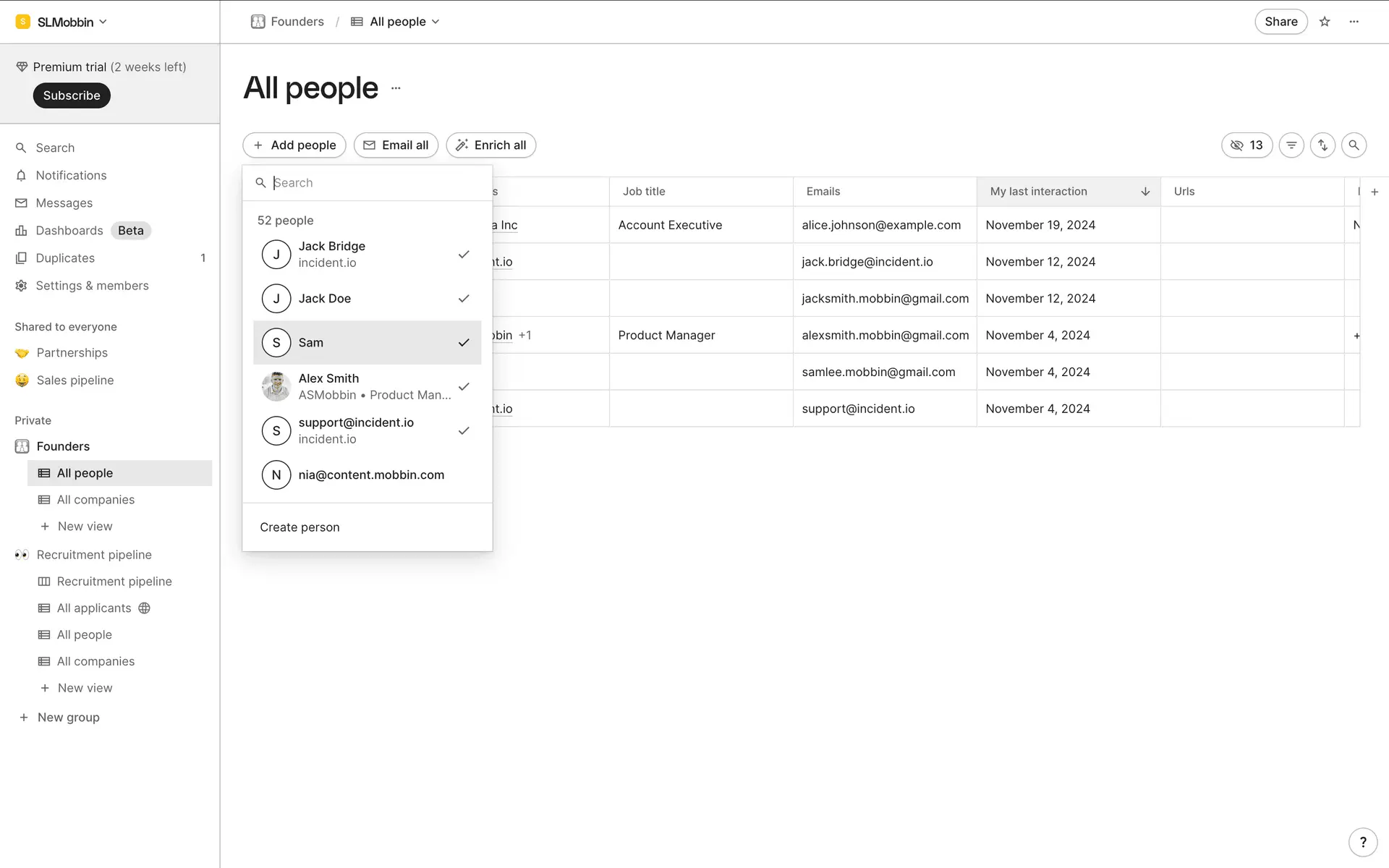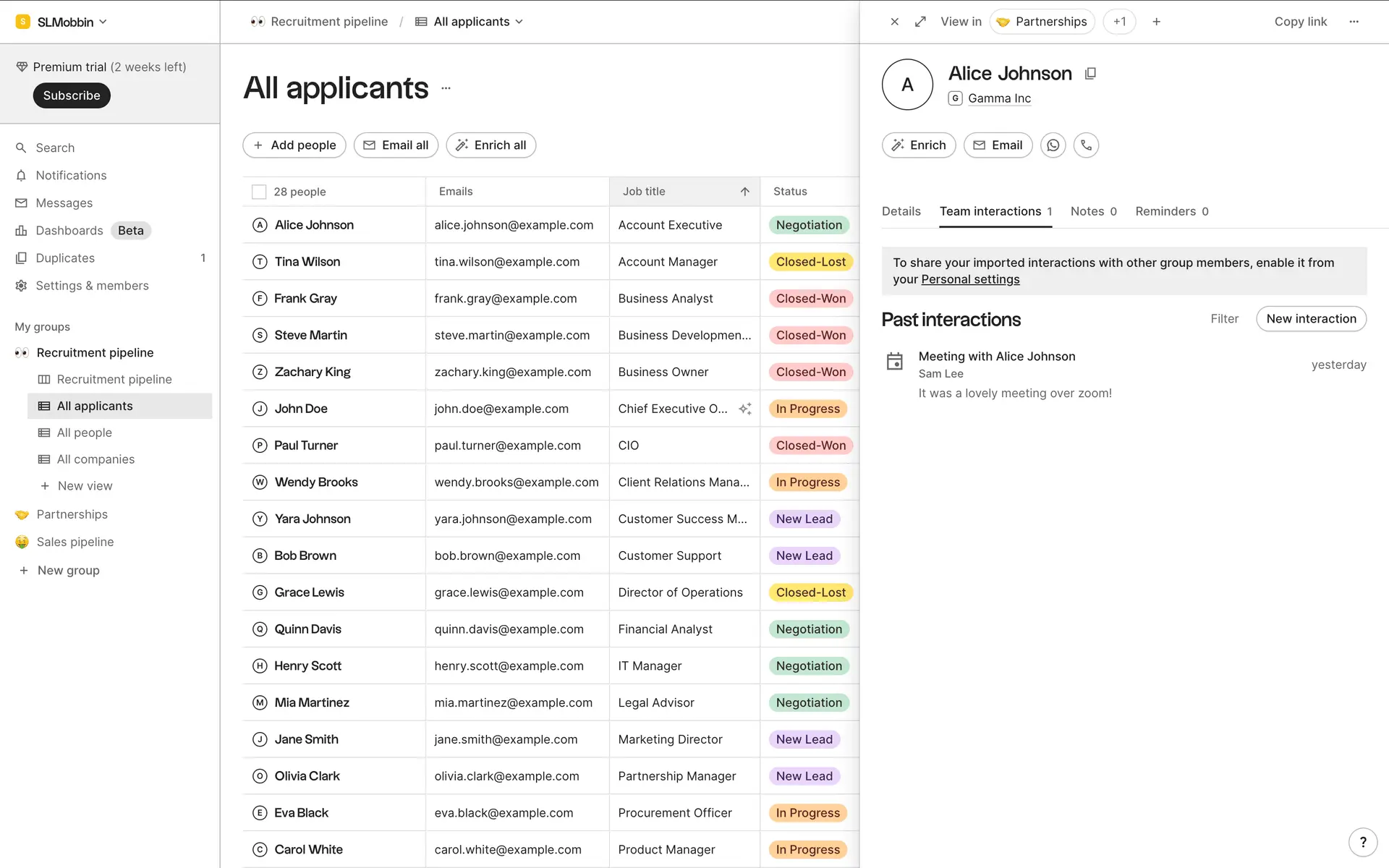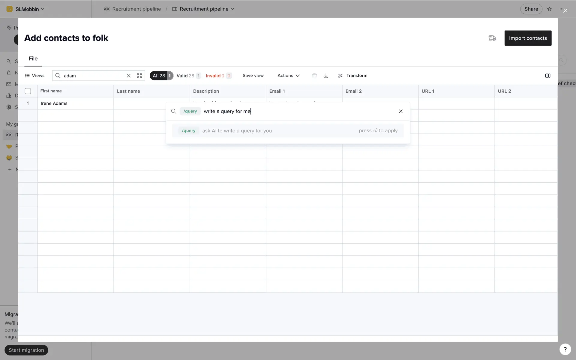 folk — современная CRM нового поколения, созданная для управления отношениями: продажами, партнёрствами, рекрутингом и нетворкингом. Сочетает простоту таблицы с мощью CRM.