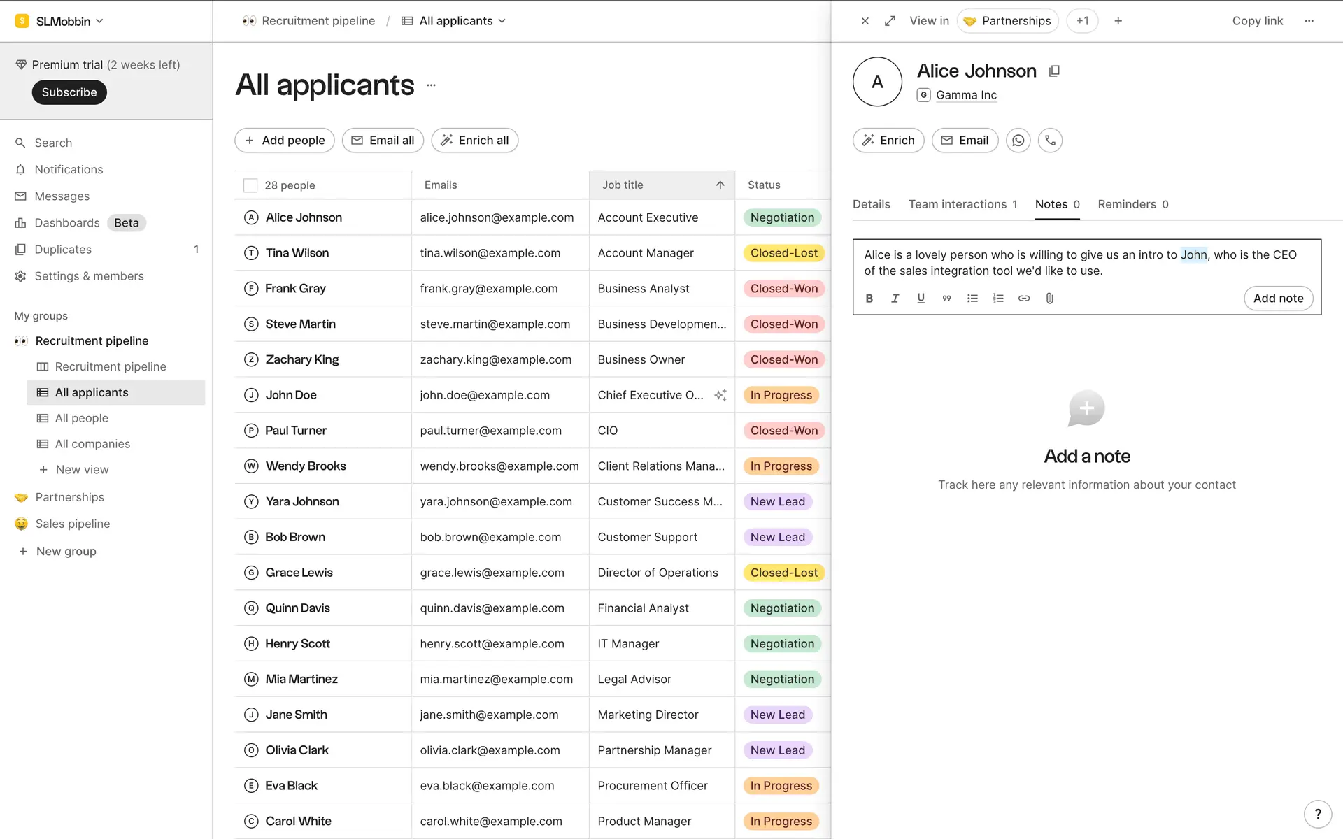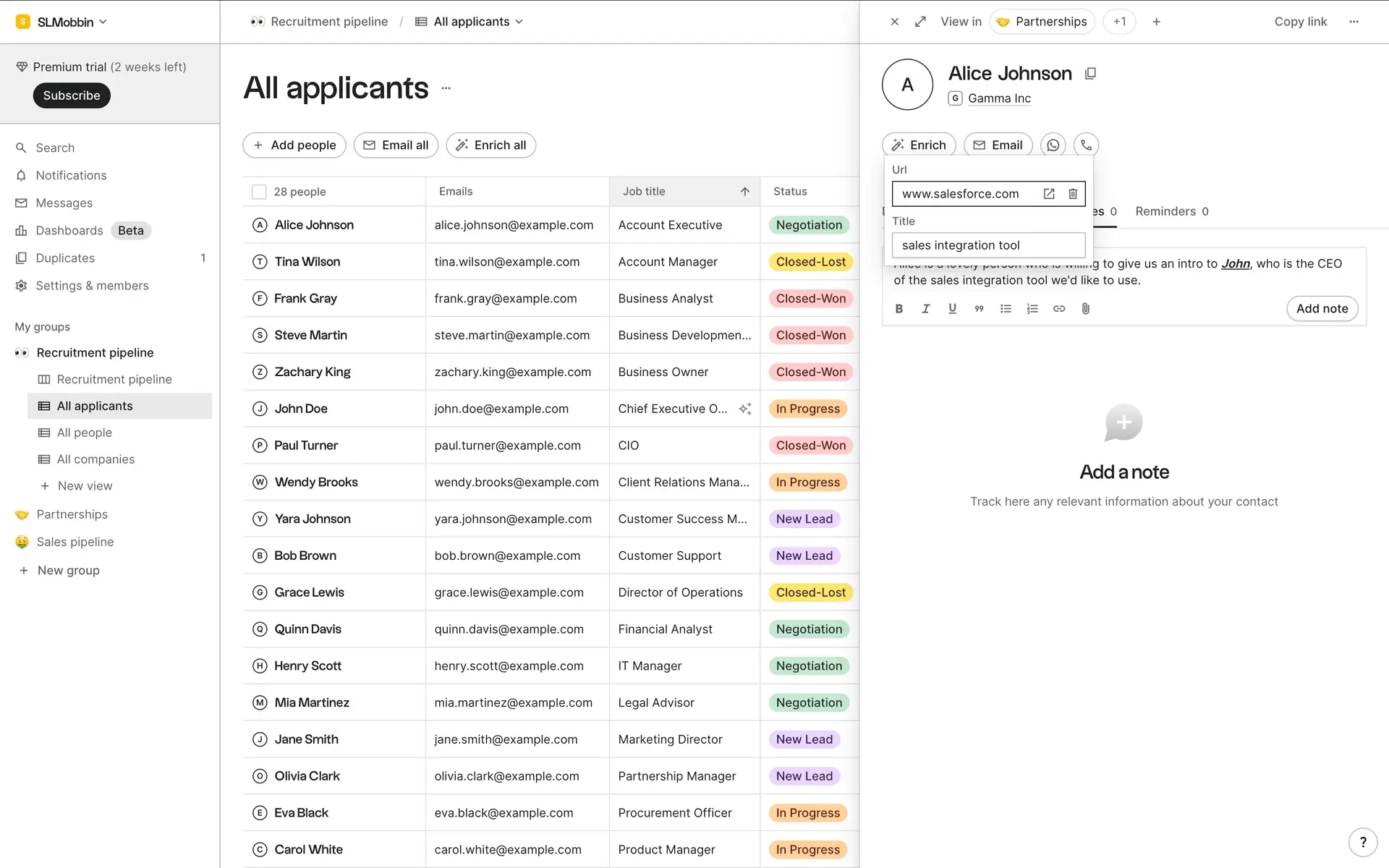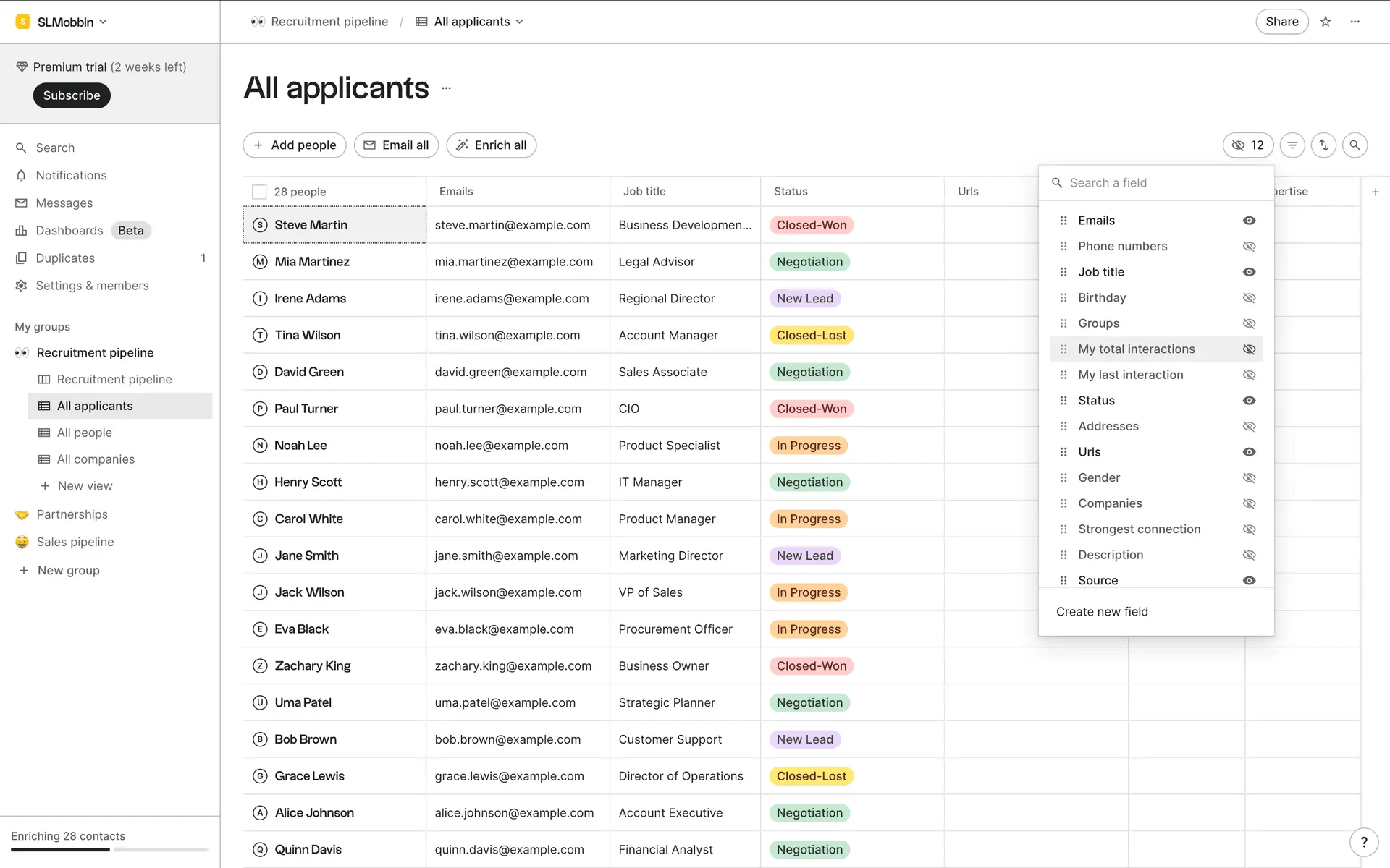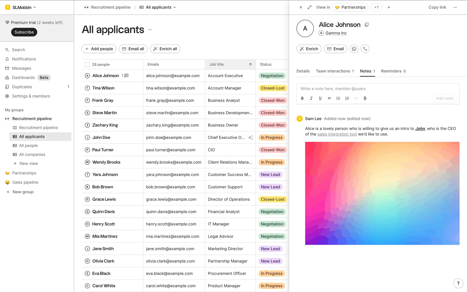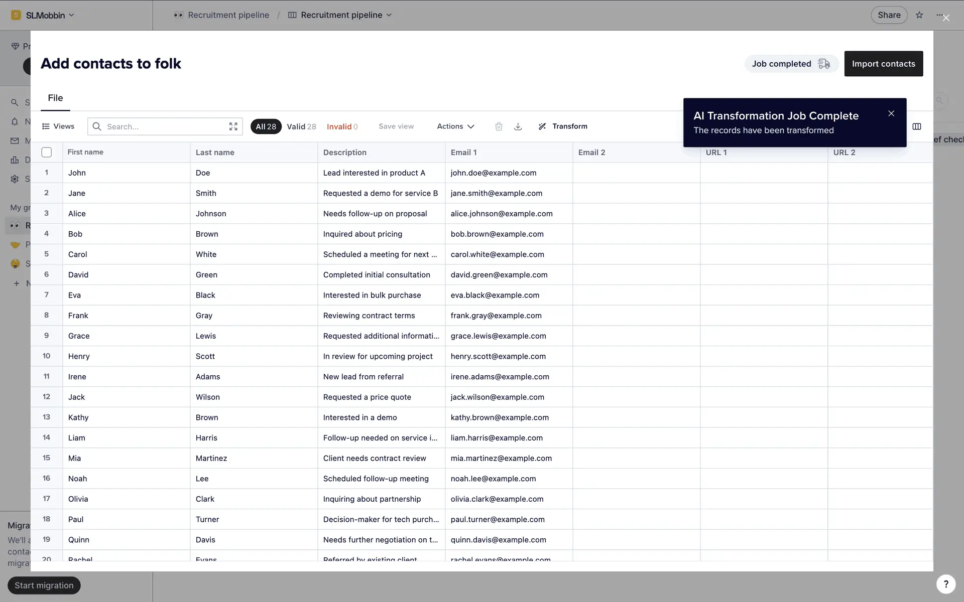 folk — современная CRM нового поколения, созданная для управления отношениями: продажами, партнёрствами, рекрутингом и нетворкингом. Сочетает простоту таблицы с мощью CRM.
