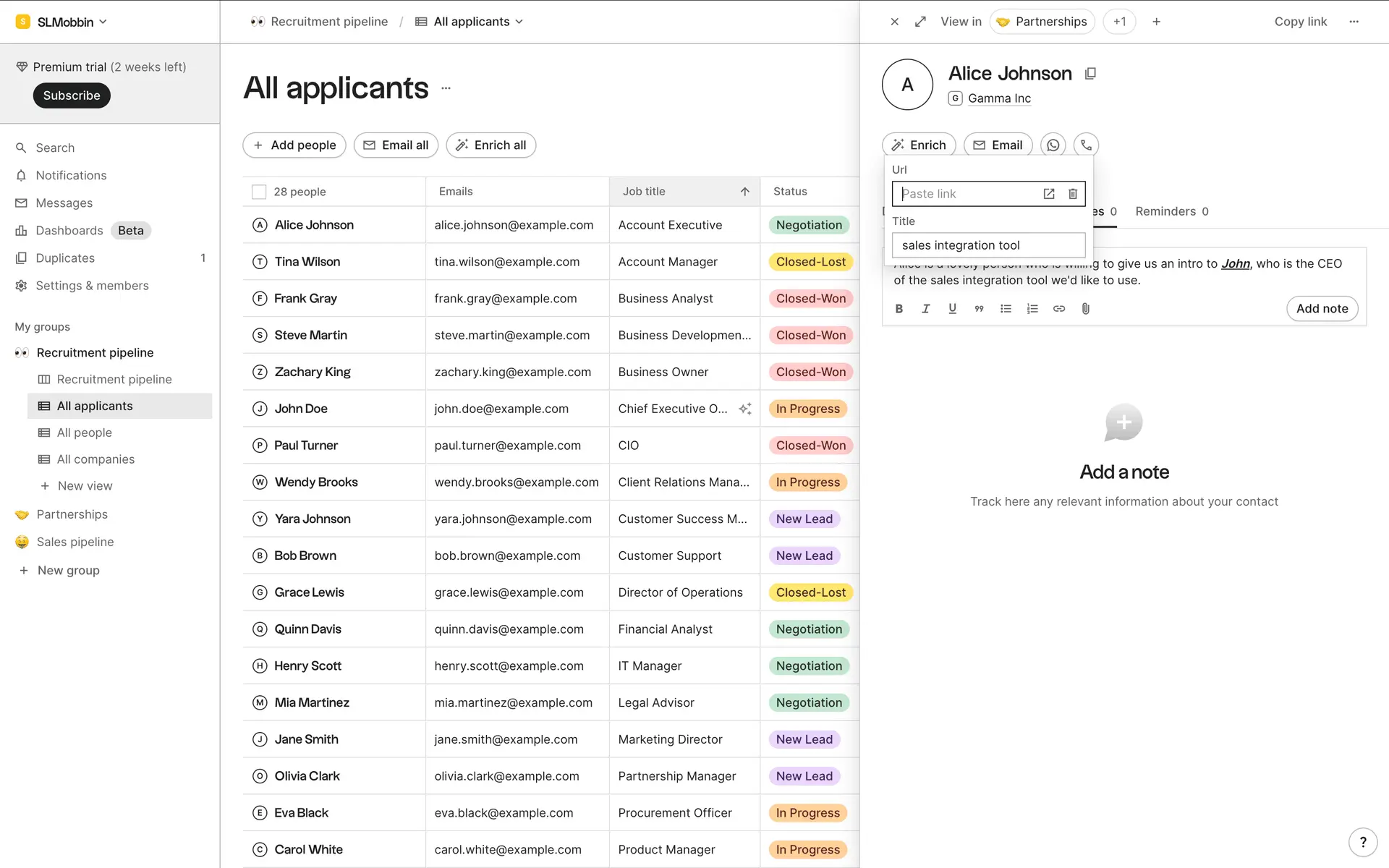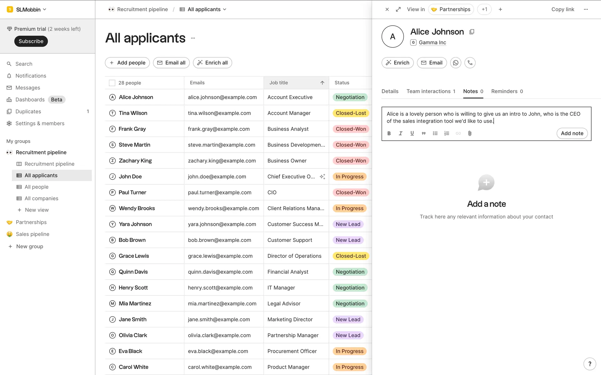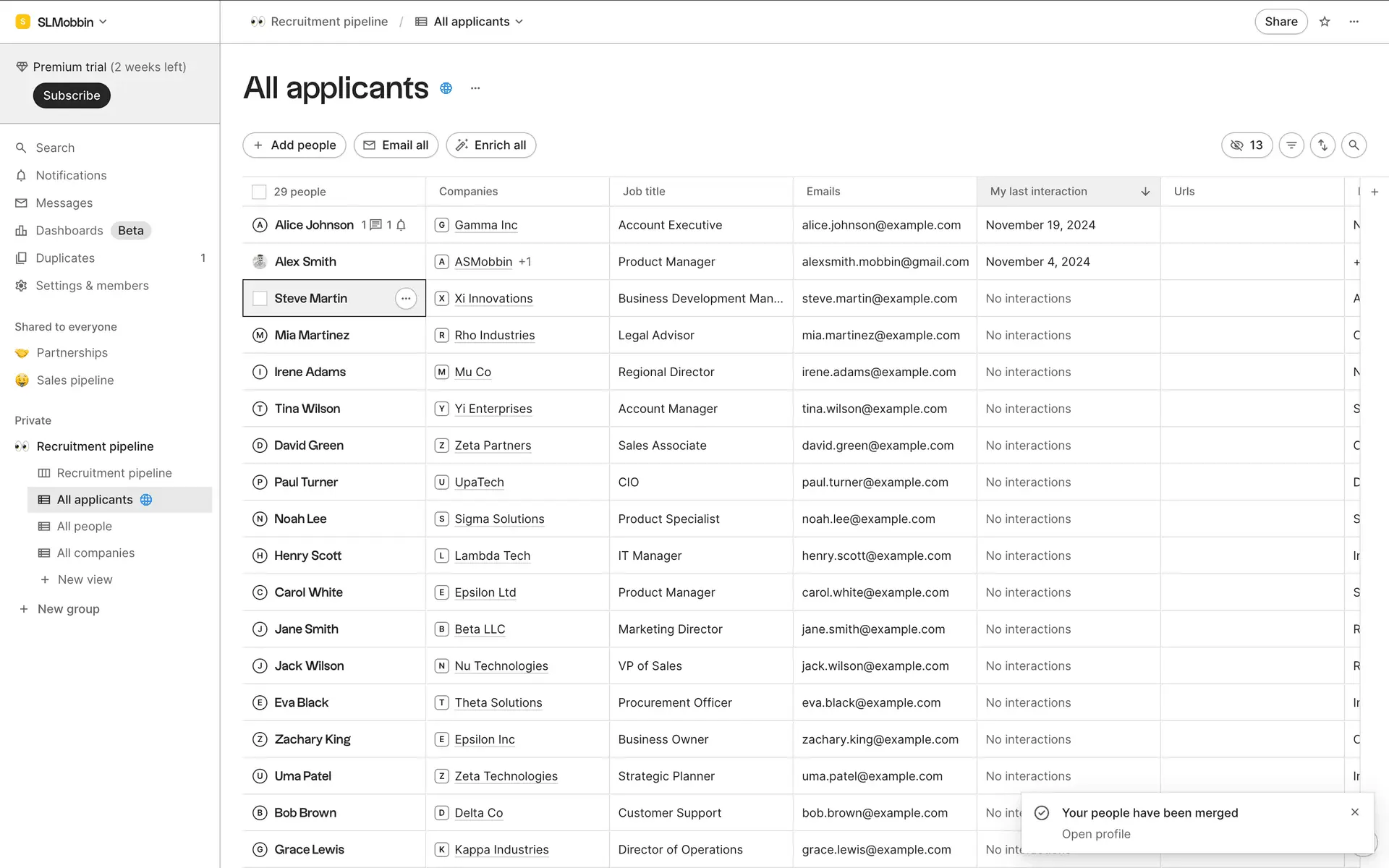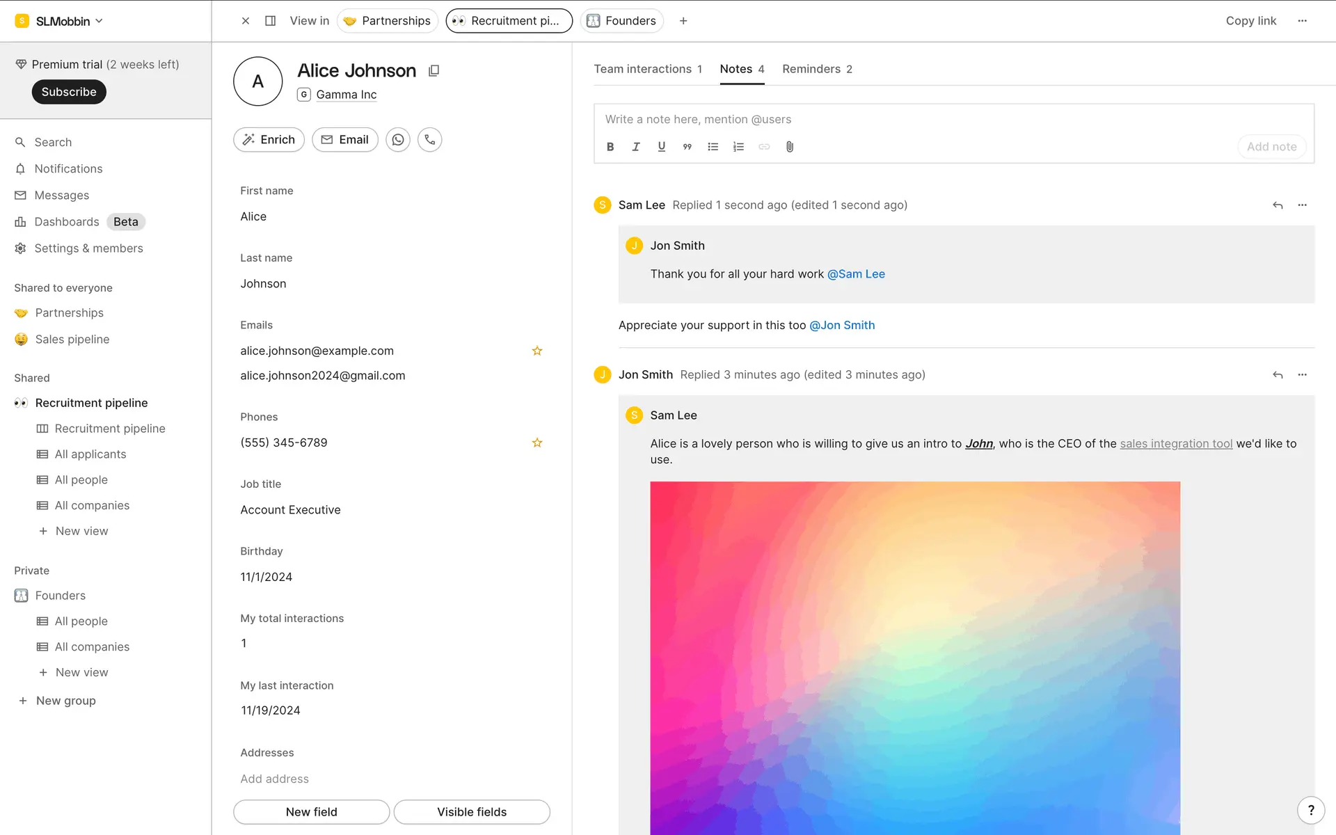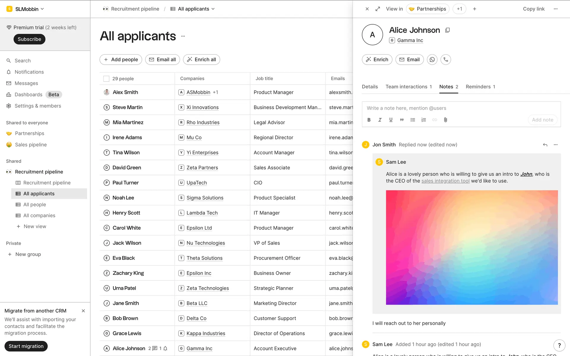 folk — современная CRM нового поколения, созданная для управления отношениями: продажами, партнёрствами, рекрутингом и нетворкингом. Сочетает простоту таблицы с мощью CRM.