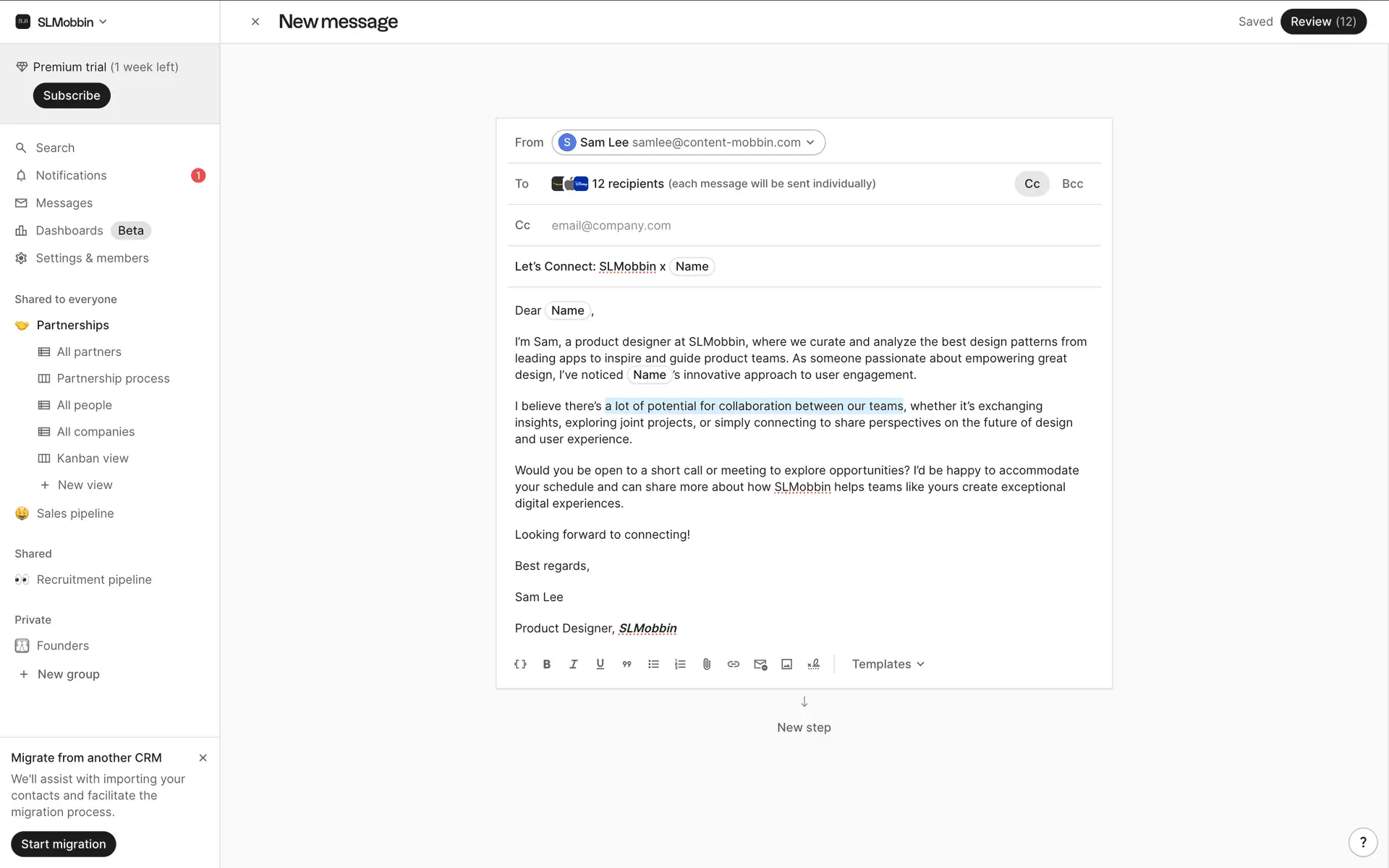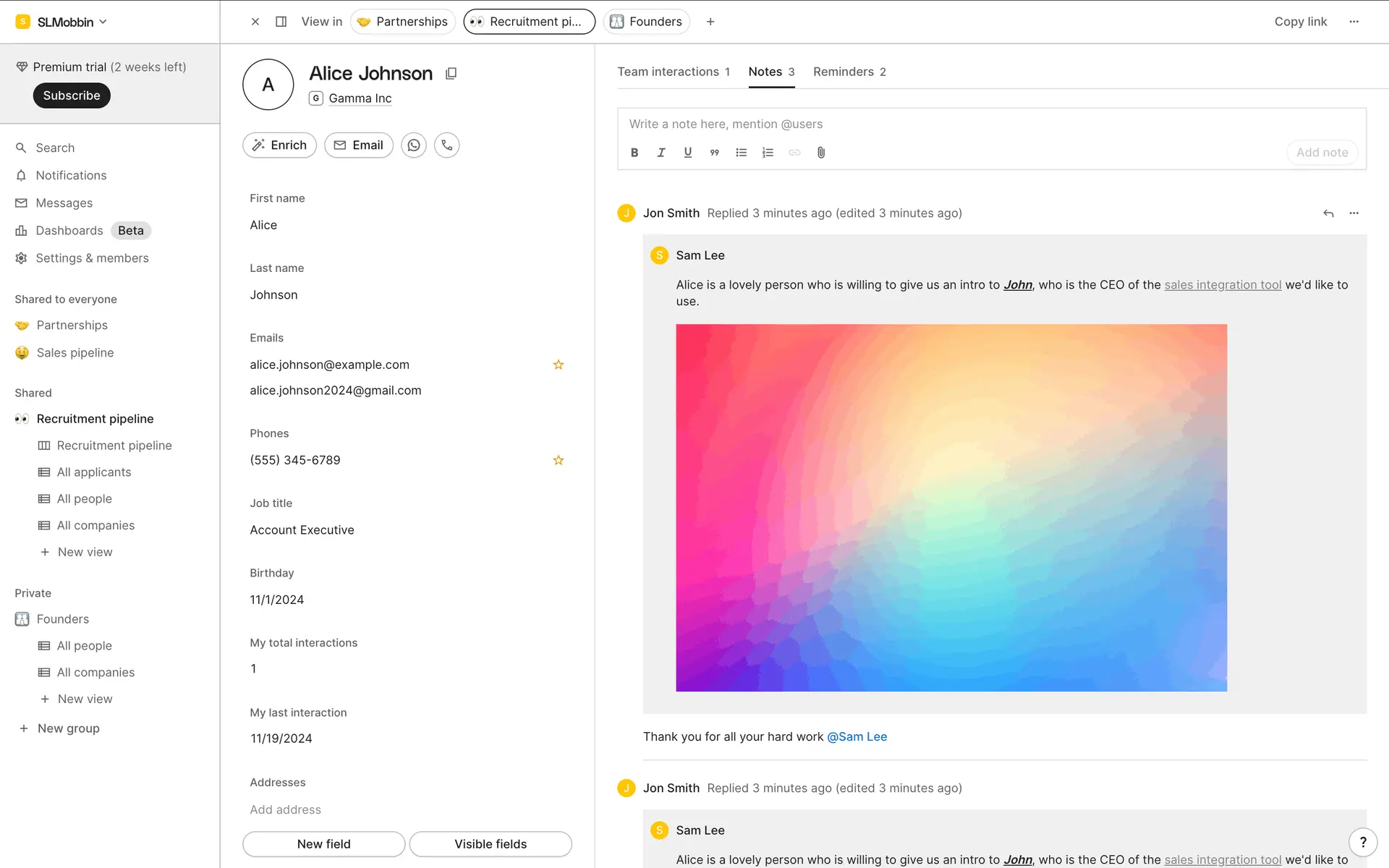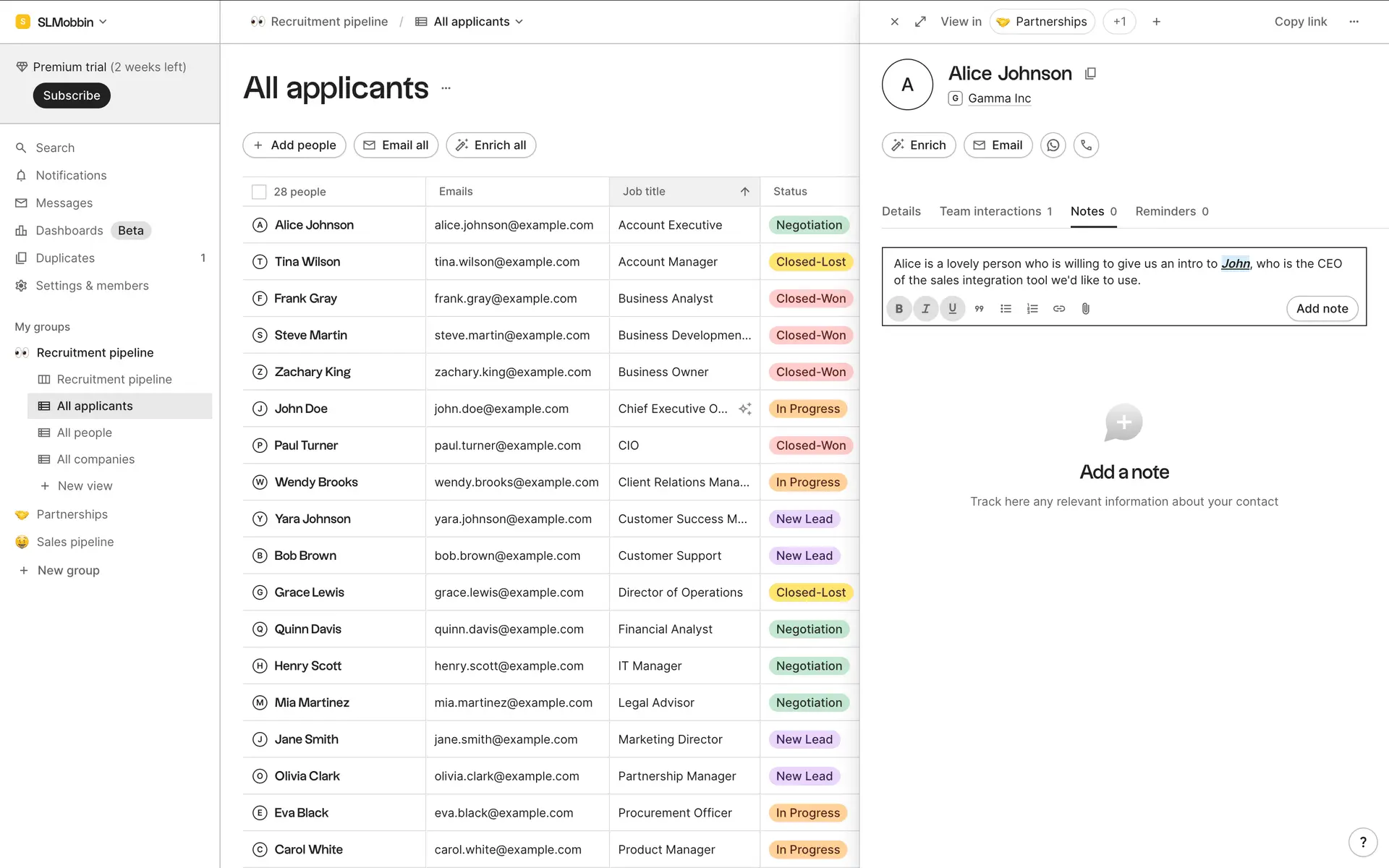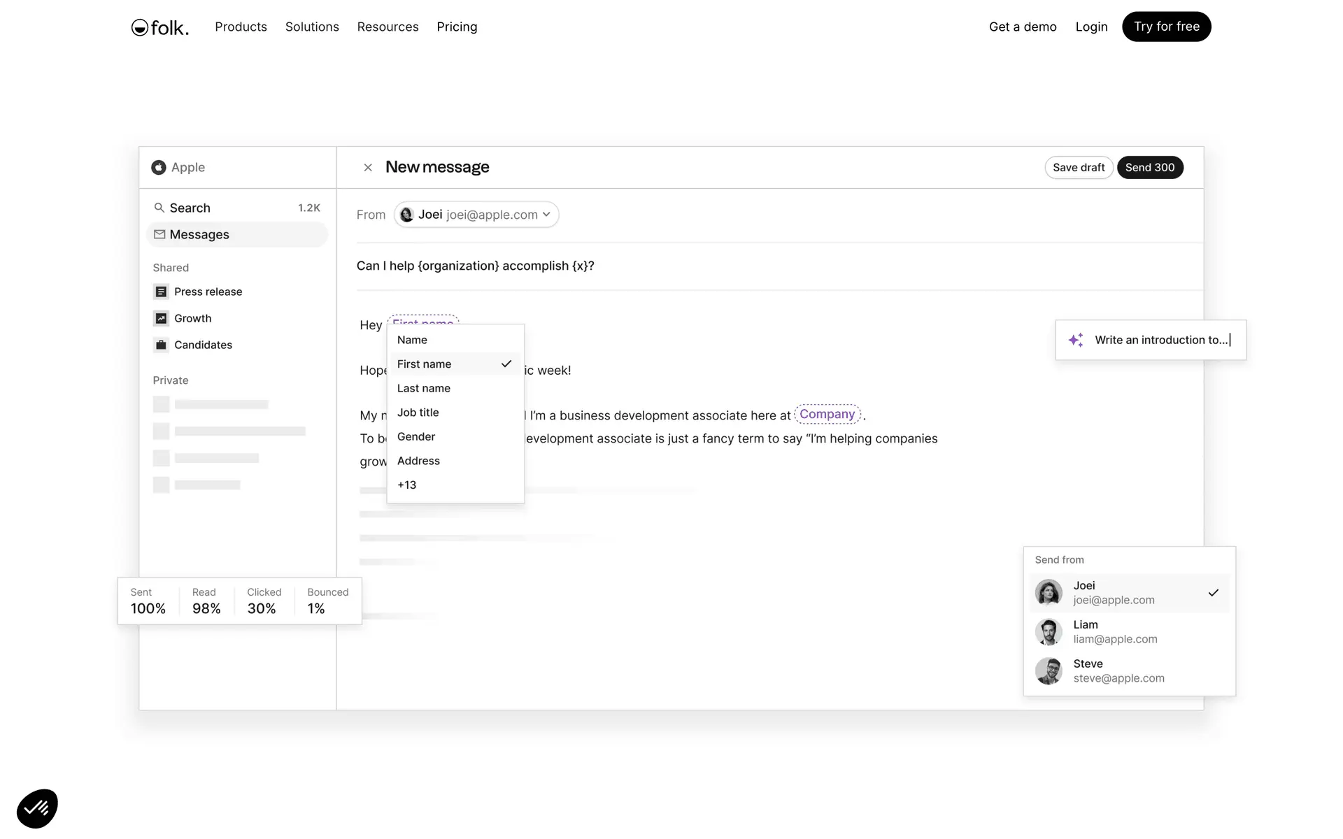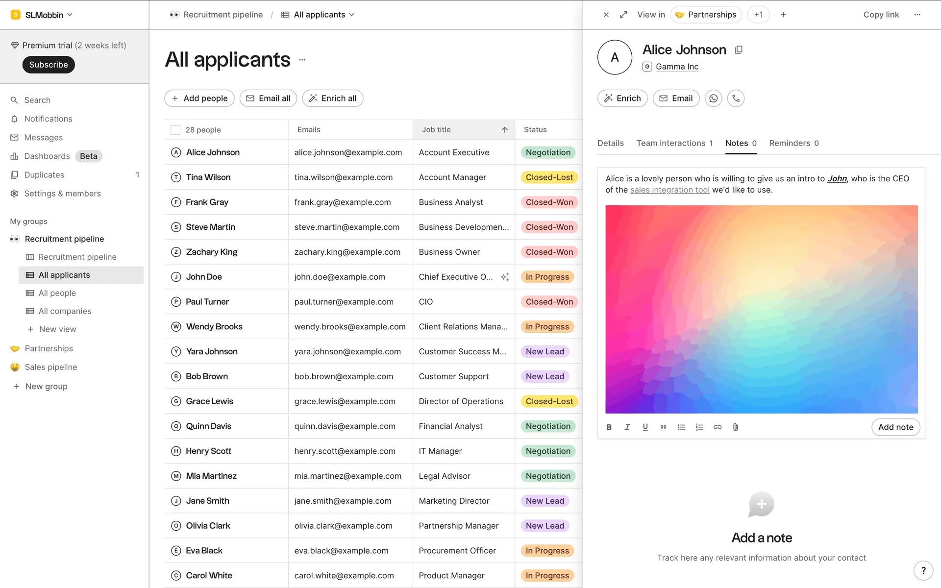 folk — современная CRM нового поколения, созданная для управления отношениями: продажами, партнёрствами, рекрутингом и нетворкингом. Сочетает простоту таблицы с мощью CRM.