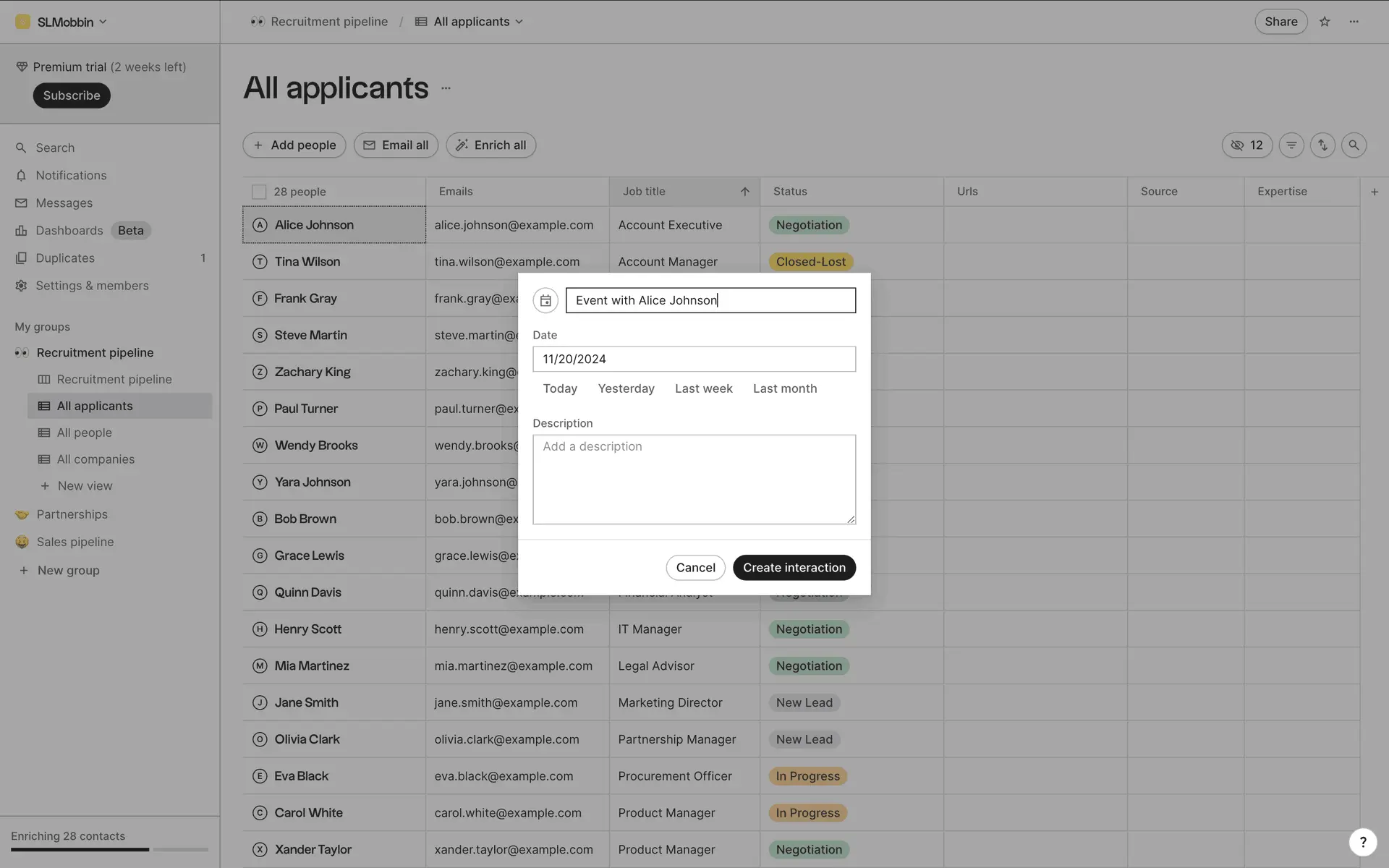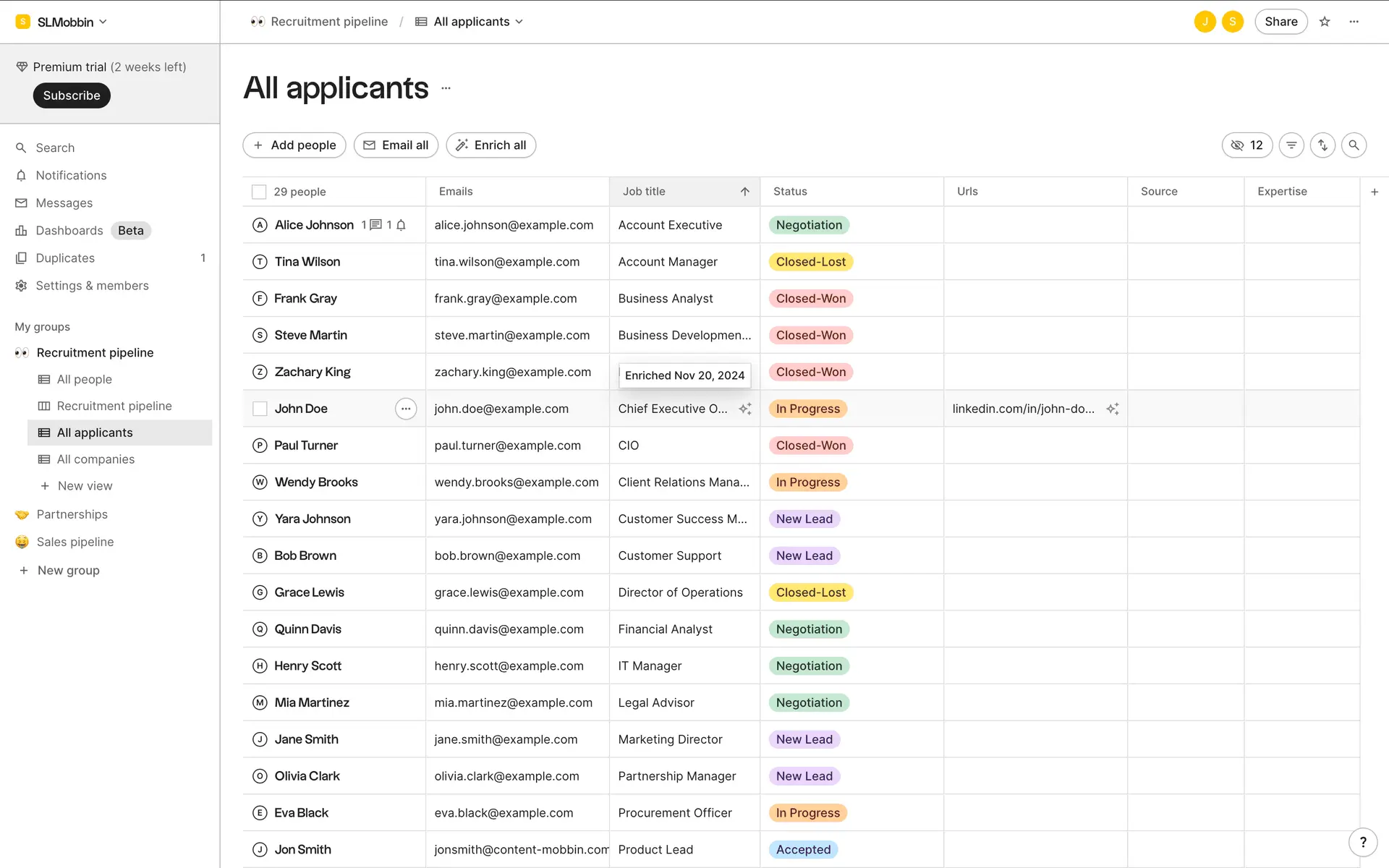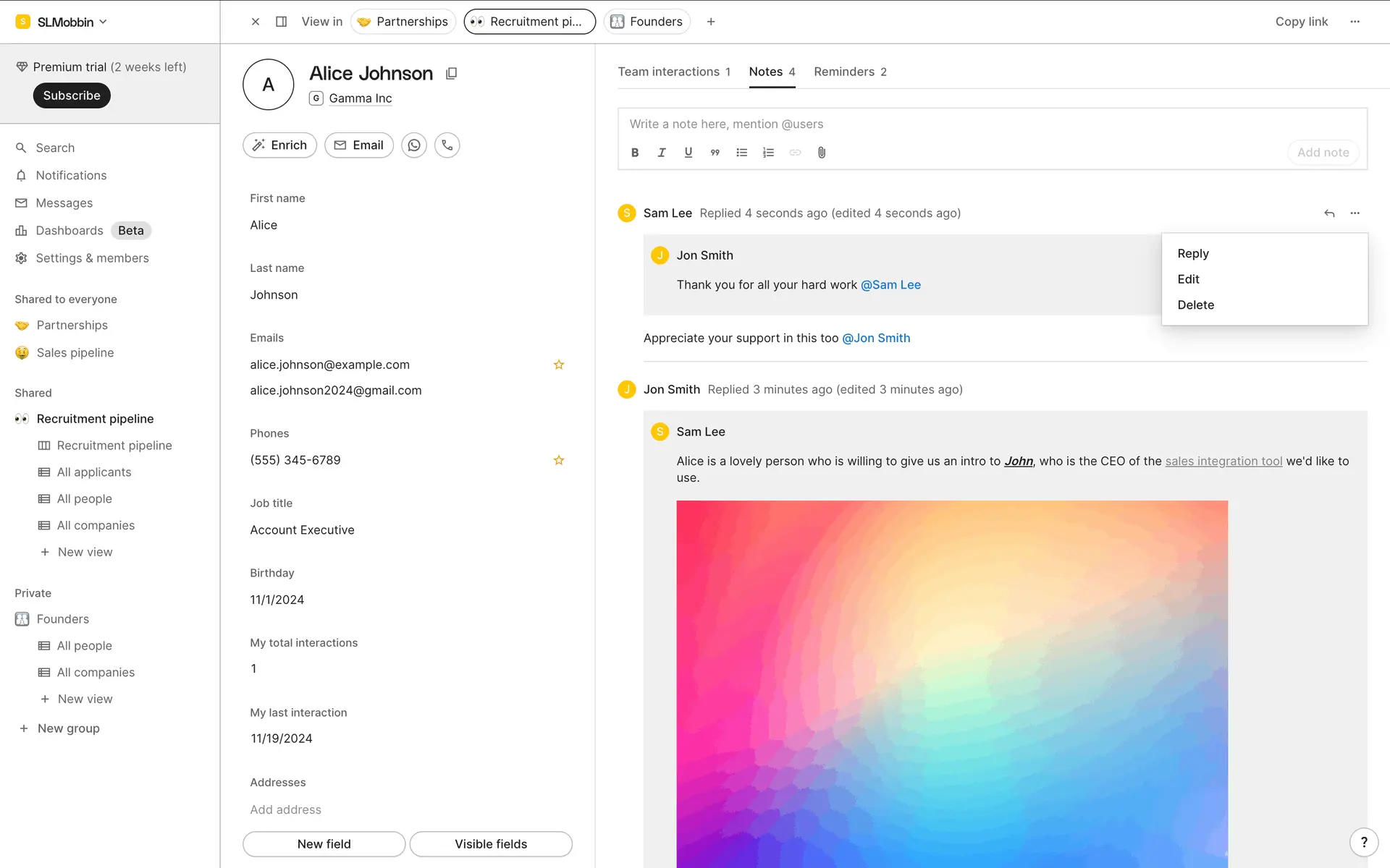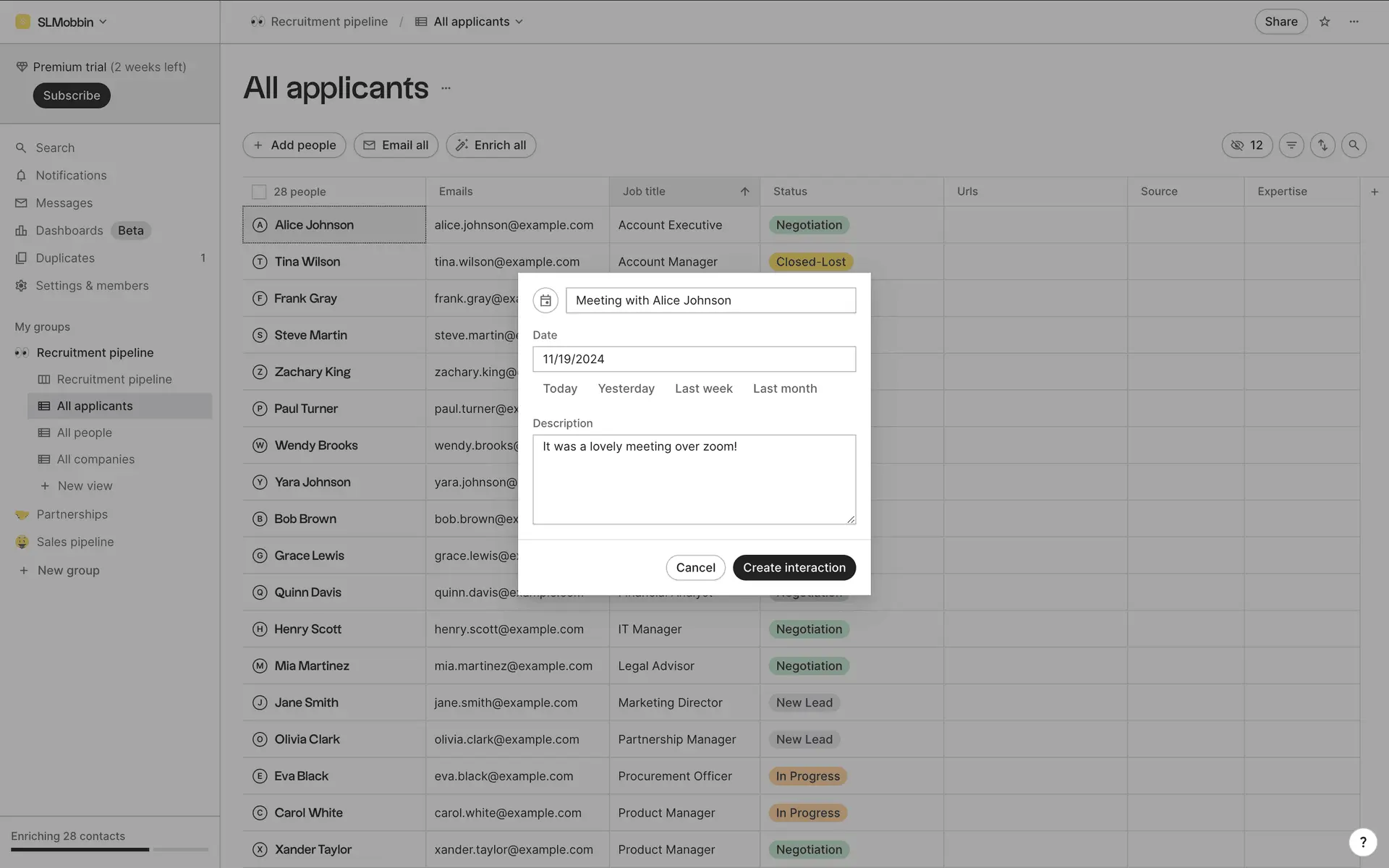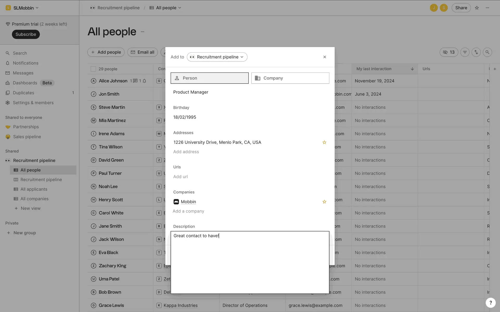 folk — современная CRM нового поколения, созданная для управления отношениями: продажами, партнёрствами, рекрутингом и нетворкингом. Сочетает простоту таблицы с мощью CRM.