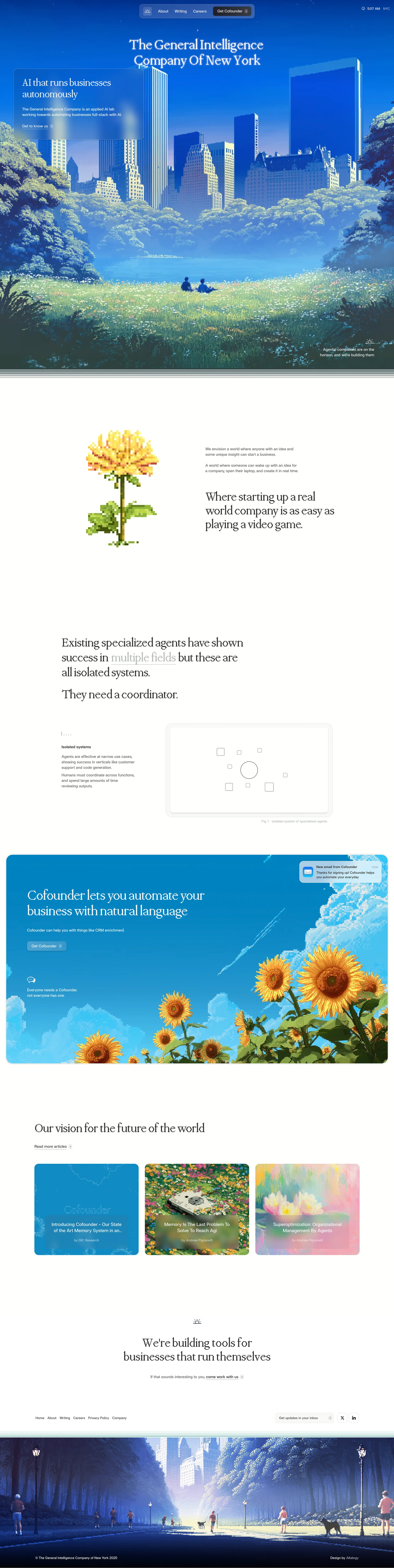 General Intelligence Company AI that runs businesses autonomously generalintelligence.com ↗ AI/ML Веб-сайт 3 скриншотов landingcard-gridnavbarsidebarmodalform 2A5256 CEDBB5 92BF76
