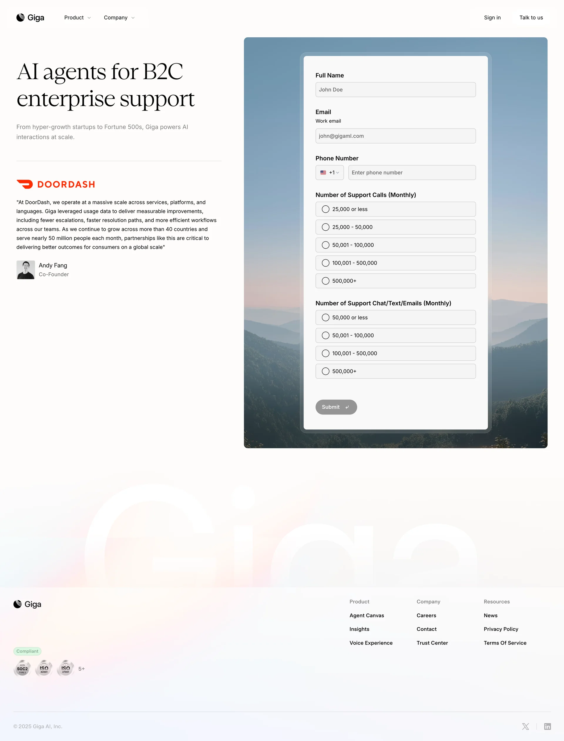 Giga AI agents for enterprise support giga.app ↗ AI/ML Веб-сайт 6 скриншотов landingdashboardformsettingsnavbarsidebar 211A17 B8917B 8A8C88