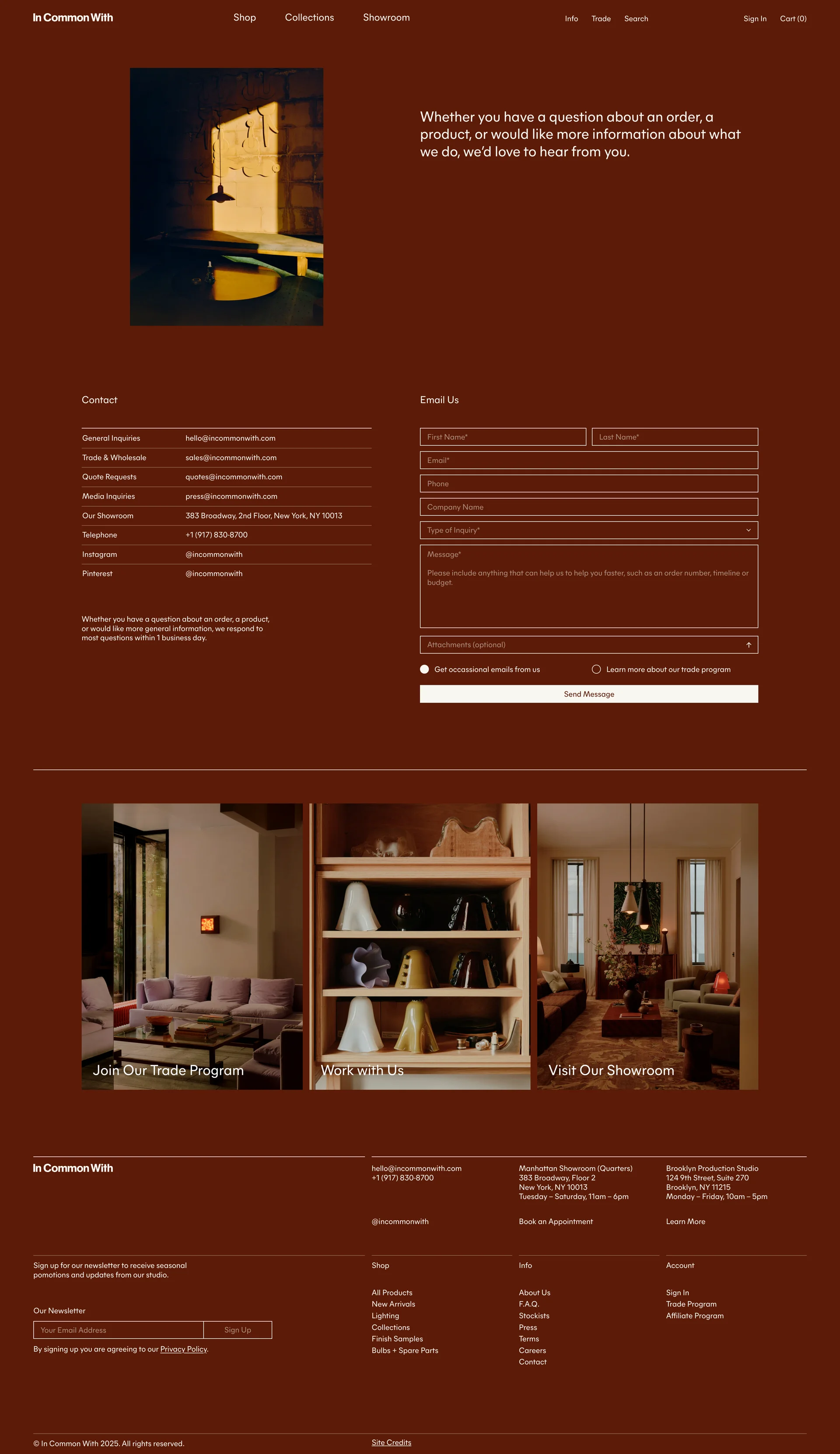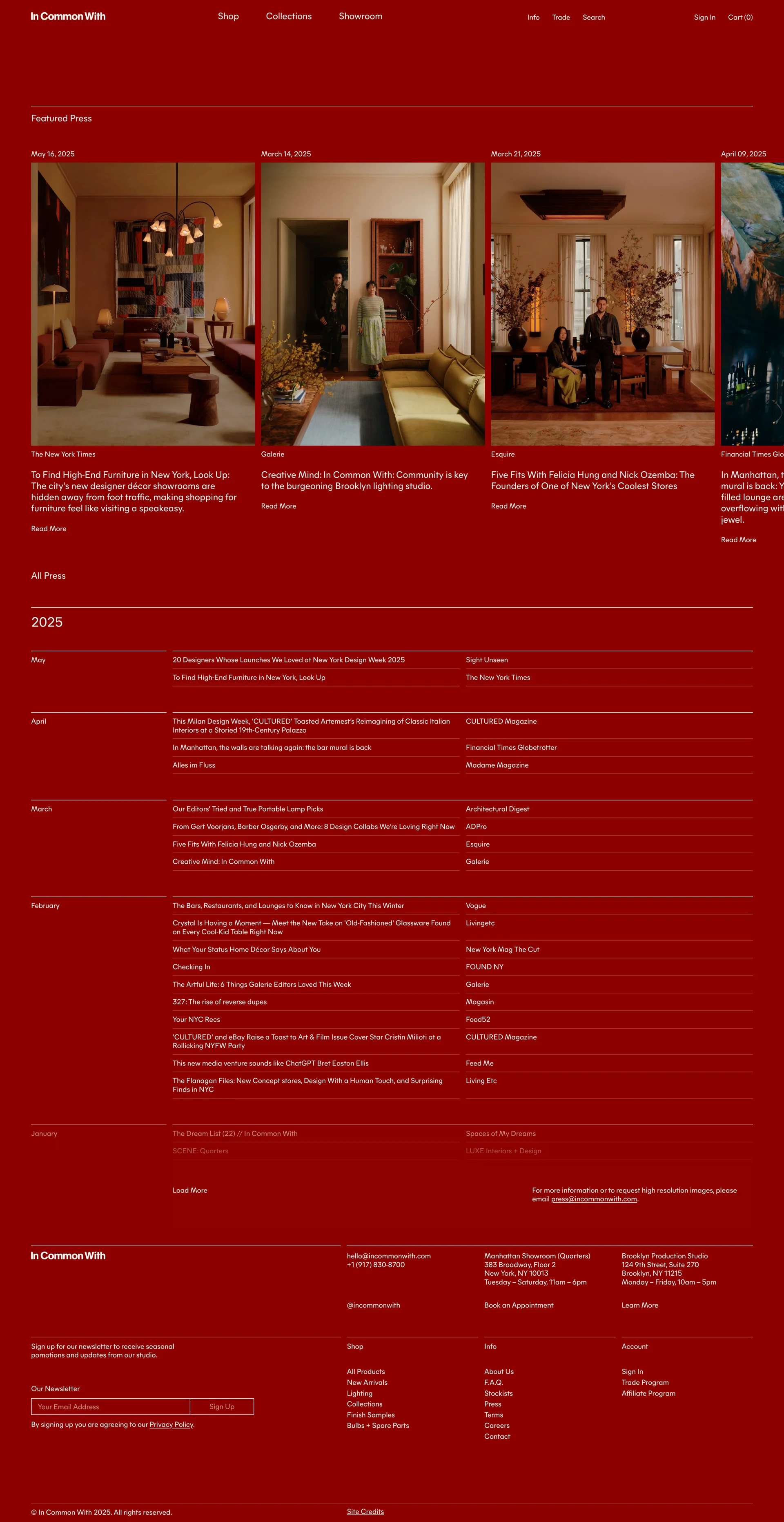 In Common With A Brooklyn-based lighting design studio incommonwith.com ↗ Design Веб-сайт 8 скриншотов portfoliolandingcard-gridsidebar EEECEA 351B0F 855430