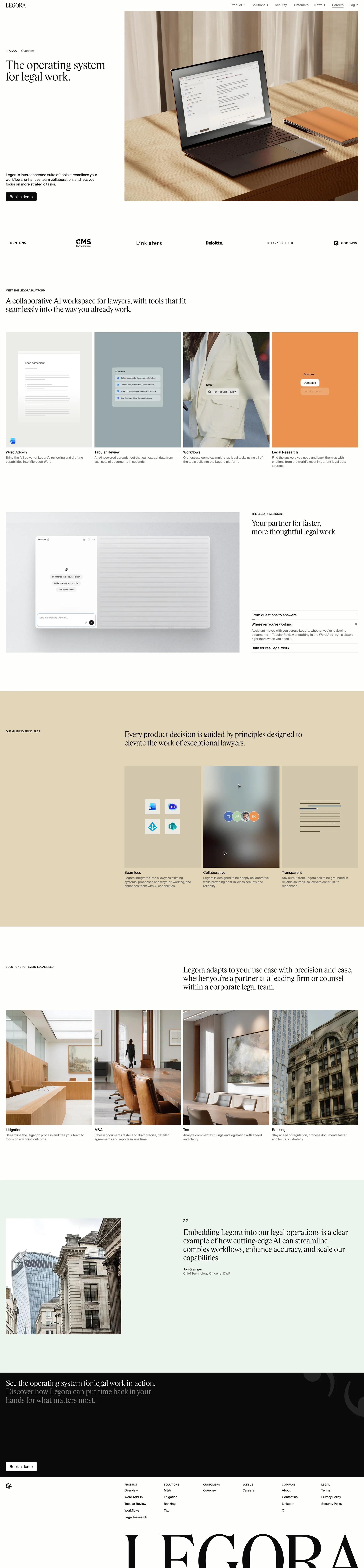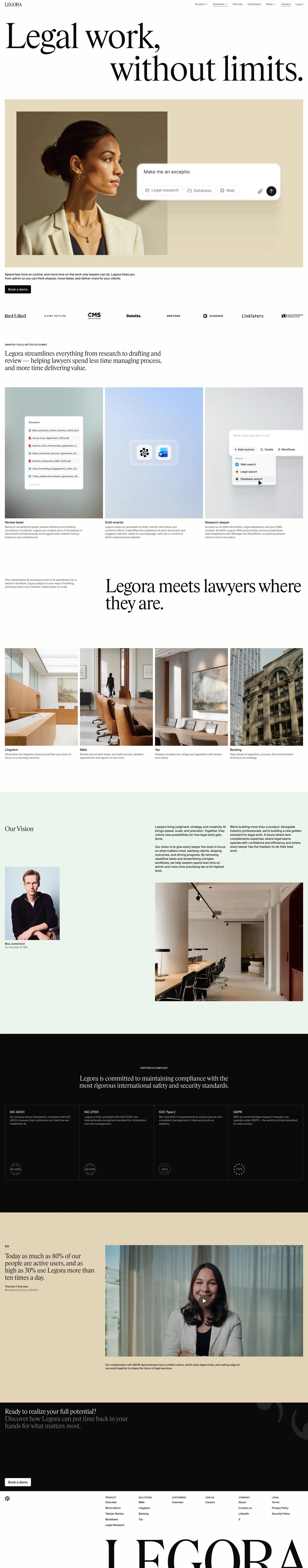 Legora Collaborative AI for lawyers legora.ai ↗ AI/ML Веб-сайт 6 скриншотов dashboardeditorsidebarformsettings 252A27 E1E0D8 DD8347
