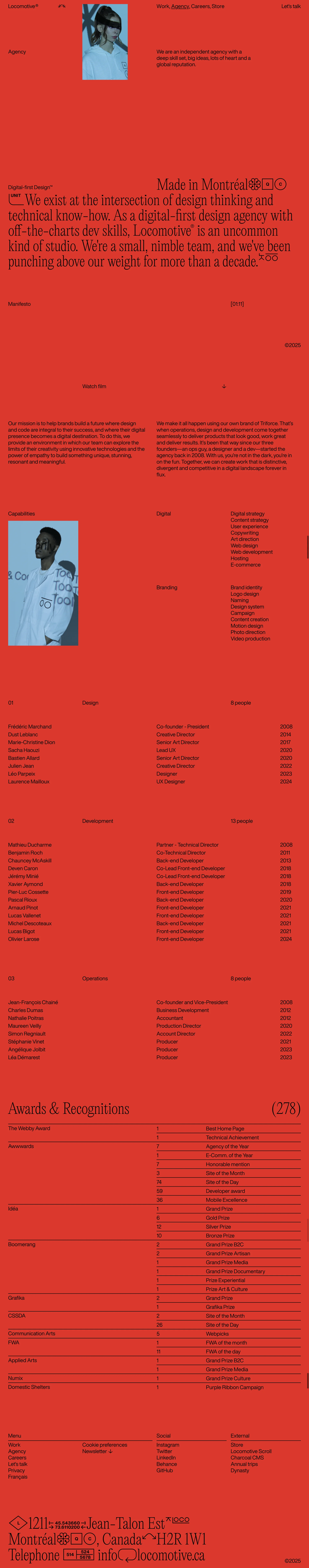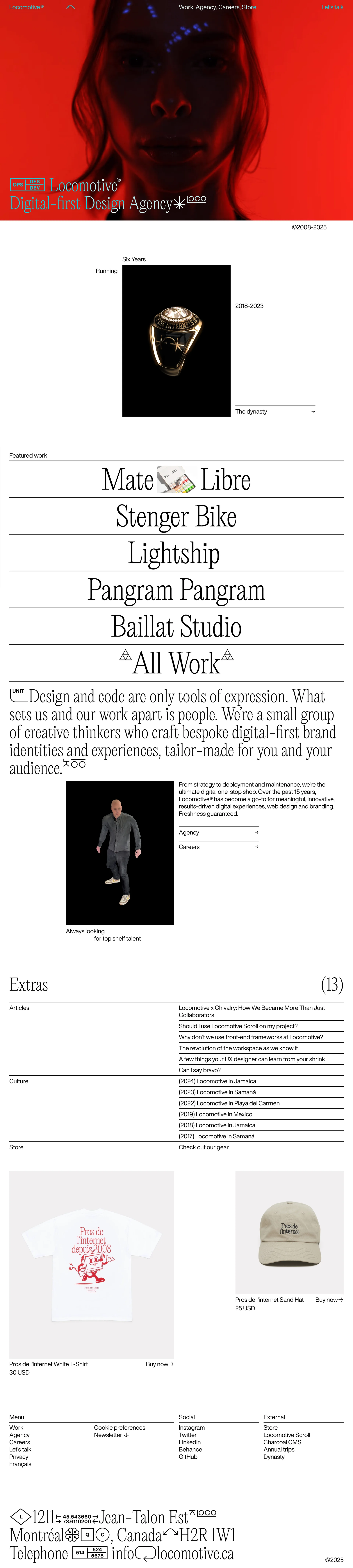 Locomotive Montreal web agency locomotive.ca ↗ Design Веб-сайт 6 скриншотов portfoliolandingnavbarcard-grid E9E8E7 2C2D31 876155