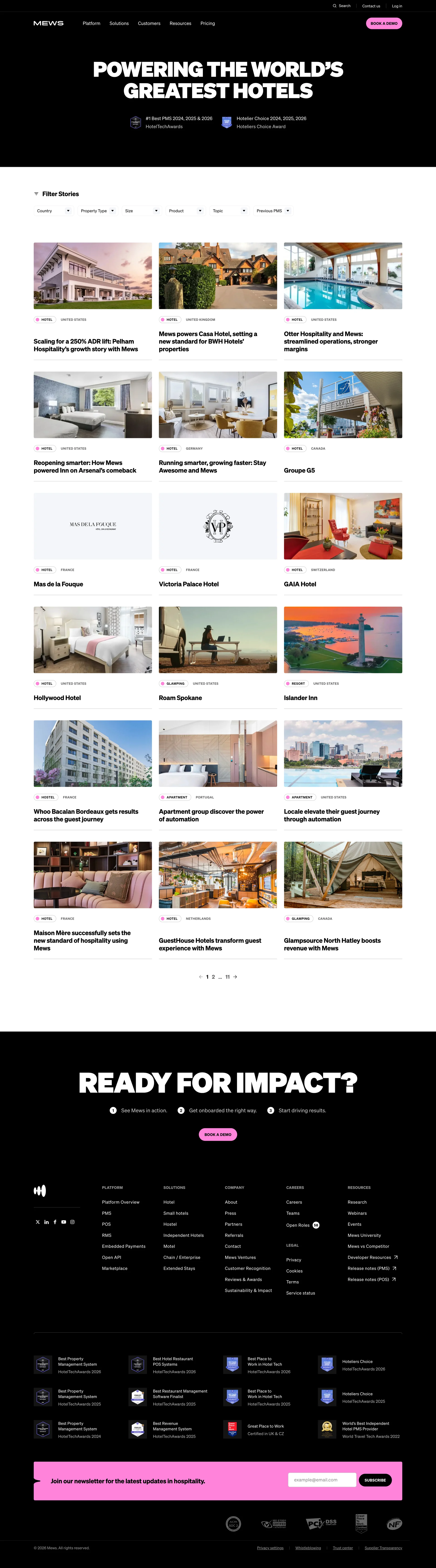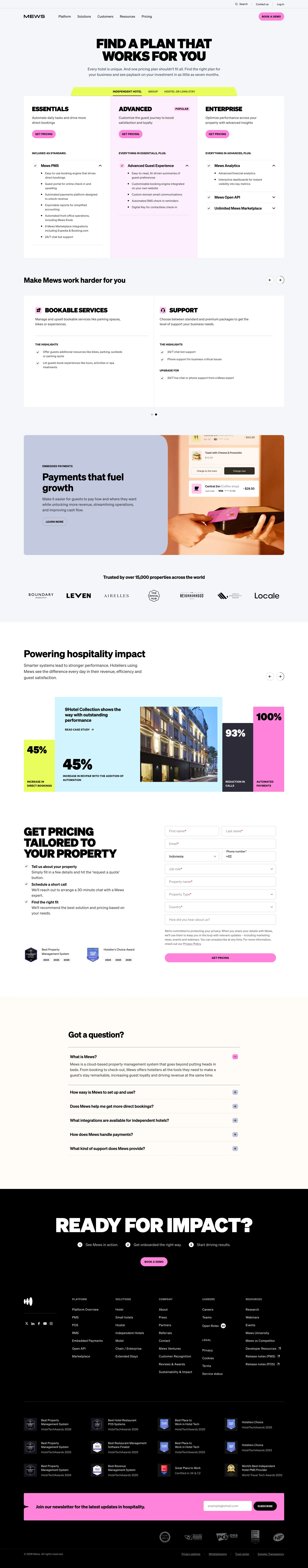Mews The hospitality management software of the future mews.com ↗ SaaS Веб-сайт 13 скриншотов dashboardsidebarformtablesettings 070707 F0EBEF 7B655D