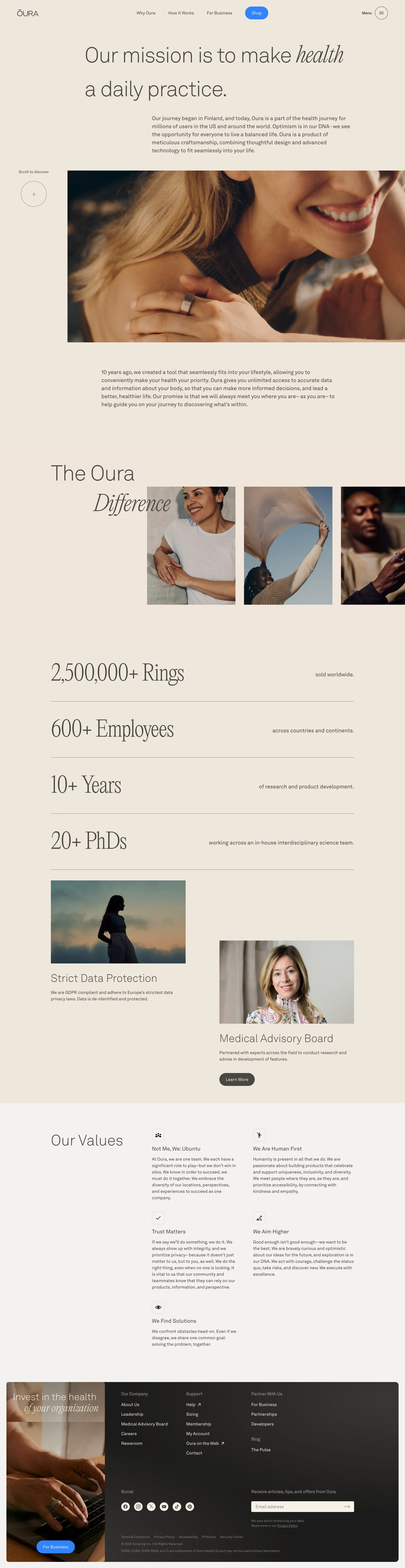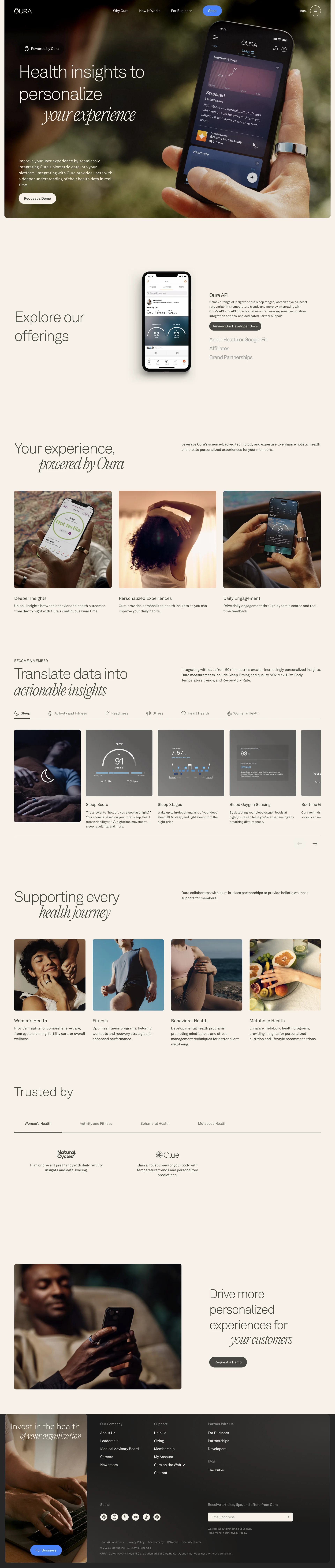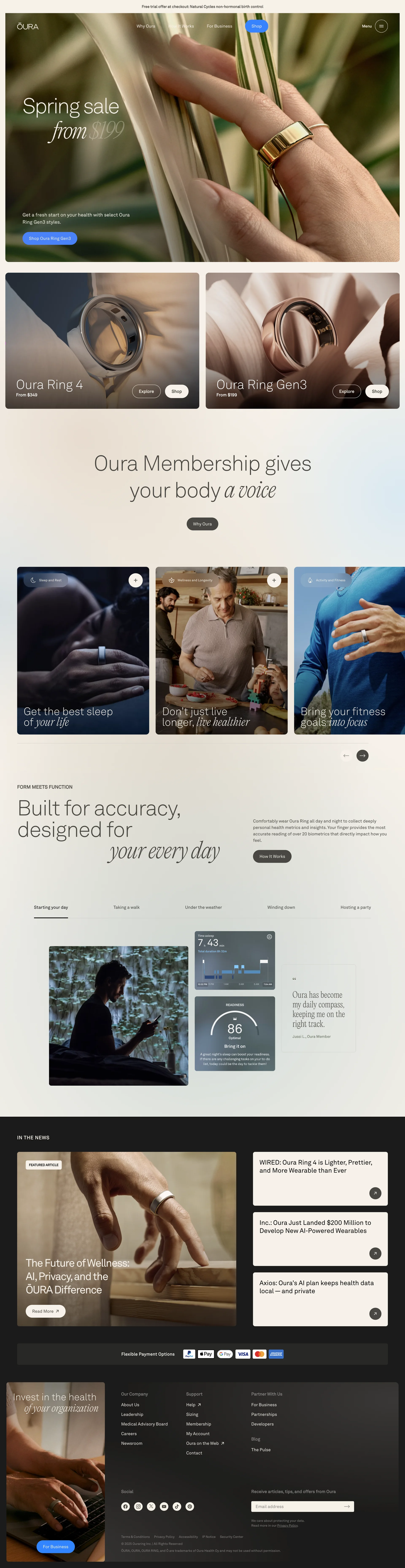Oura Ring Smart ring for fitness, stress, sleep & health ouraring.com ↗ Health Веб-сайт 11 скриншотов dashboardanalyticssettingscard-grid 9C7D61 F3F2E6 332428