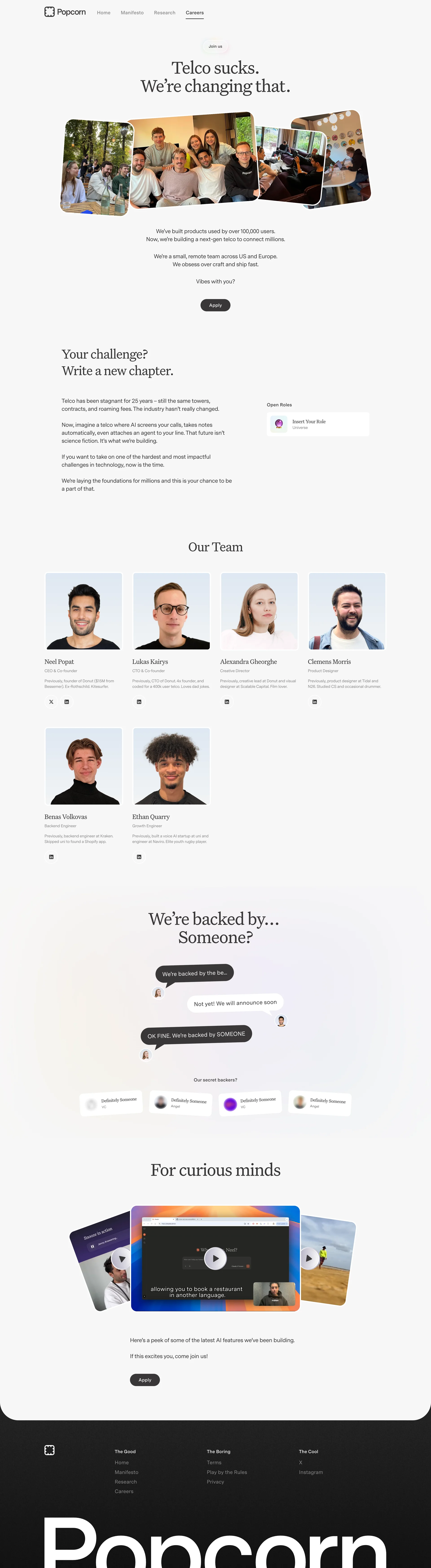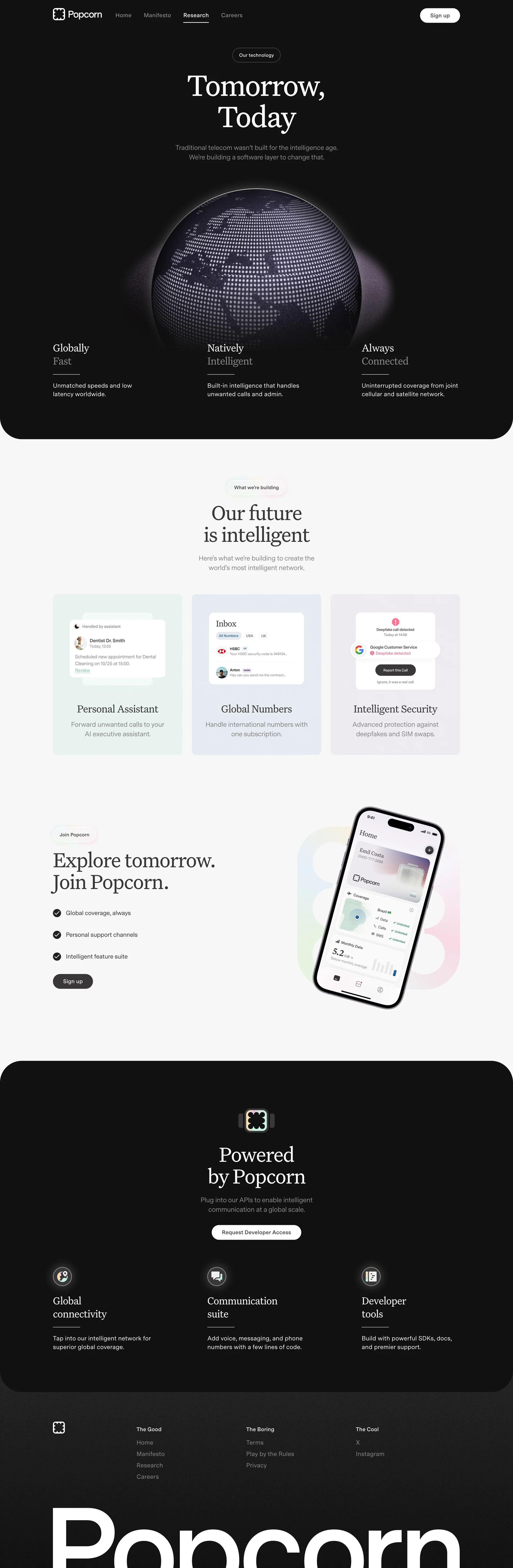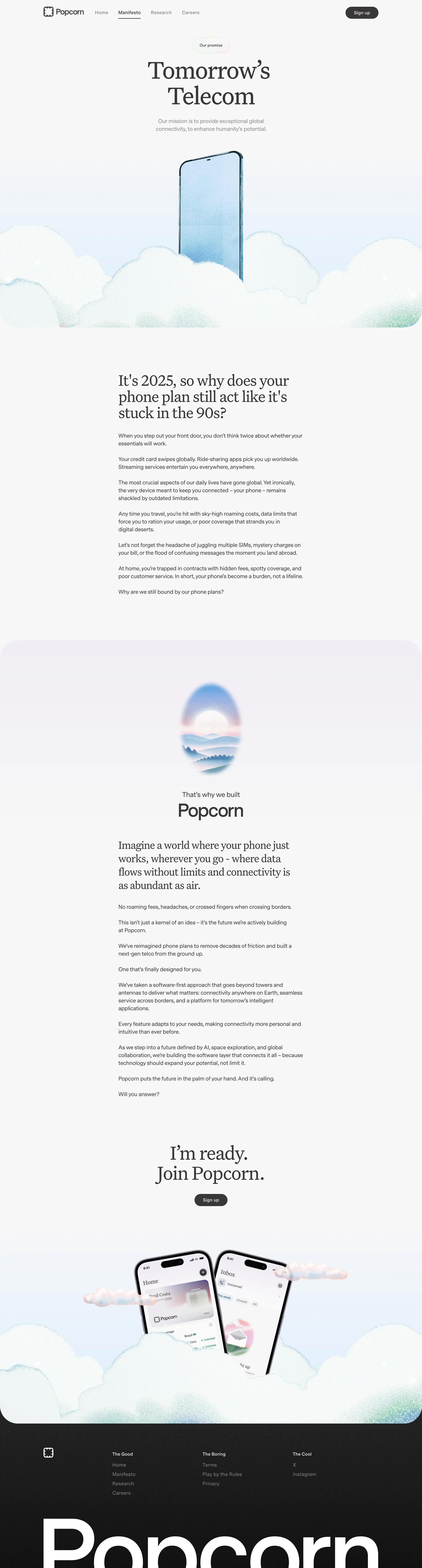 Popcorn The next-gen telecommunications popcorn.com ↗ Communication Веб-сайт 4 скриншотов landingsignupformnavbar F1F1F2 202020 A2435C