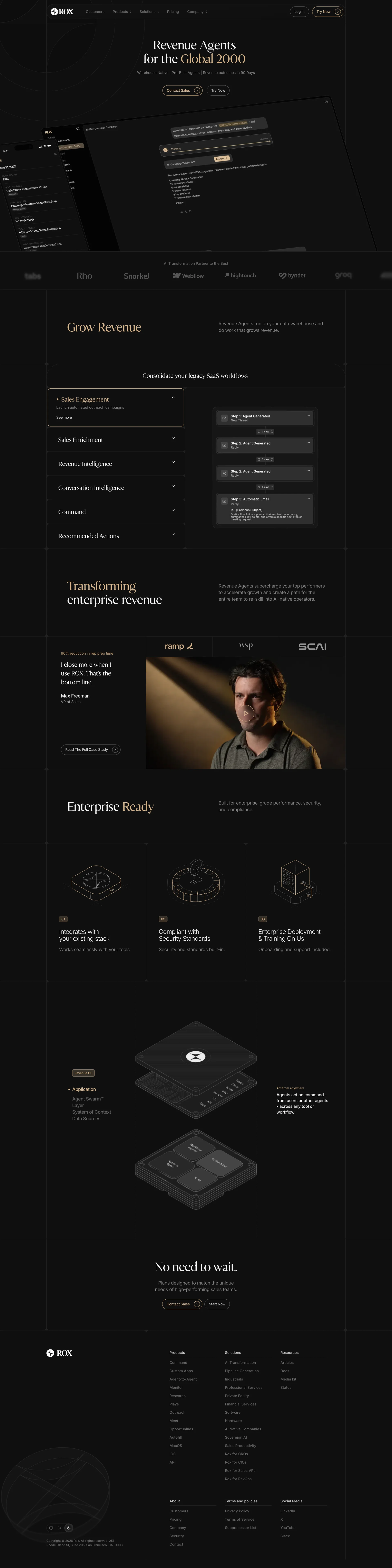 Rox Revenue agents for the global 2000 rox.ai ↗ SaaS Веб-сайт 8 скриншотов dashboardsidebaranalyticsformsettings 151413 D9D6D5 53AAB1
