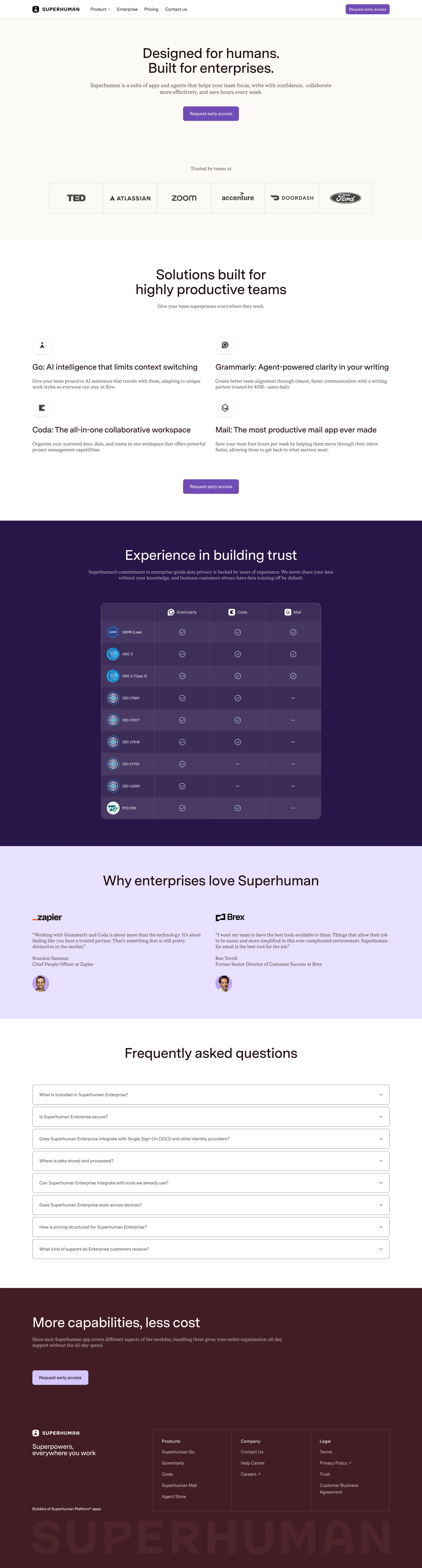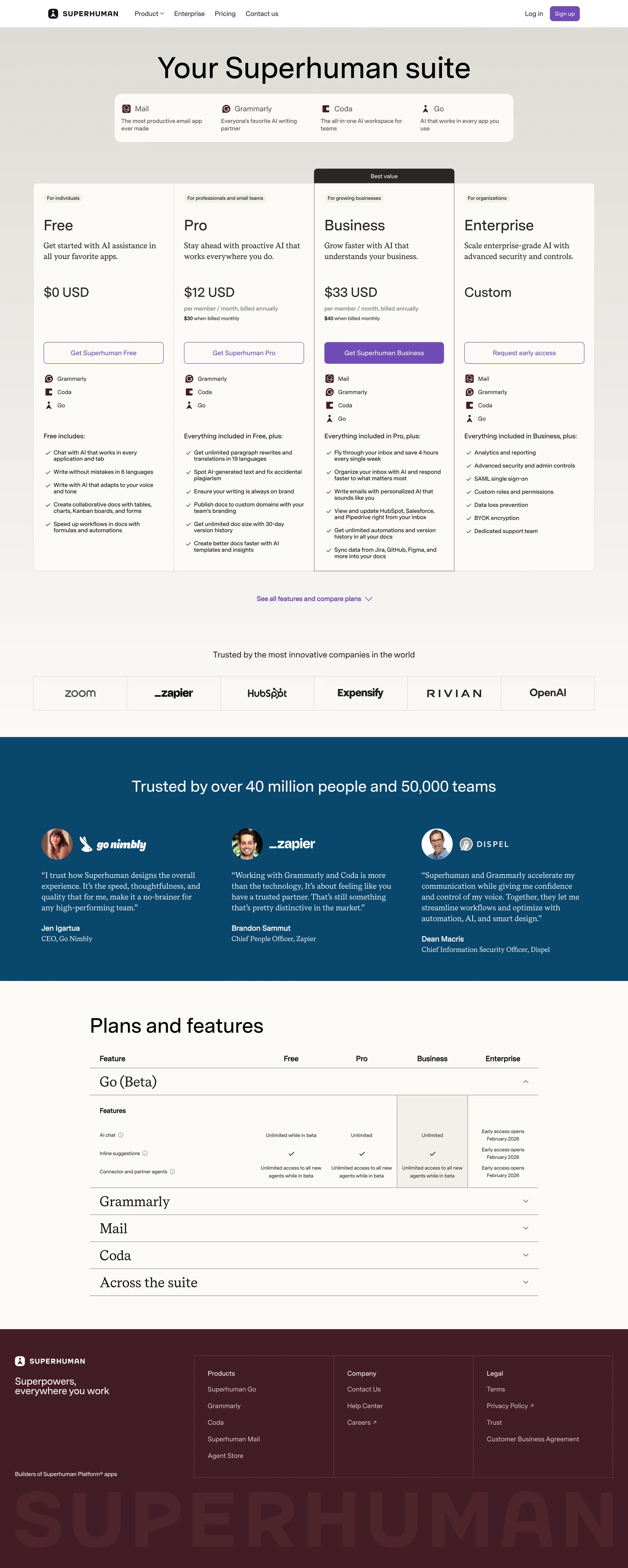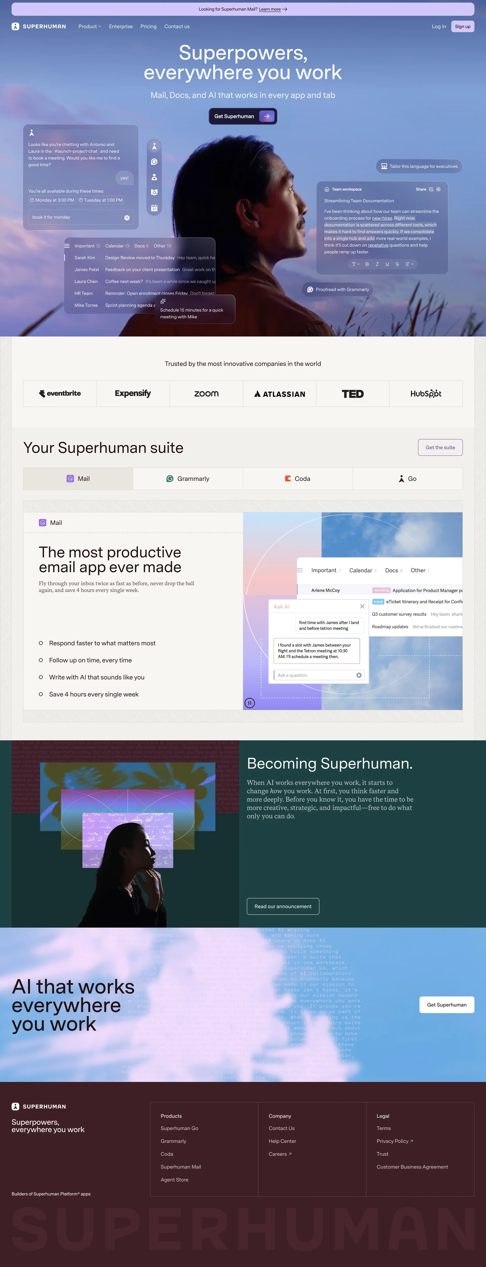 Superhuman Mail, docs, and AI that work everywhere www.superhuman.com ↗ Productivity Веб-сайт 5 скриншотов inboxsidebarsearchsettingsonboardingform 441D25 EBE4F7 765B90
