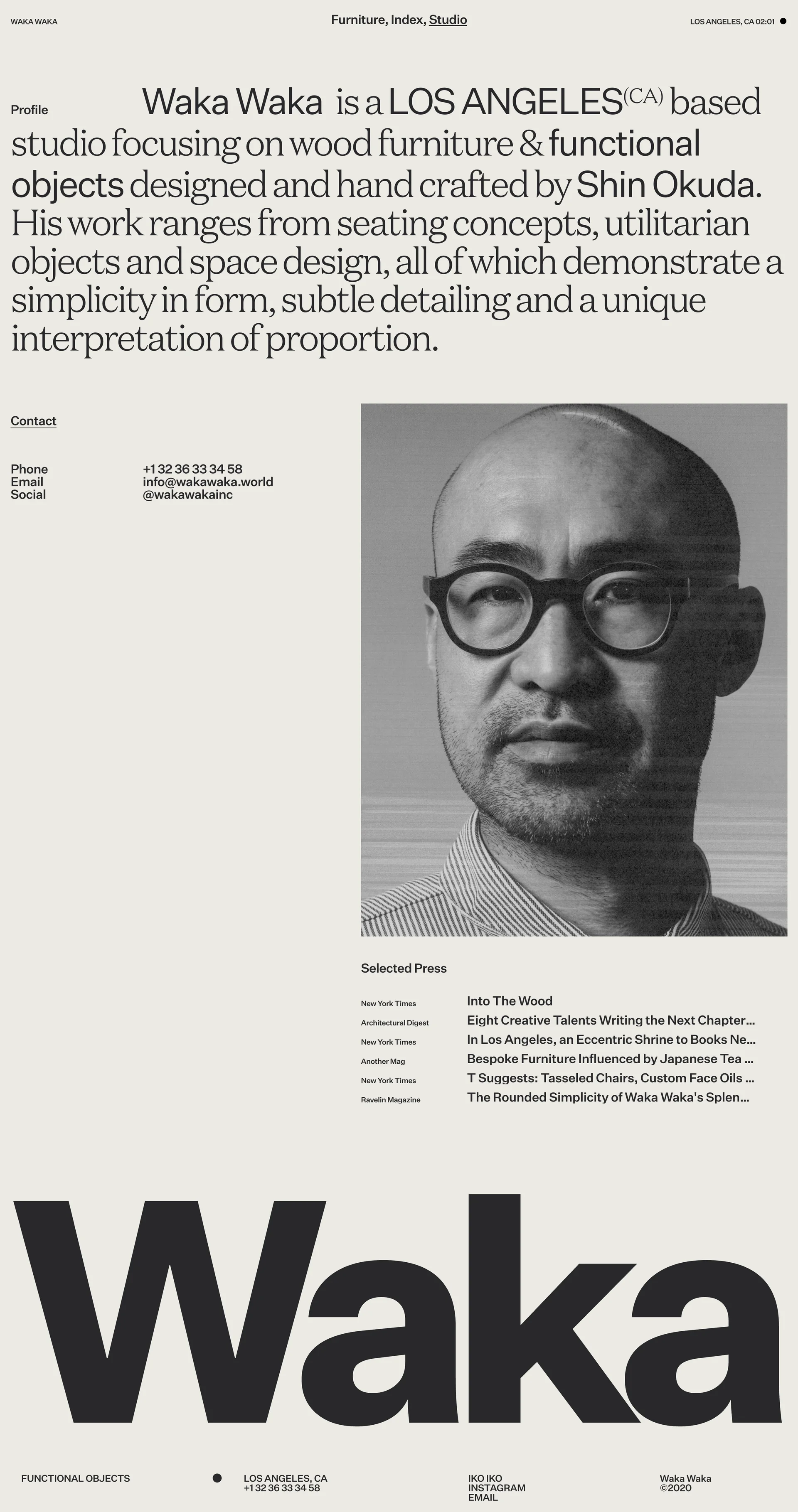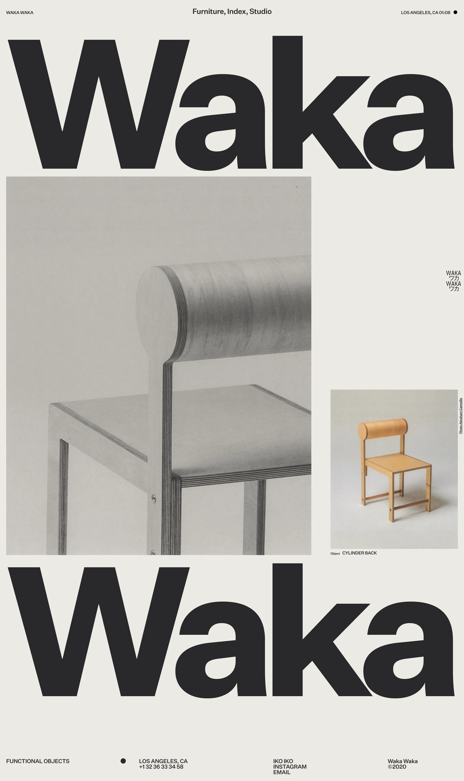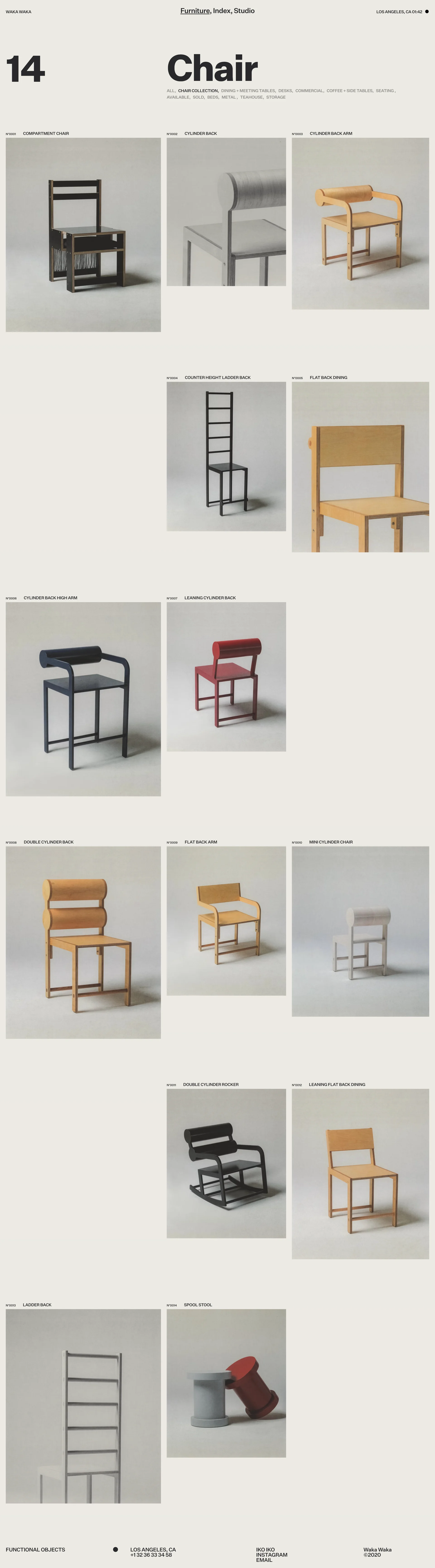 Waka Waka Wood furniture & functional objects www.wakawaka.design ↗ E-commerce Веб-сайт 5 скриншотов landingcard-gridcheckoutformnavbarsidebar EBEBE3 31312F 74746C